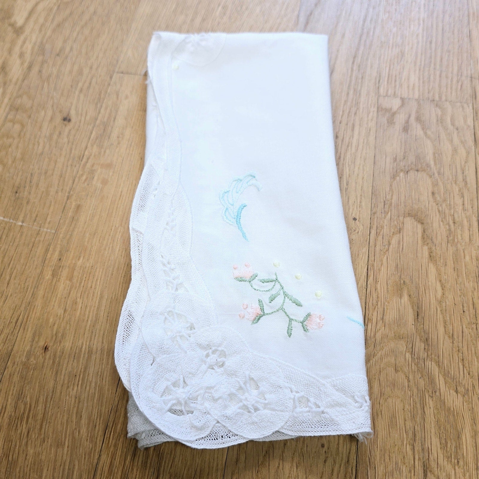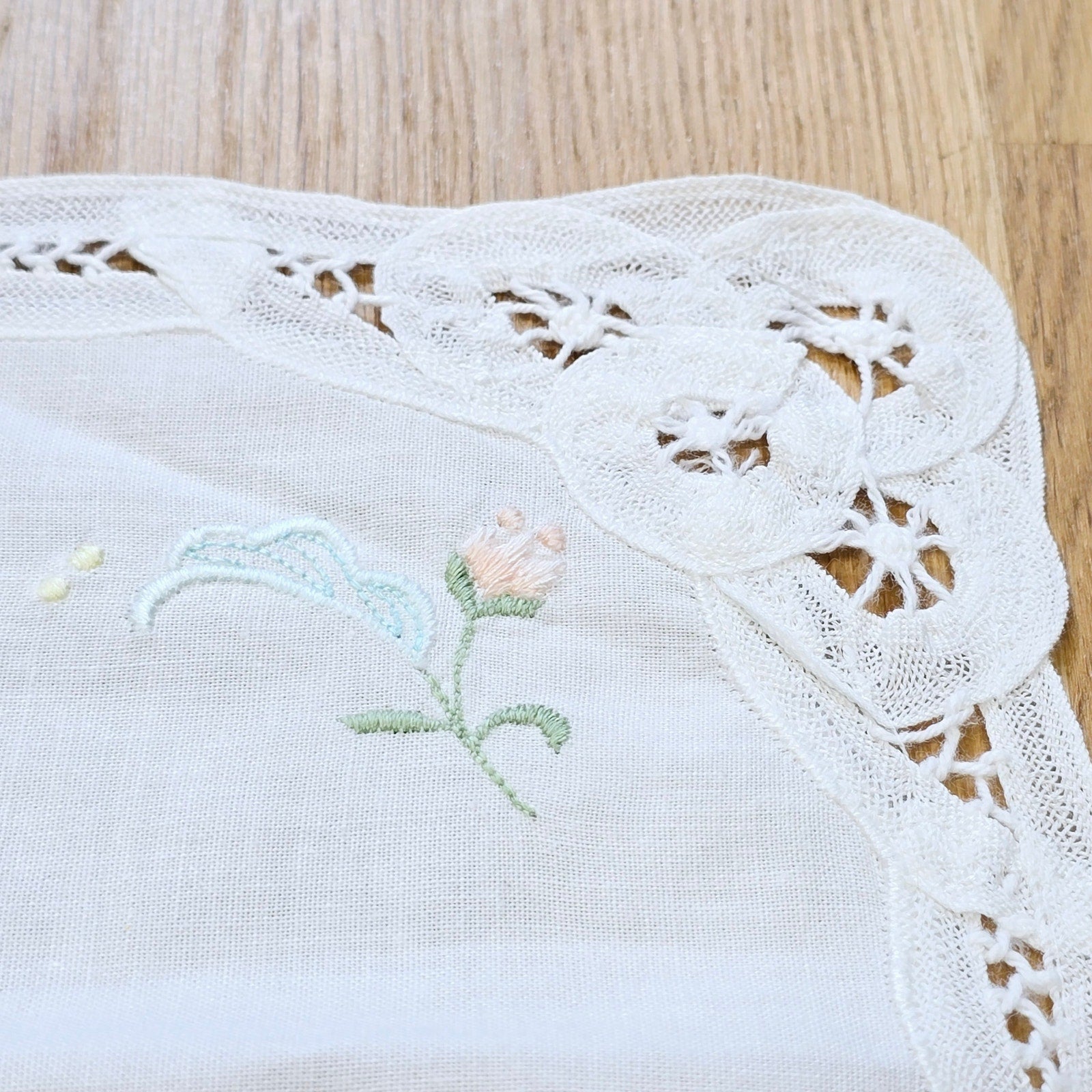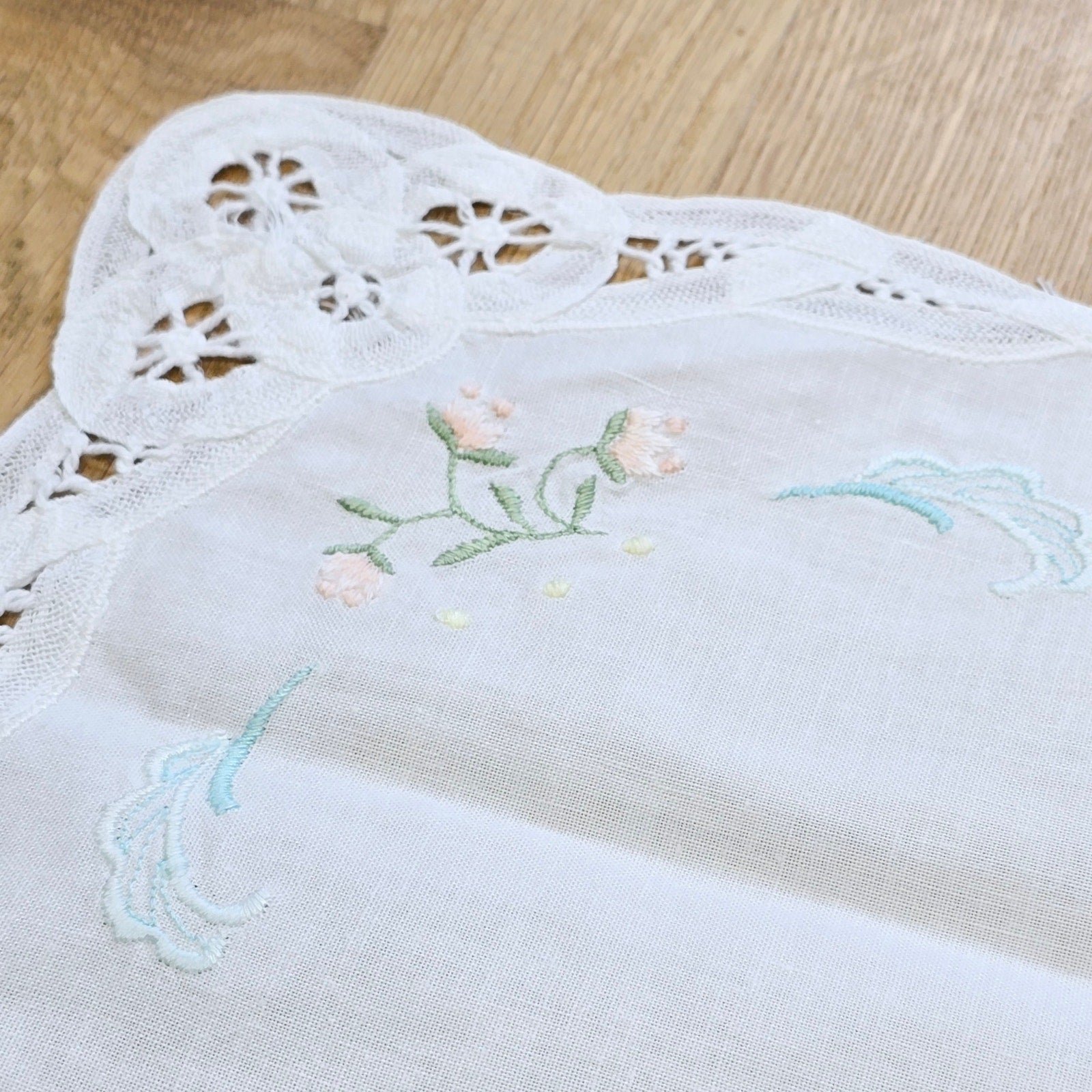 12 x 18" Lace Trim Floral Embroidered Table Mat, Hankerchief