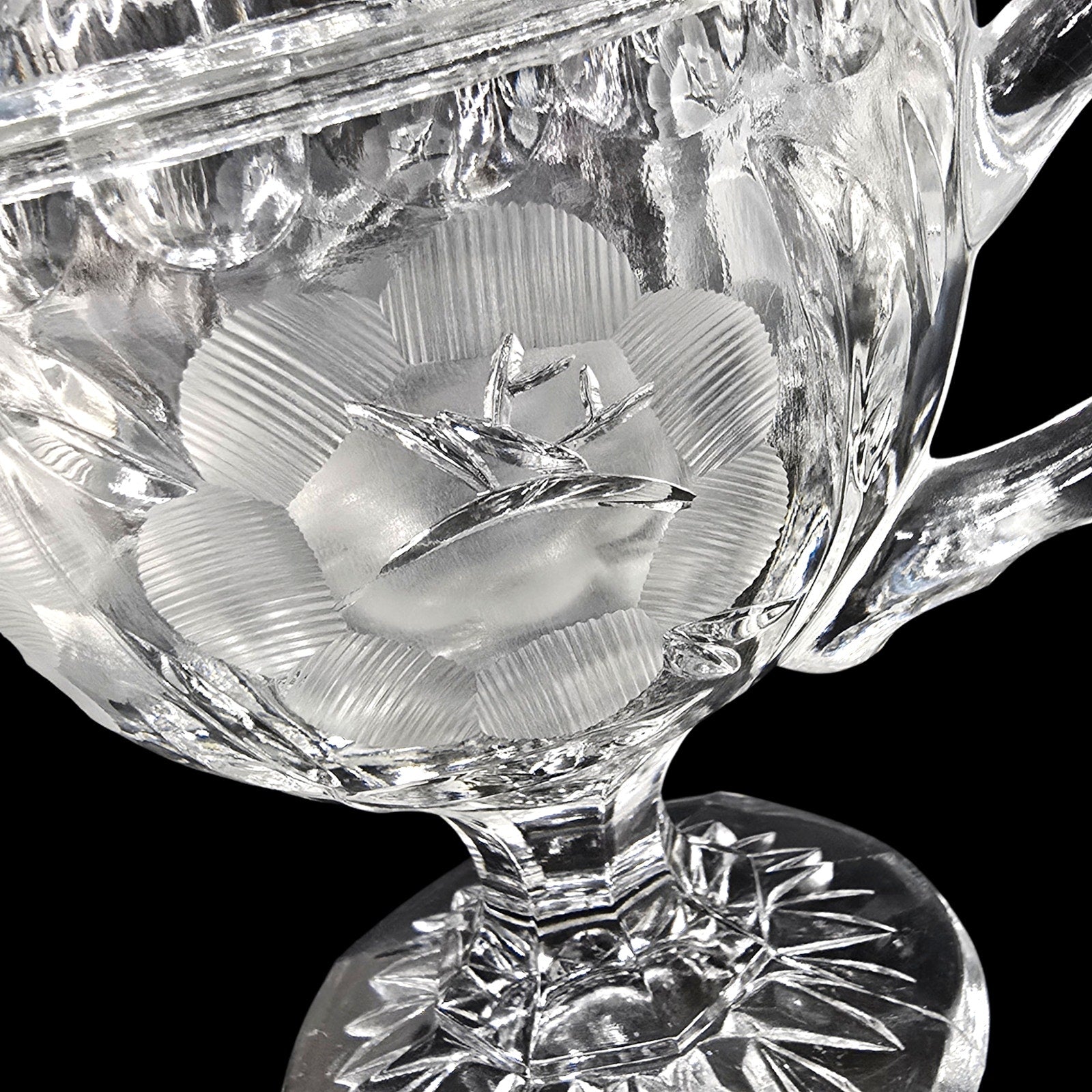 Pattern: Intaglio-style frosted rose motif.