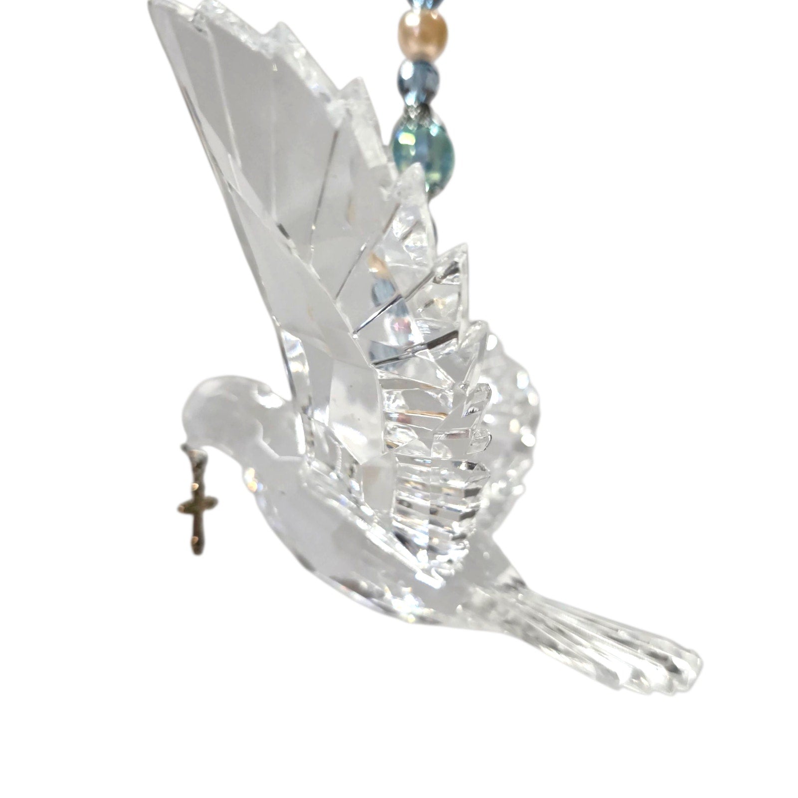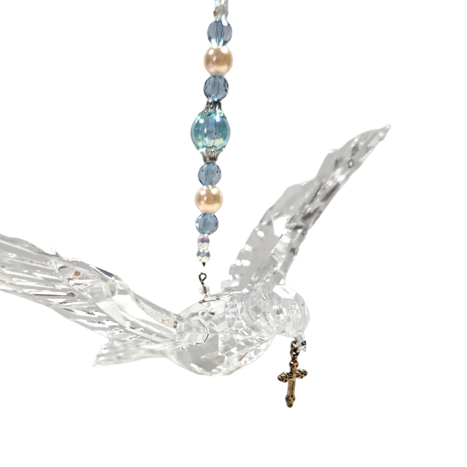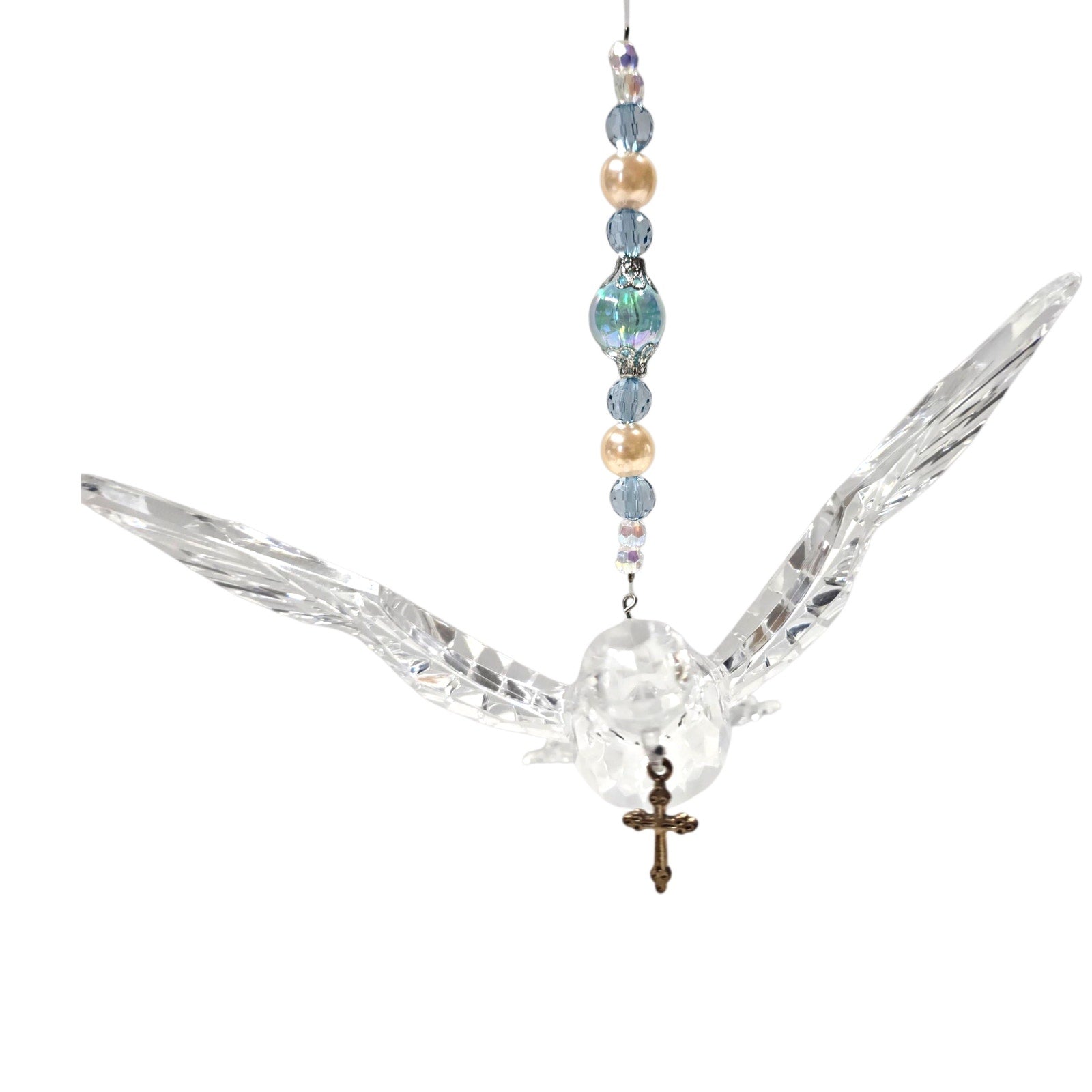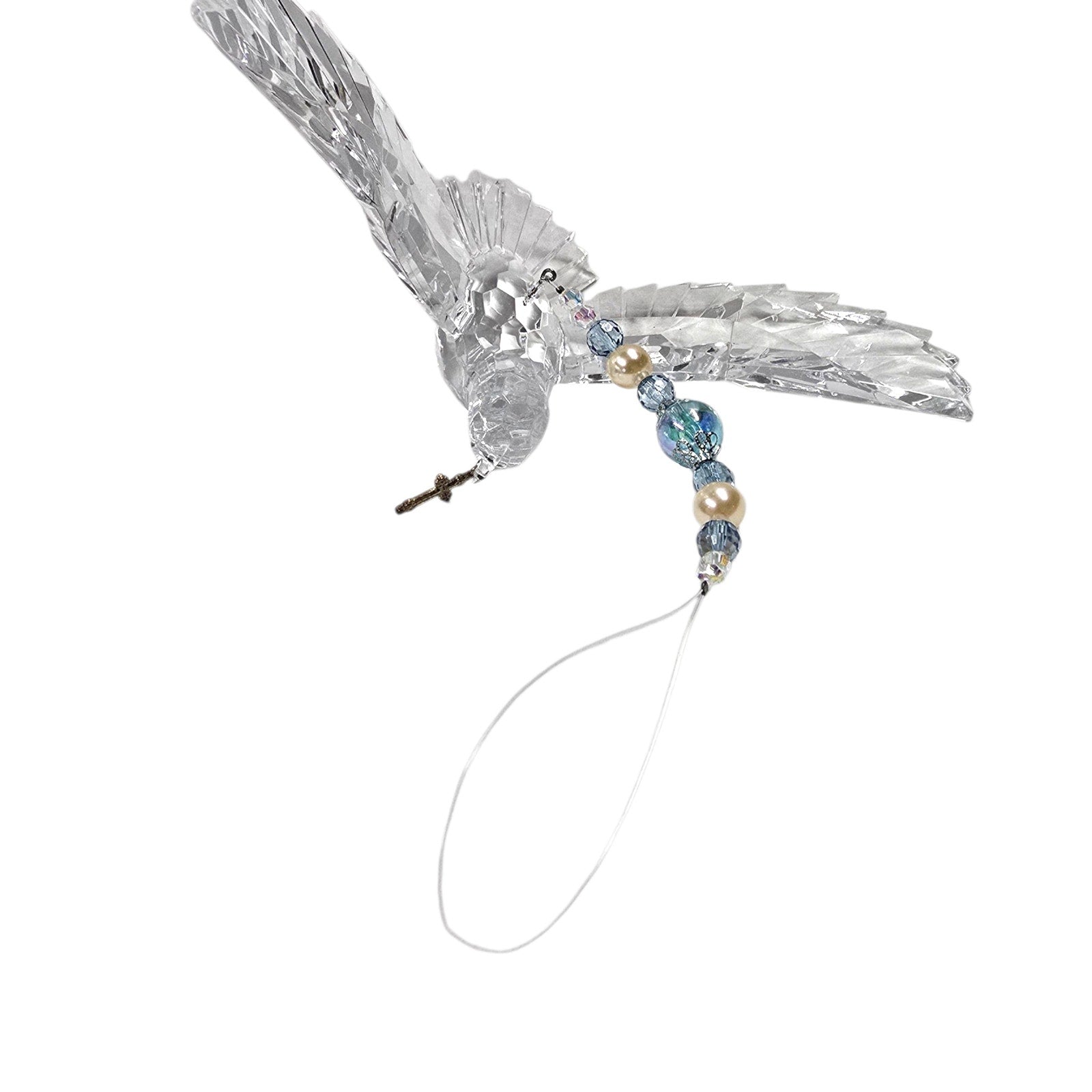Acrylic Hanging Dove Carrying a Cross with Sparkly Beads, Christian Gift Hanging