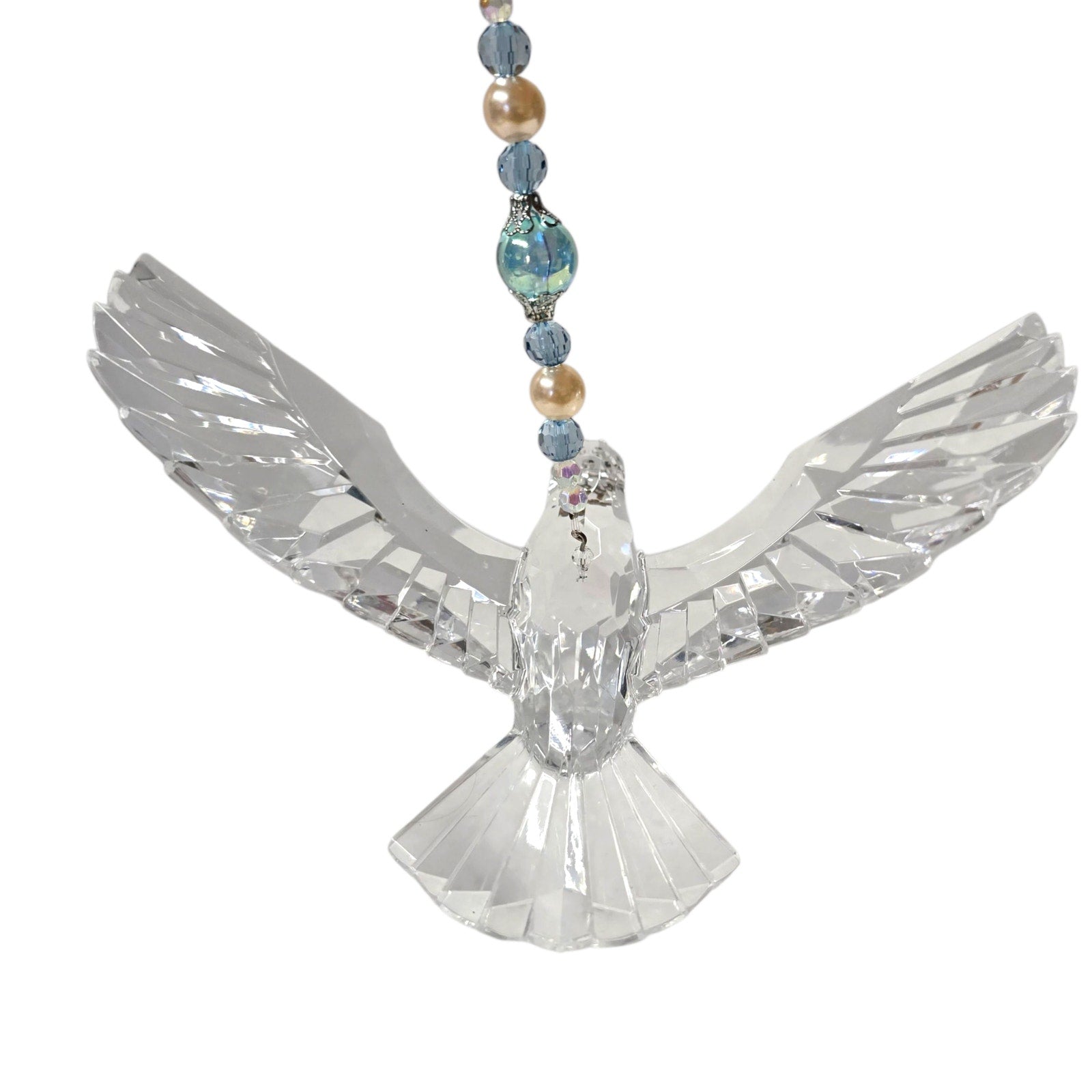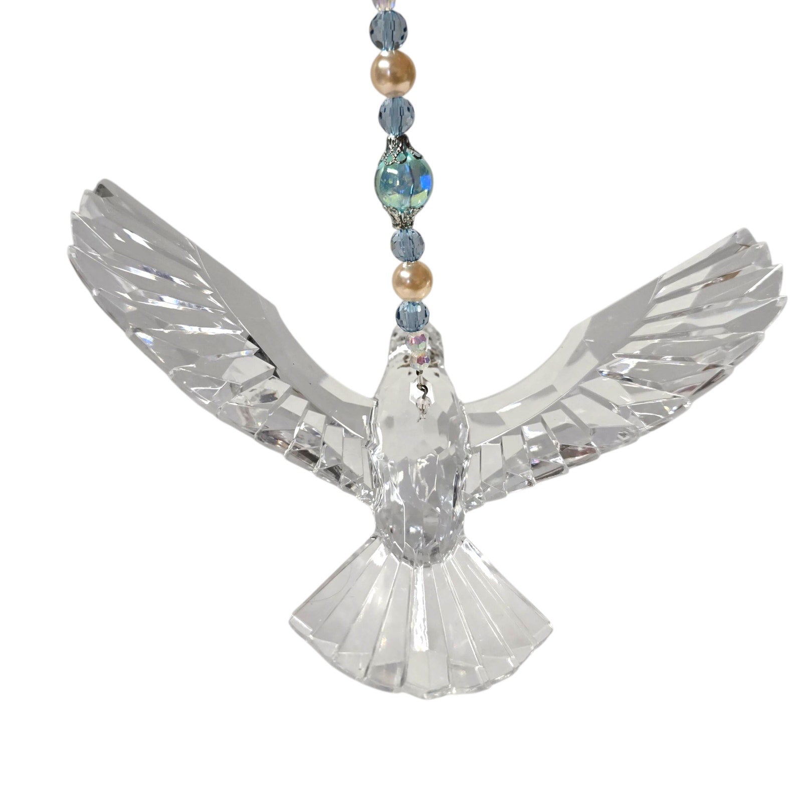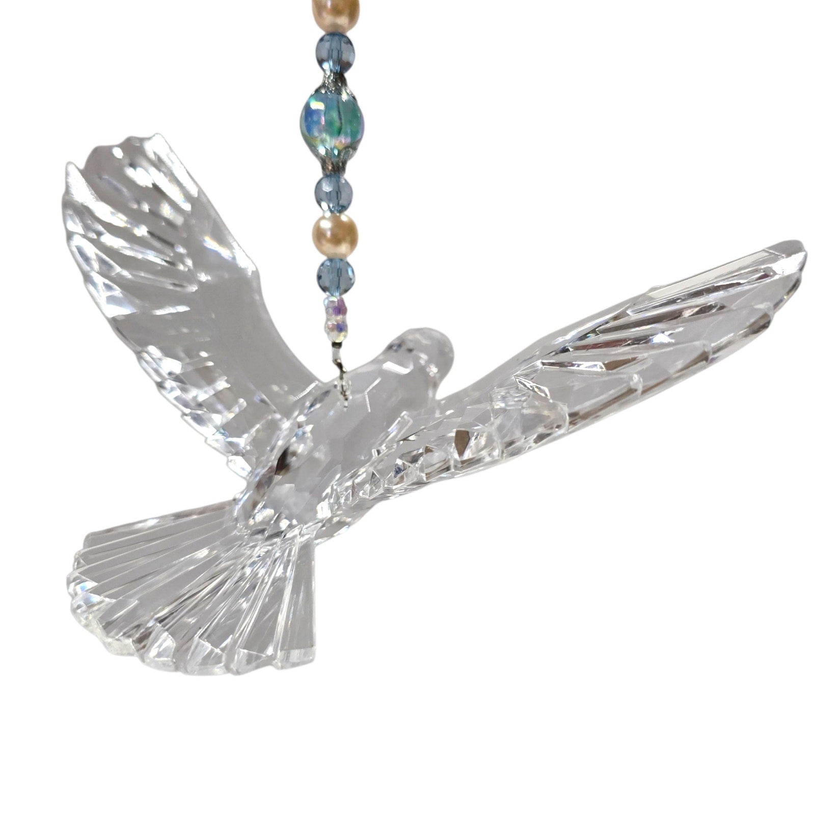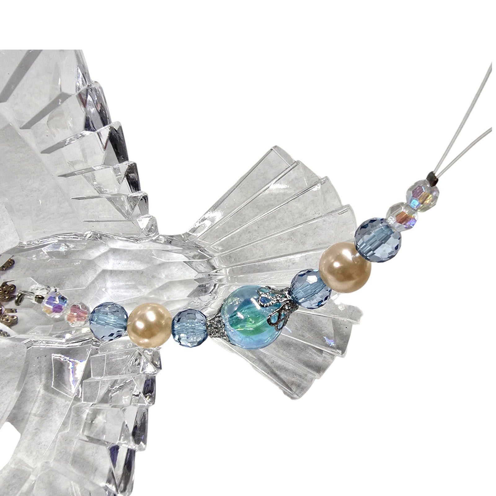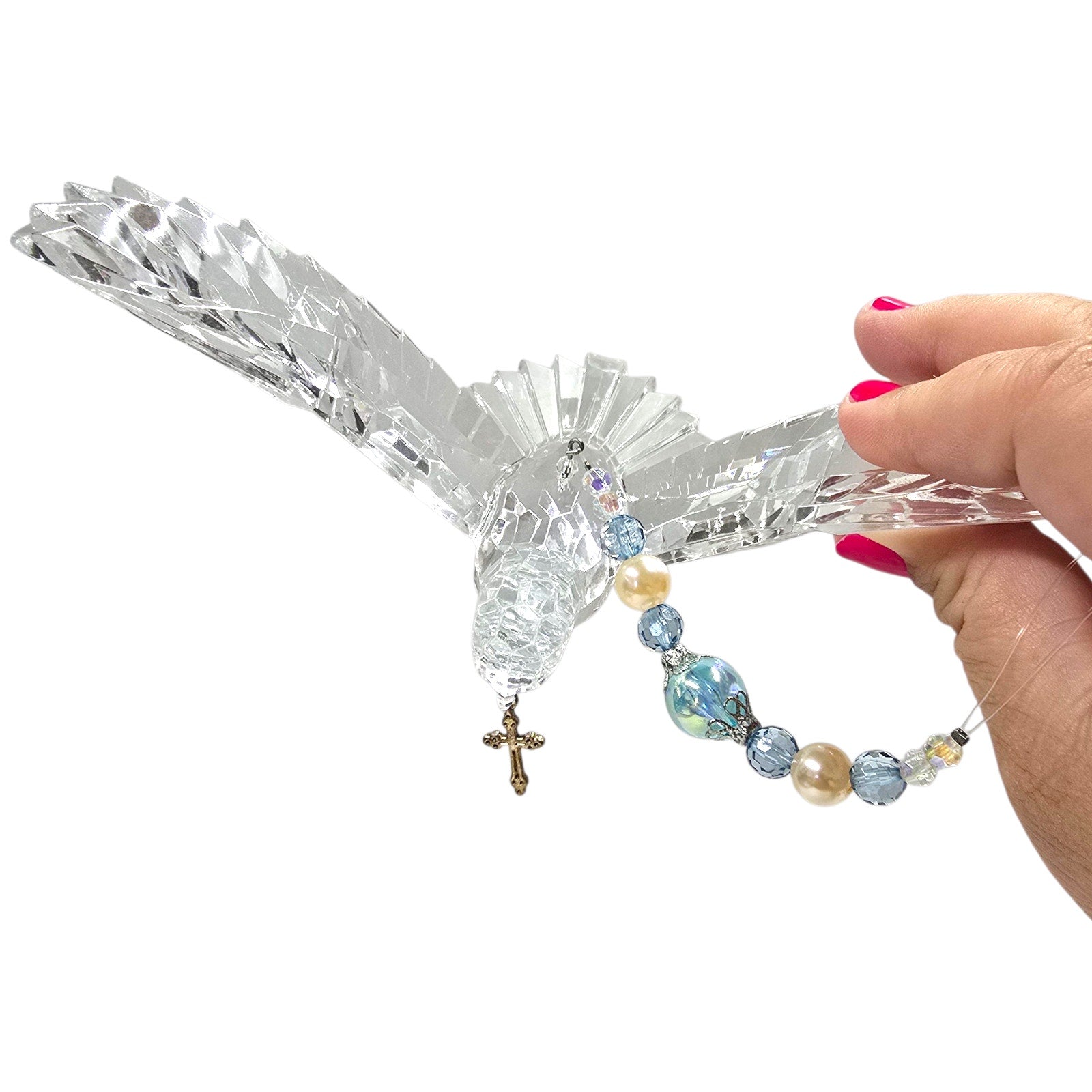 Acrylic Hanging Dove Carrying a Cross with Sparkly Beads, Christian Gift Hanging