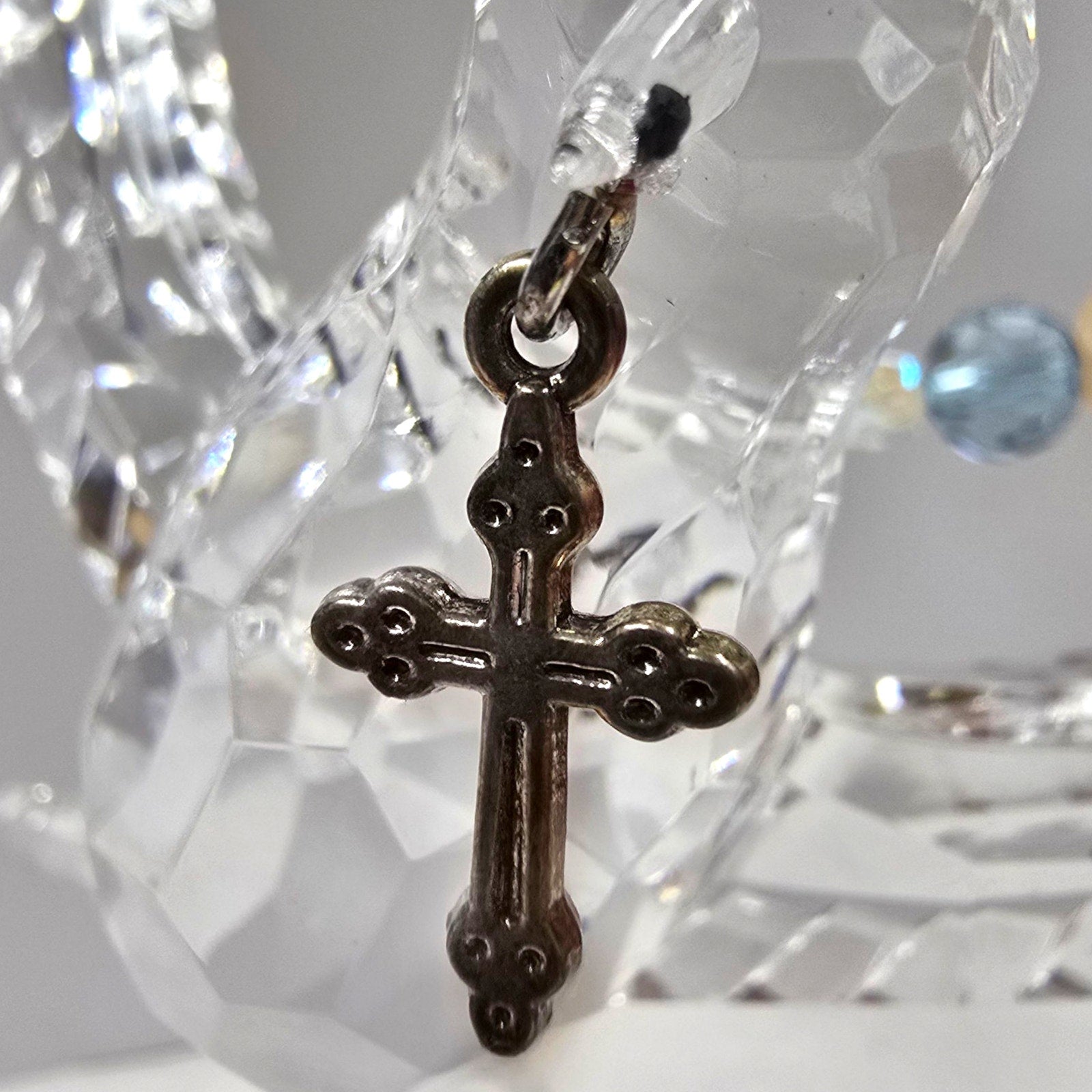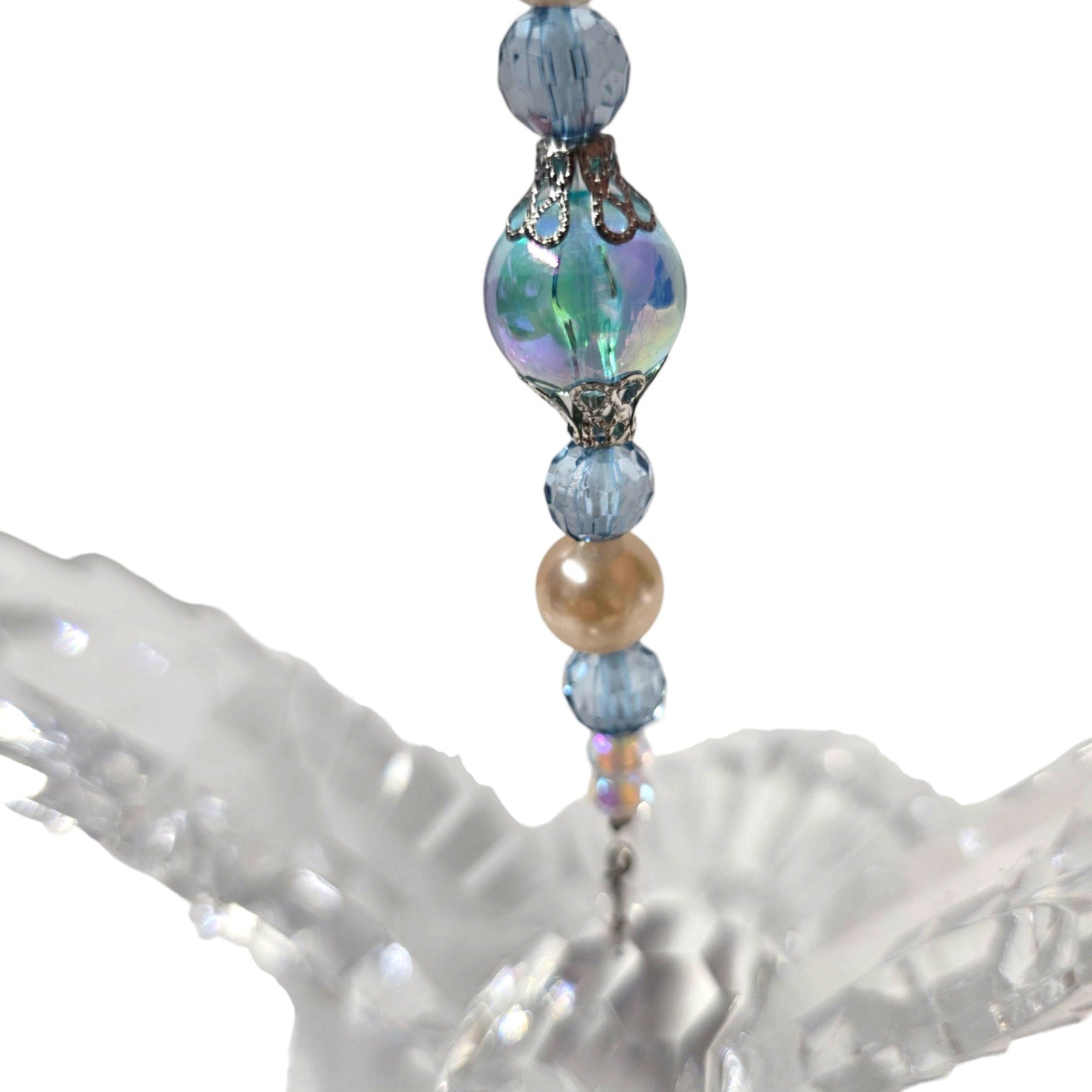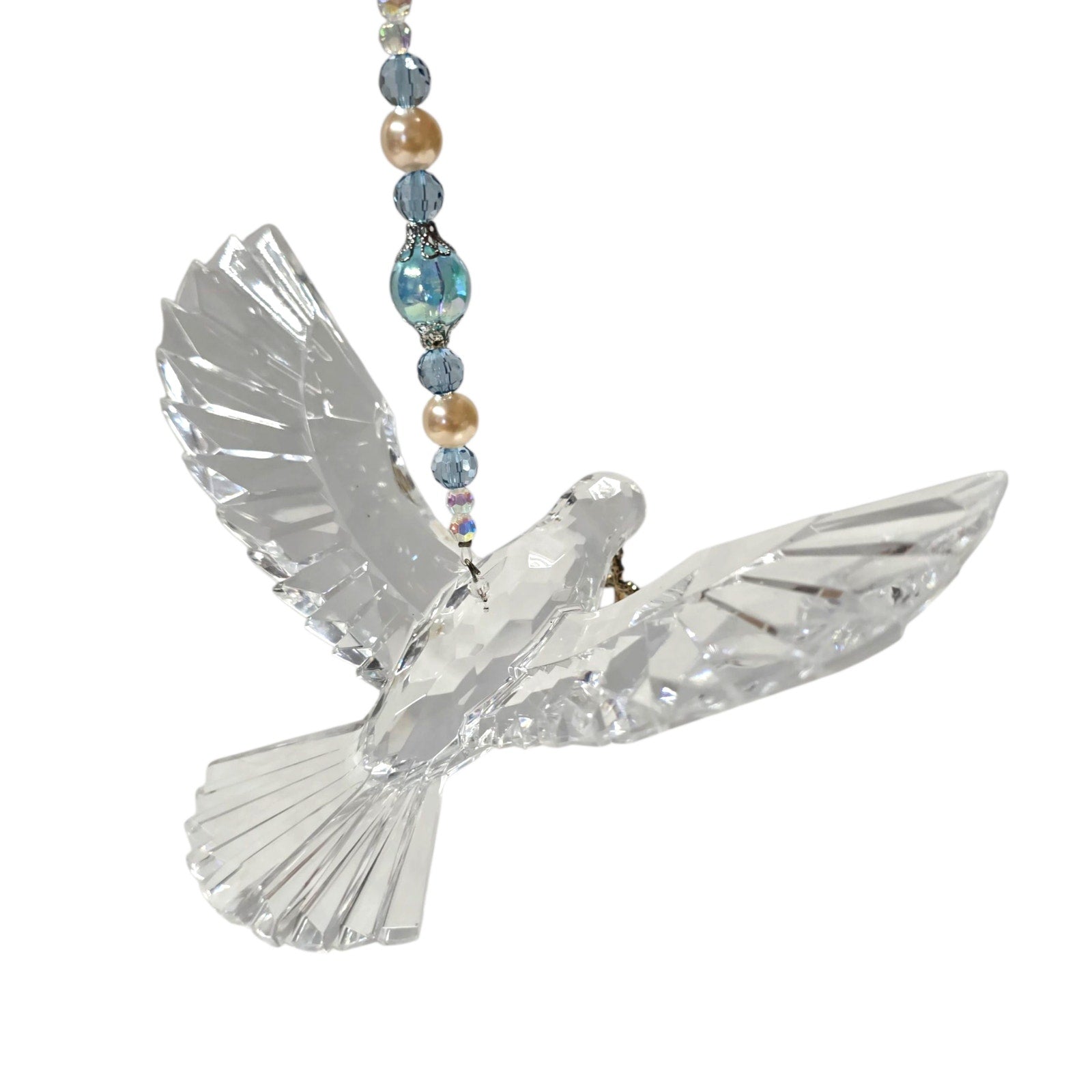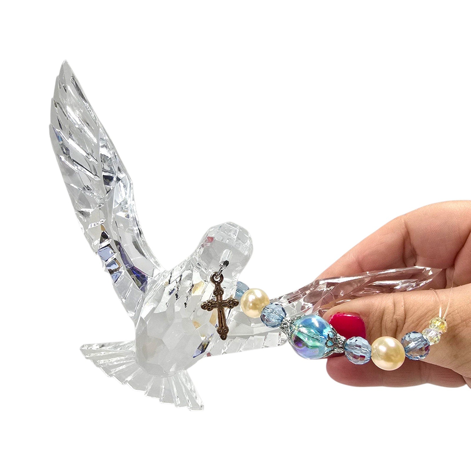 Acrylic Hanging Dove Carrying a Cross with Sparkly Beads, Christian Gift Hanging