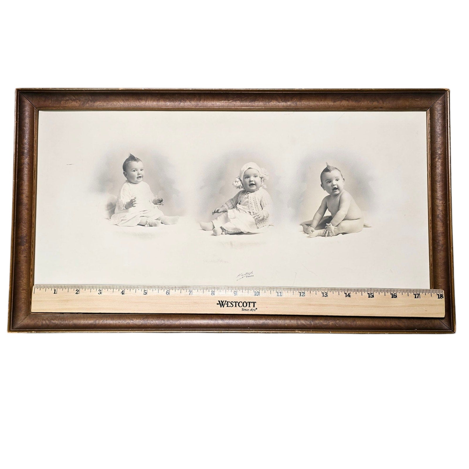 Antique 3 Pose Hartsook Baby Photos, Framed, Adorable Triplets