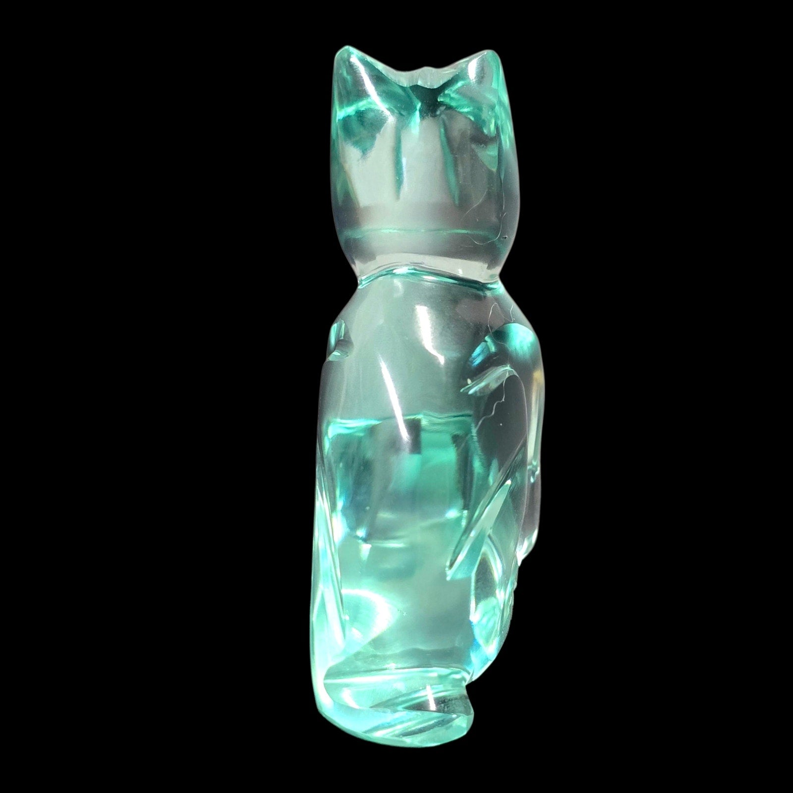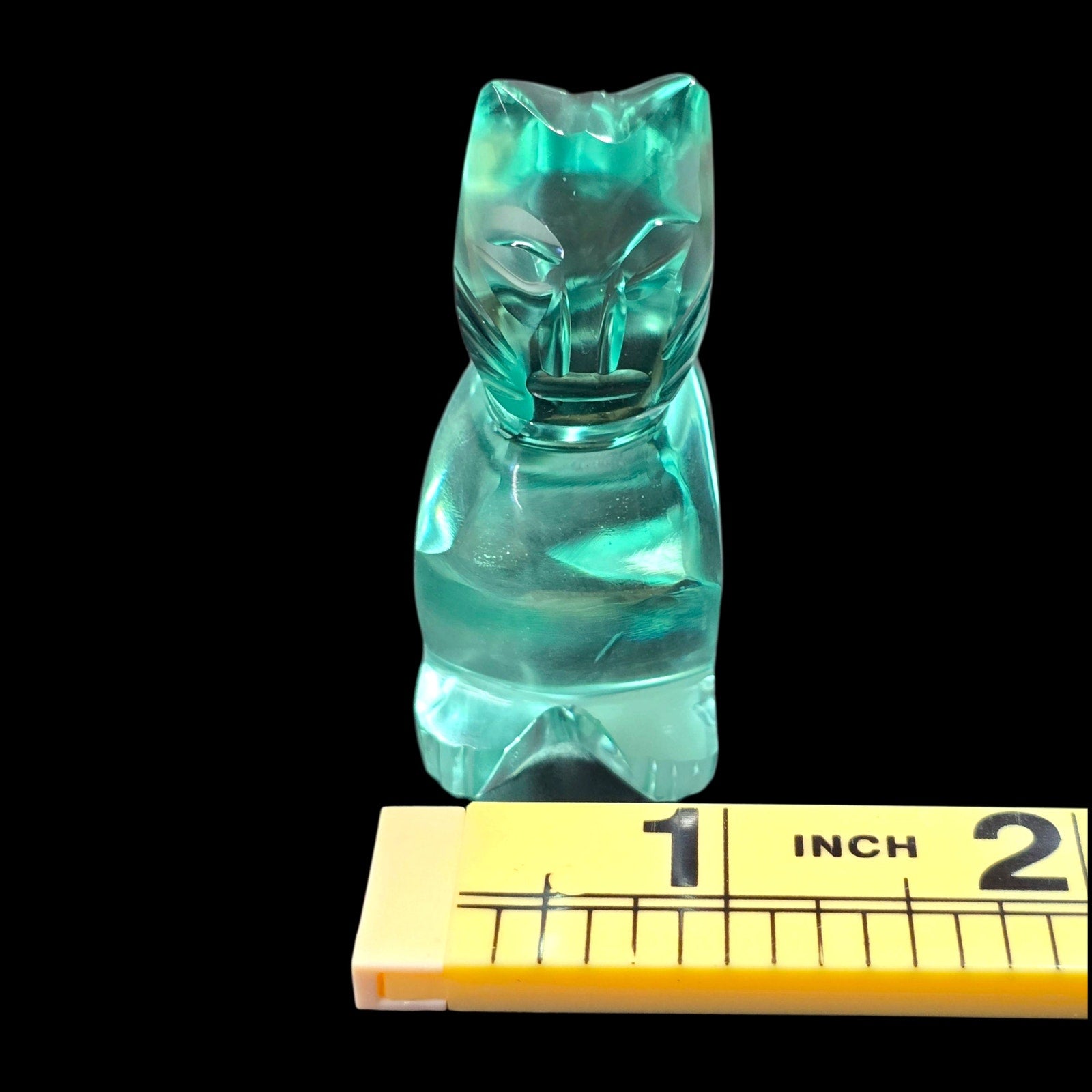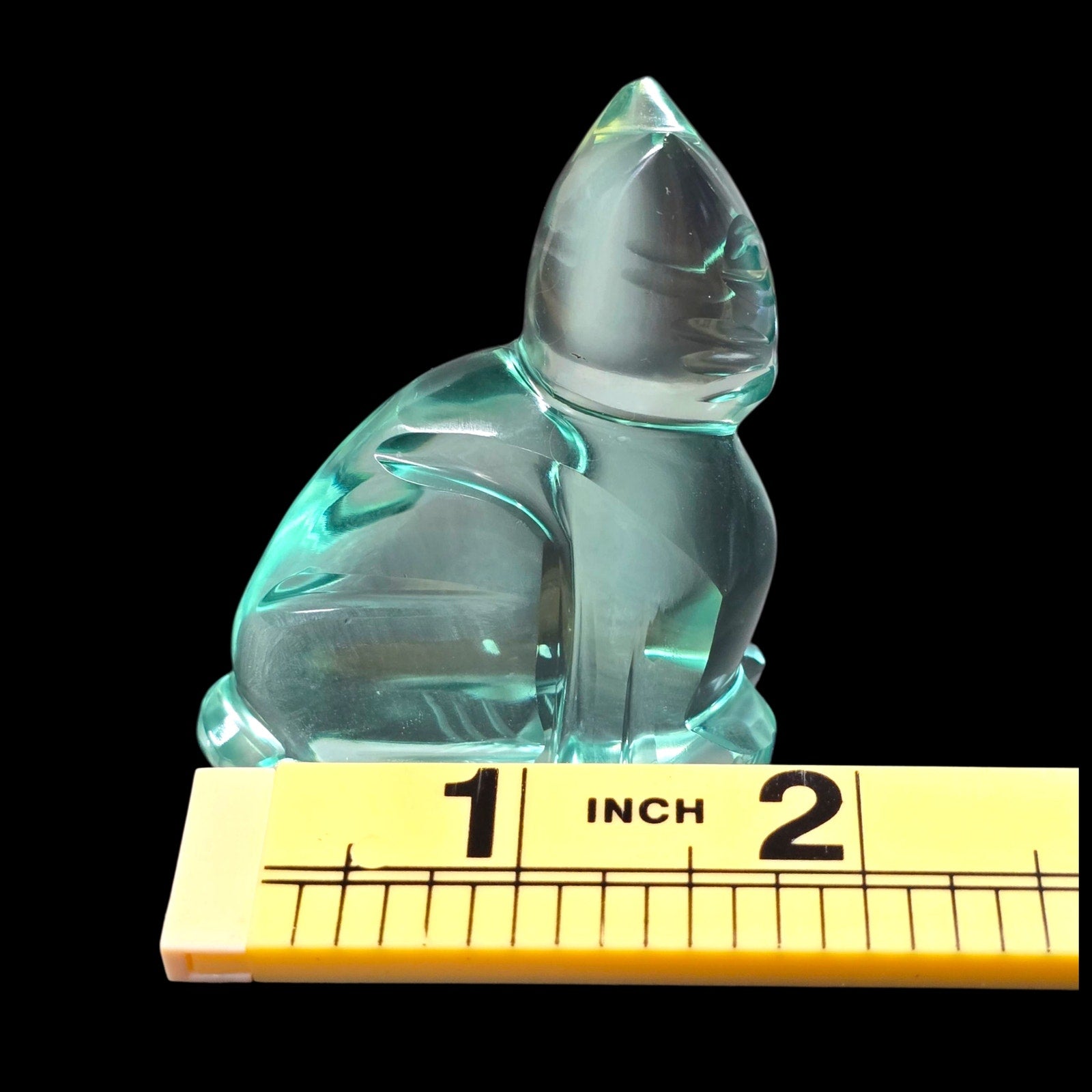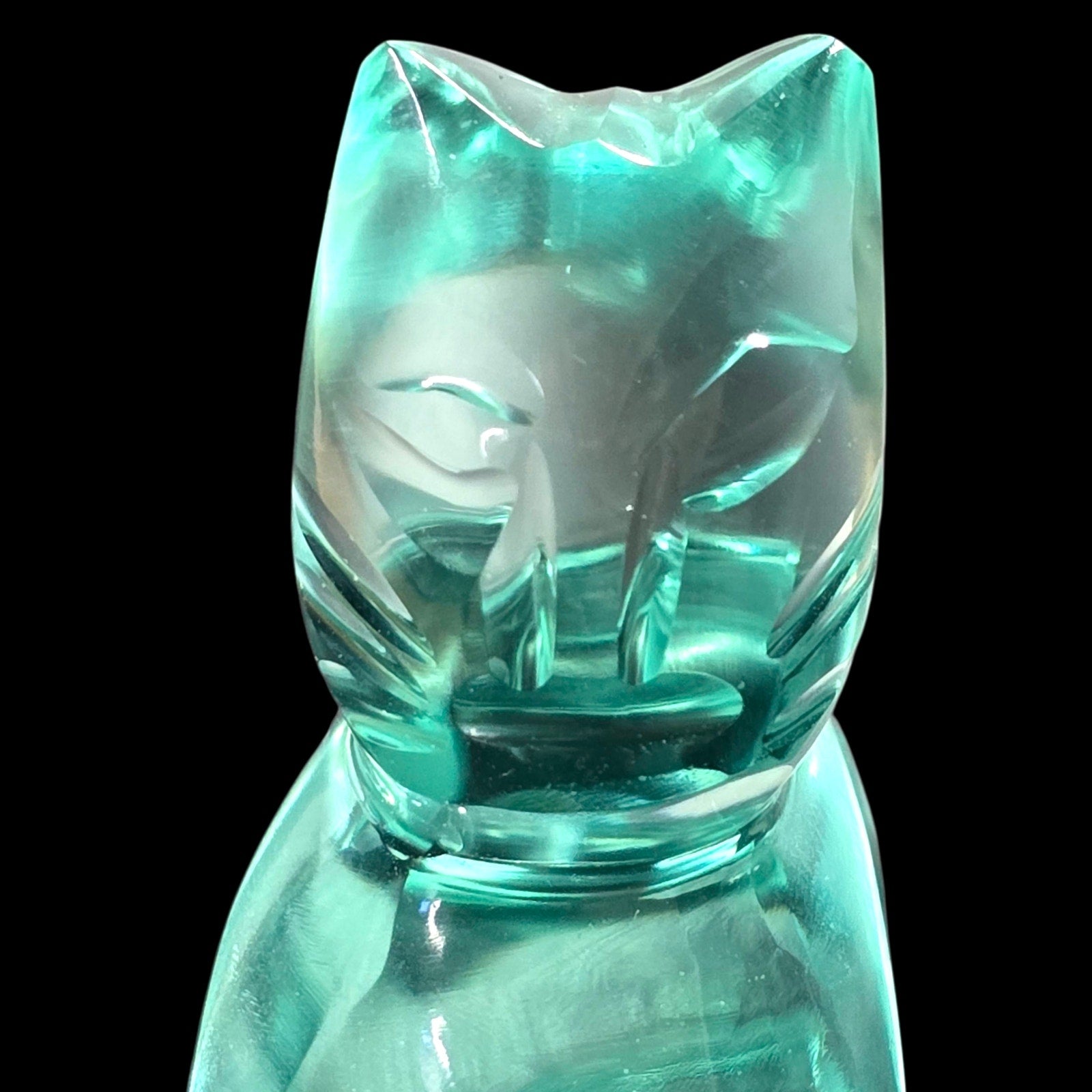 Art Glass Cat Figurine Teal Aqua Modernist Style Polished Finish 2.25"