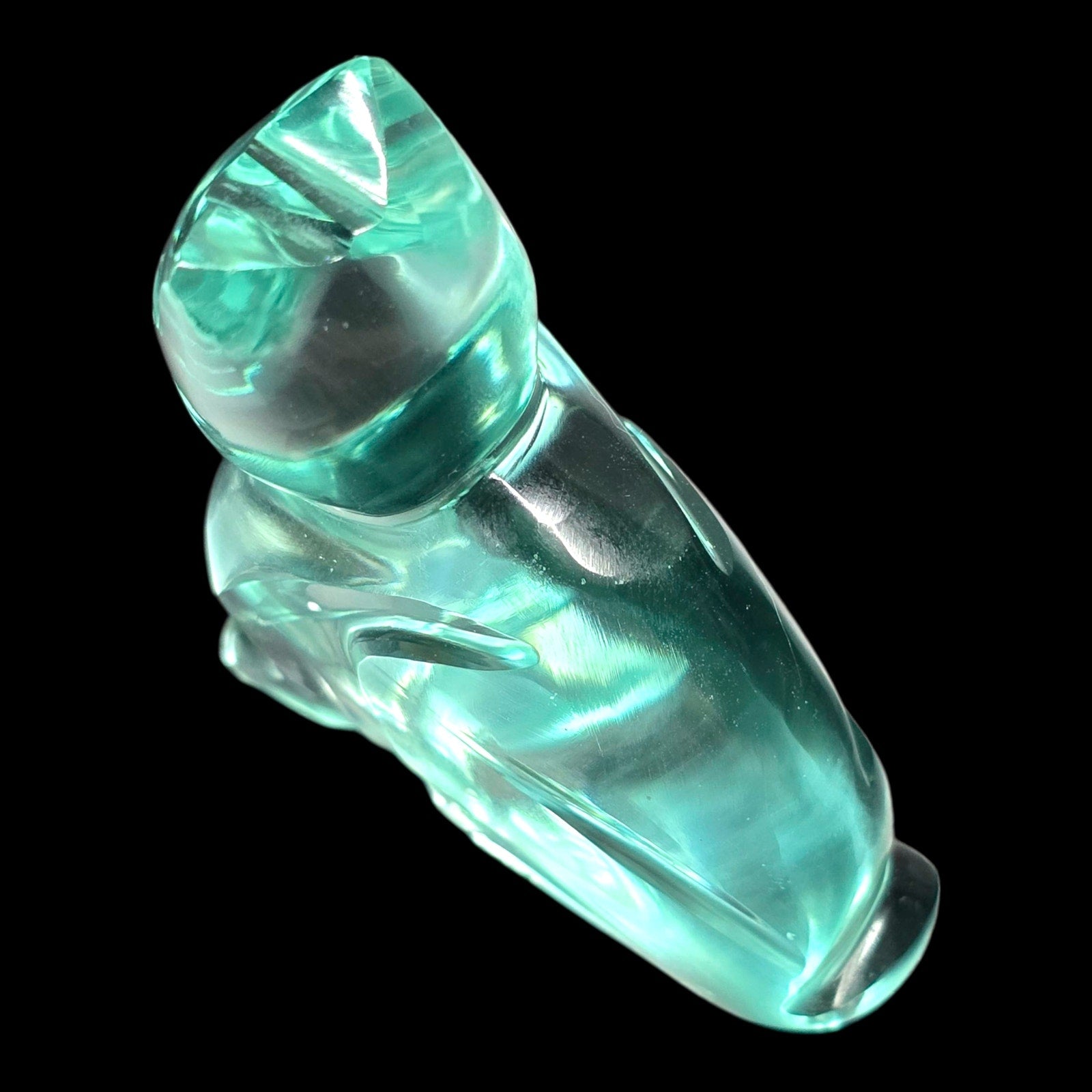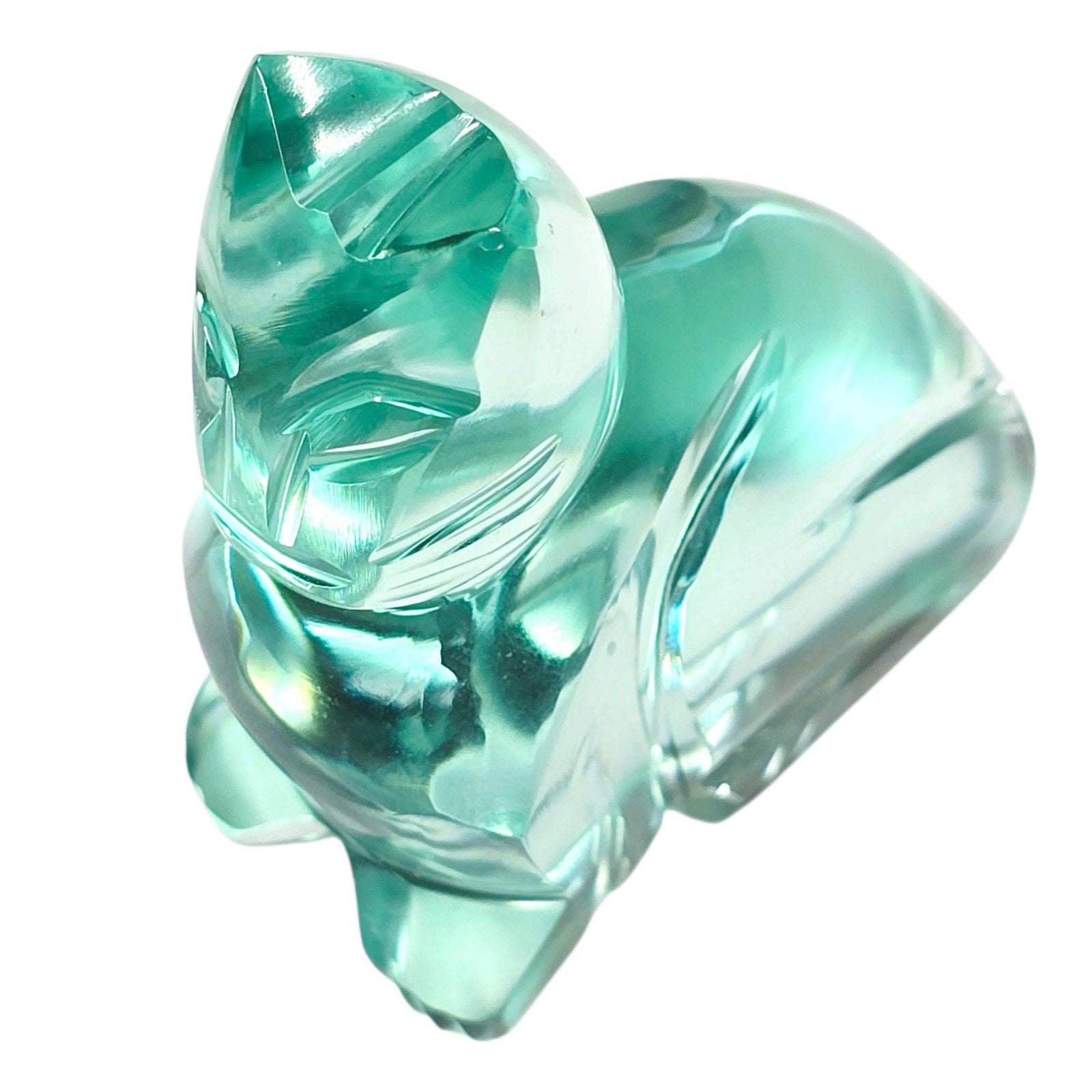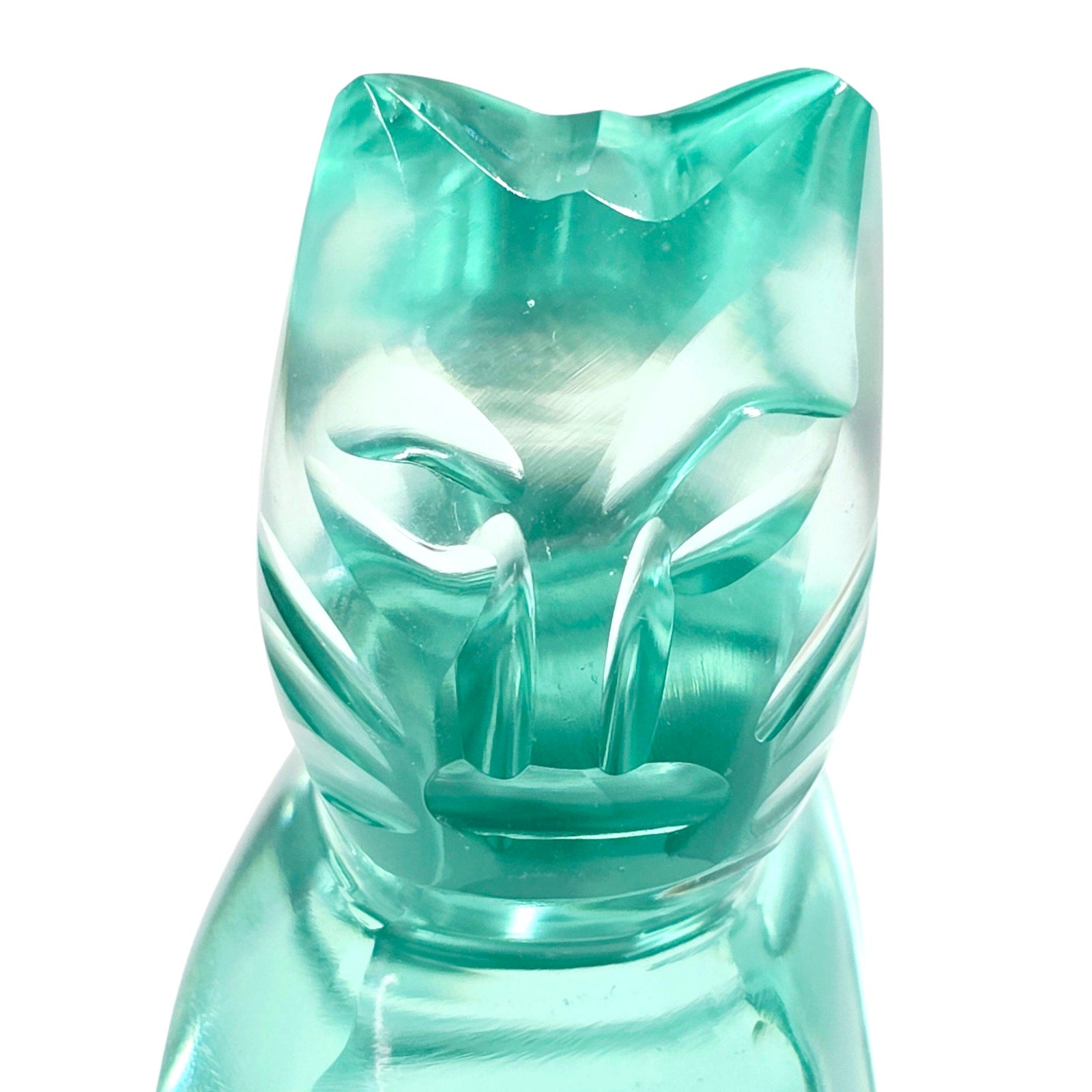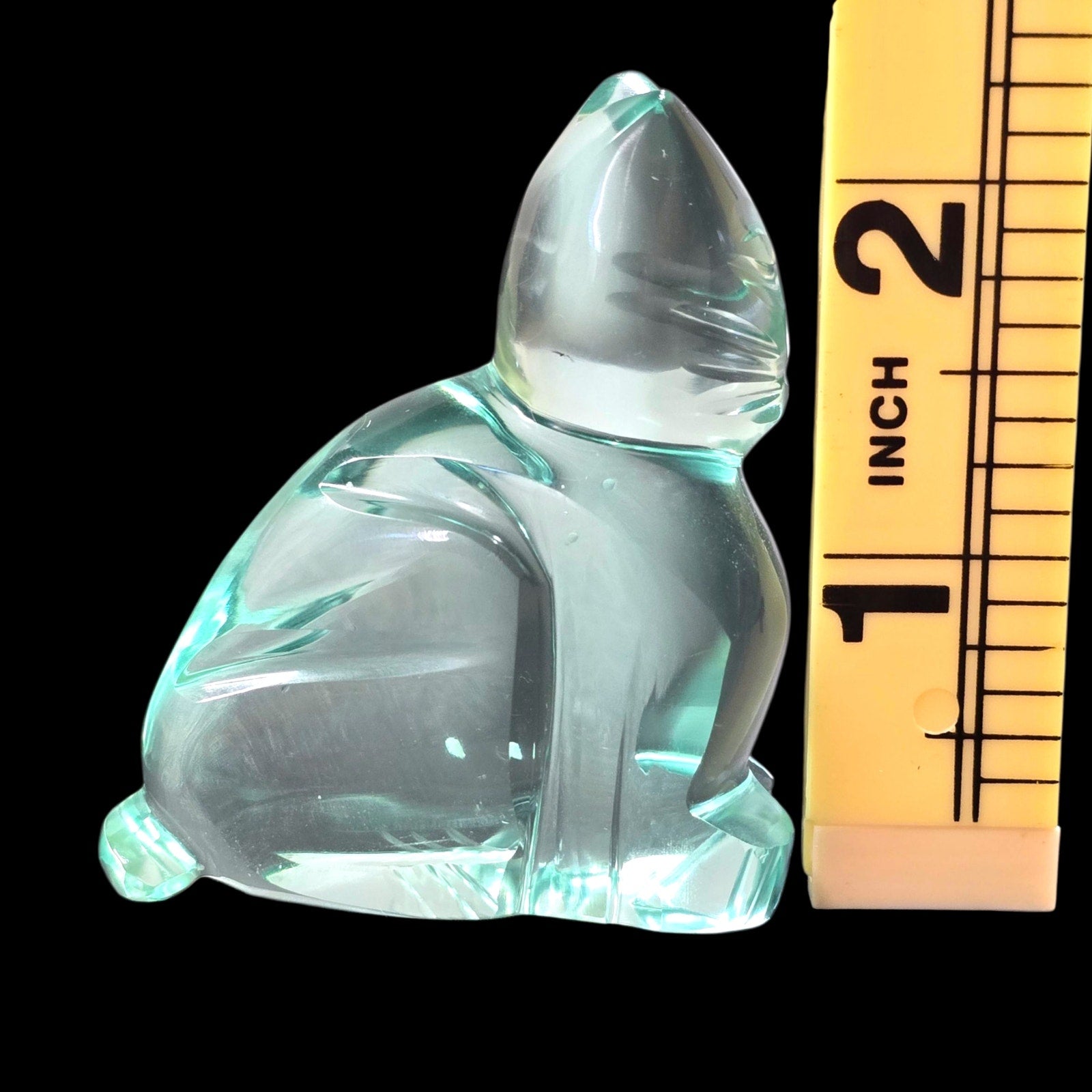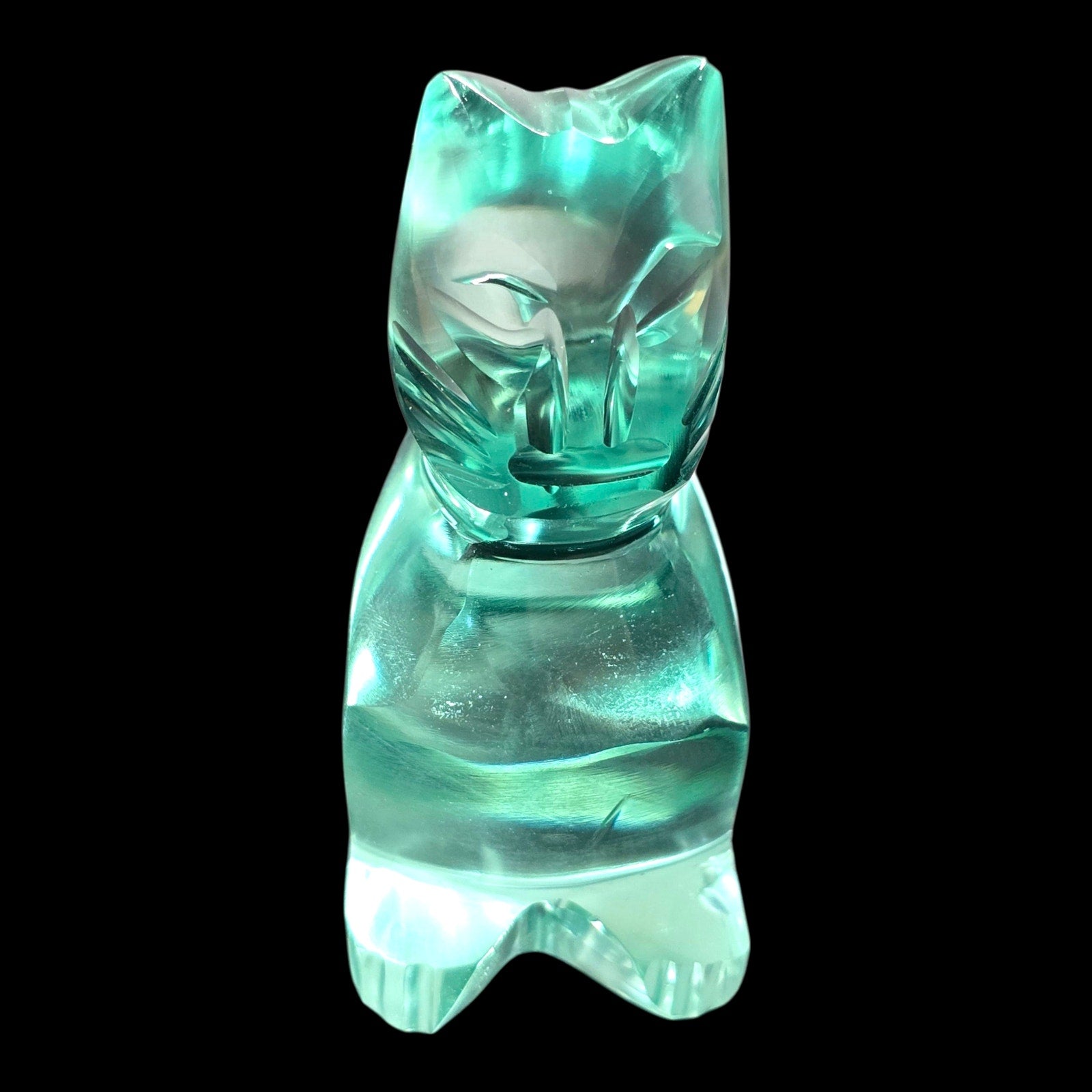 Art Glass Cat Figurine Teal Aqua Modernist Style Polished Finish 2.25"