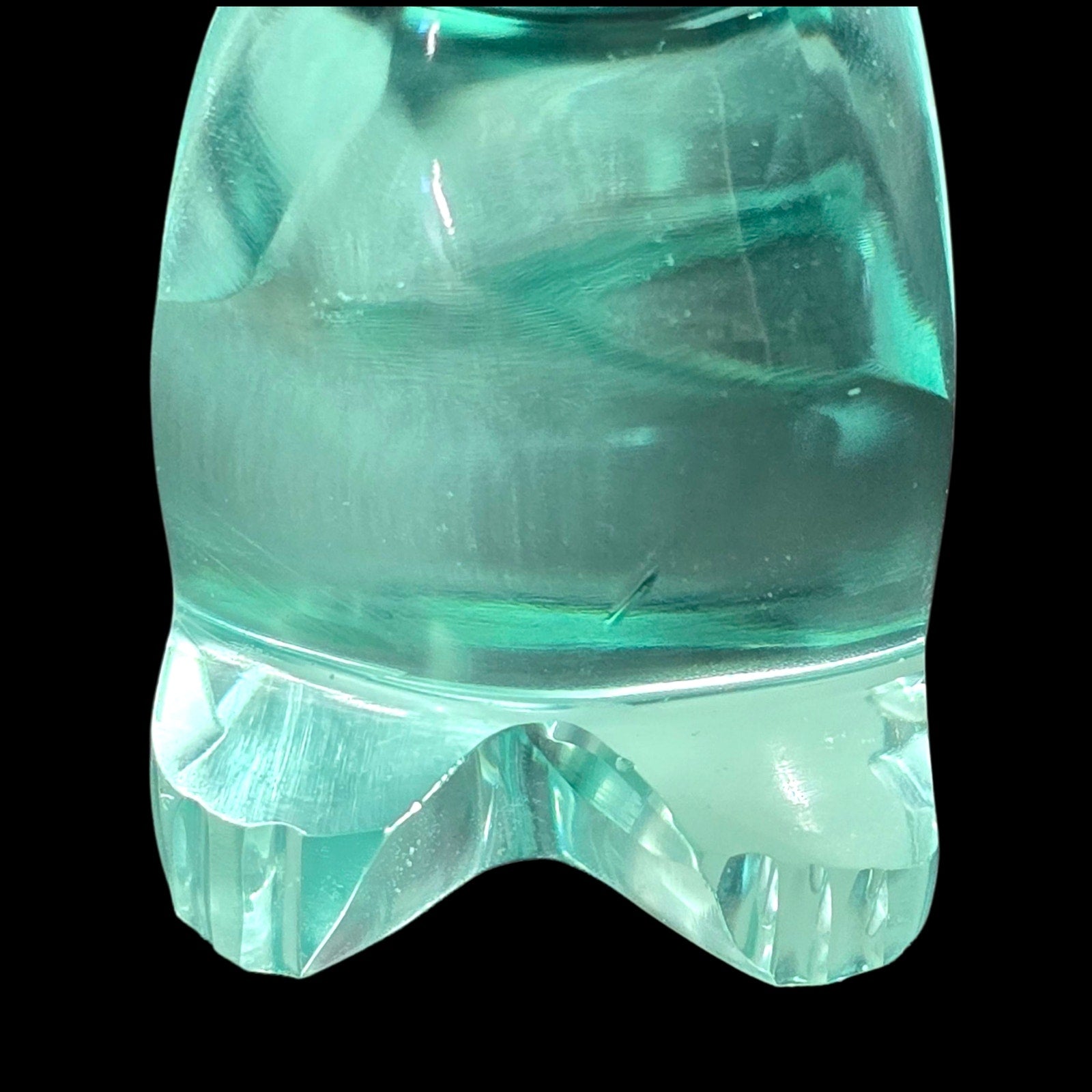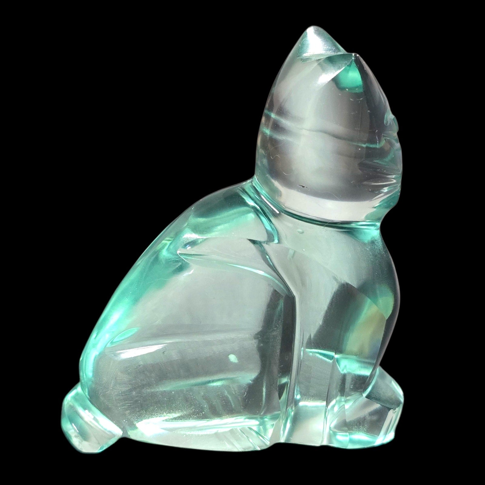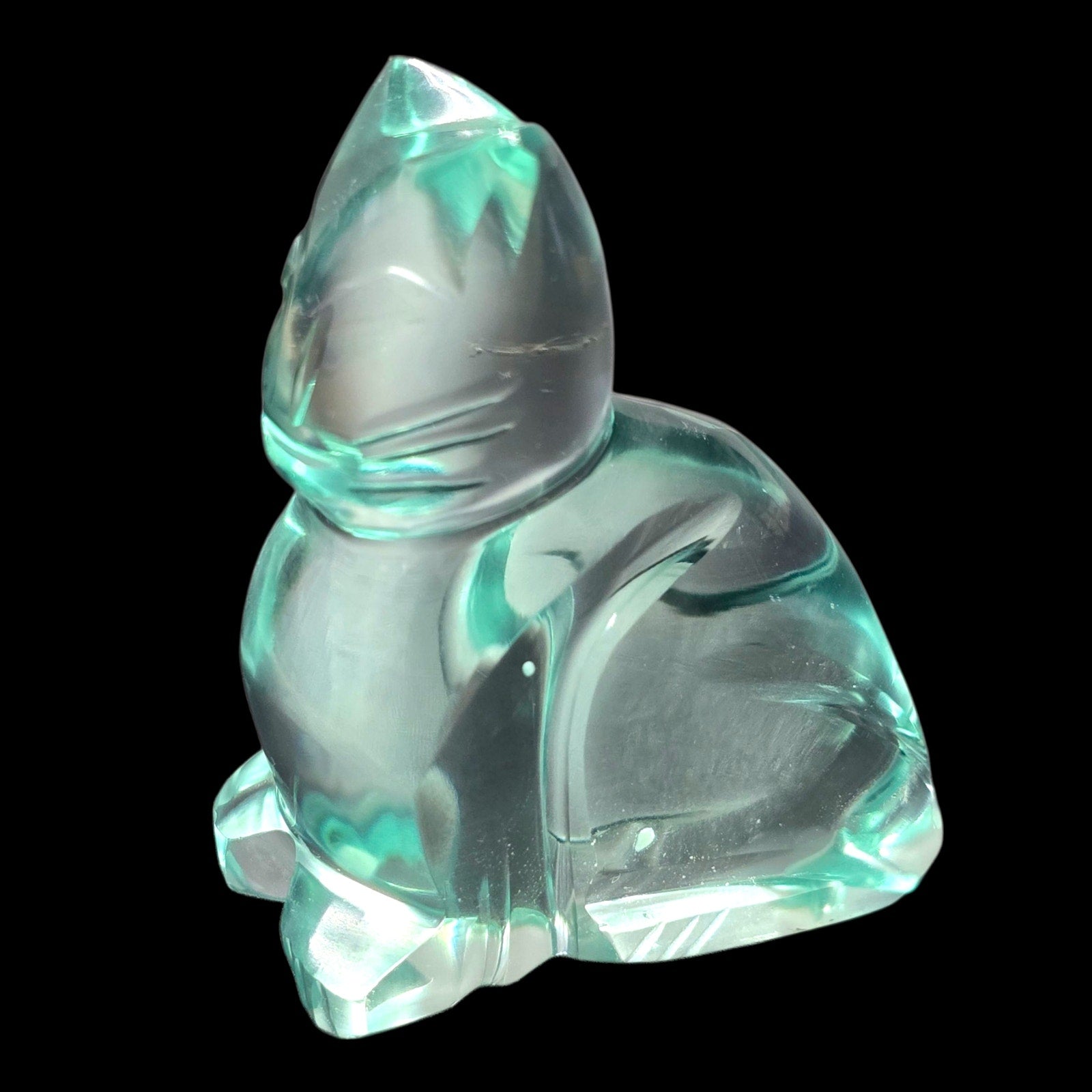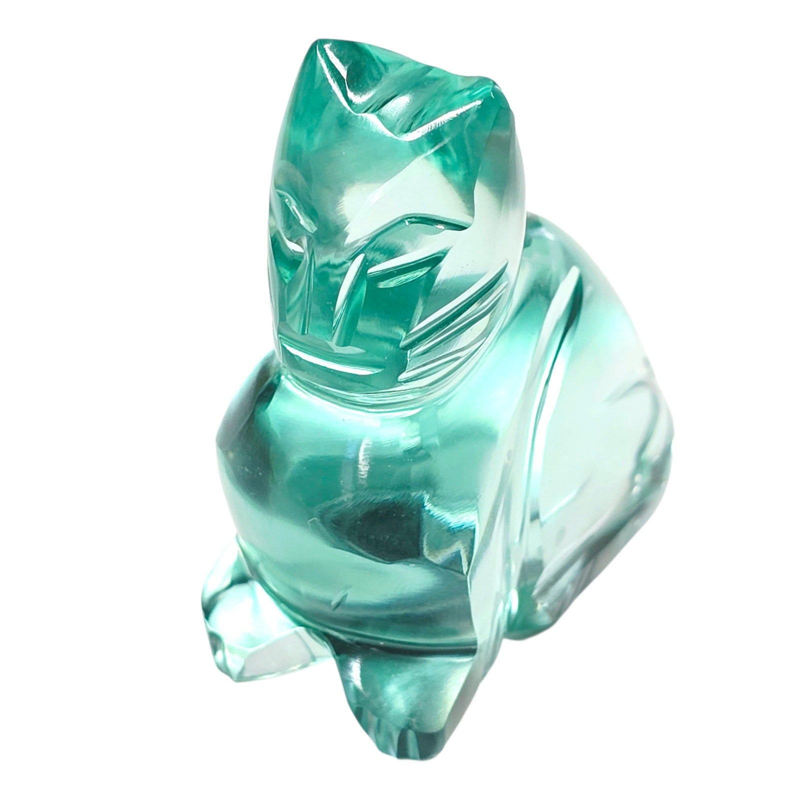 Charming aqua blue art glass cat figurine with a smooth sculpted finish and crisp lines, possibly Scandinavian-style (Reminds me of Viking Glass, Bischoff, or even Murano-style art glass). This piece catches light beautifully, showing off shades of aqua and teal depending on the angle. Perfect as a collectible paperweight, bookshelf accent, or gift for cat lovers.