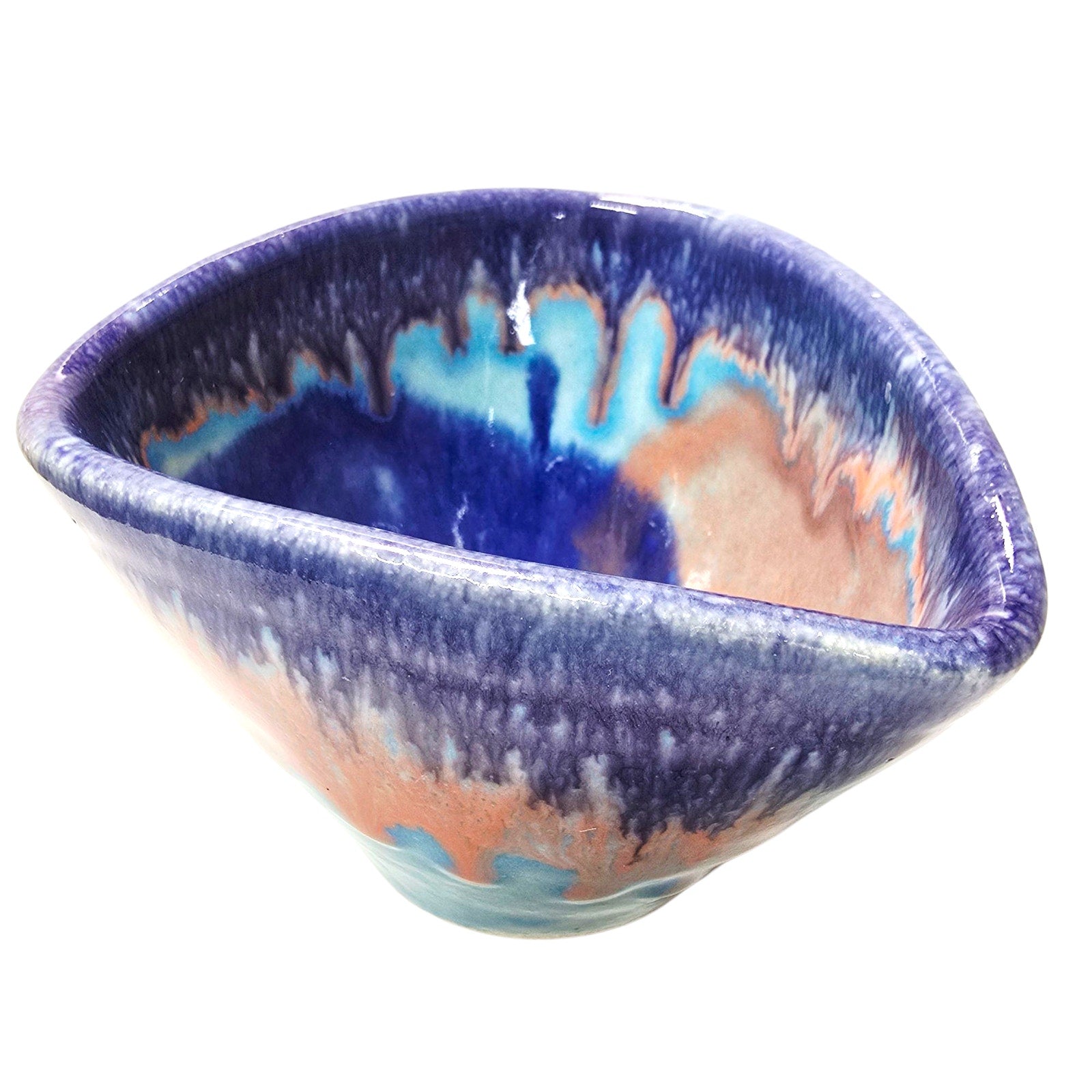 Art Pottery Drip Glaze Decorative Bowl Blue Salmon Turquoise