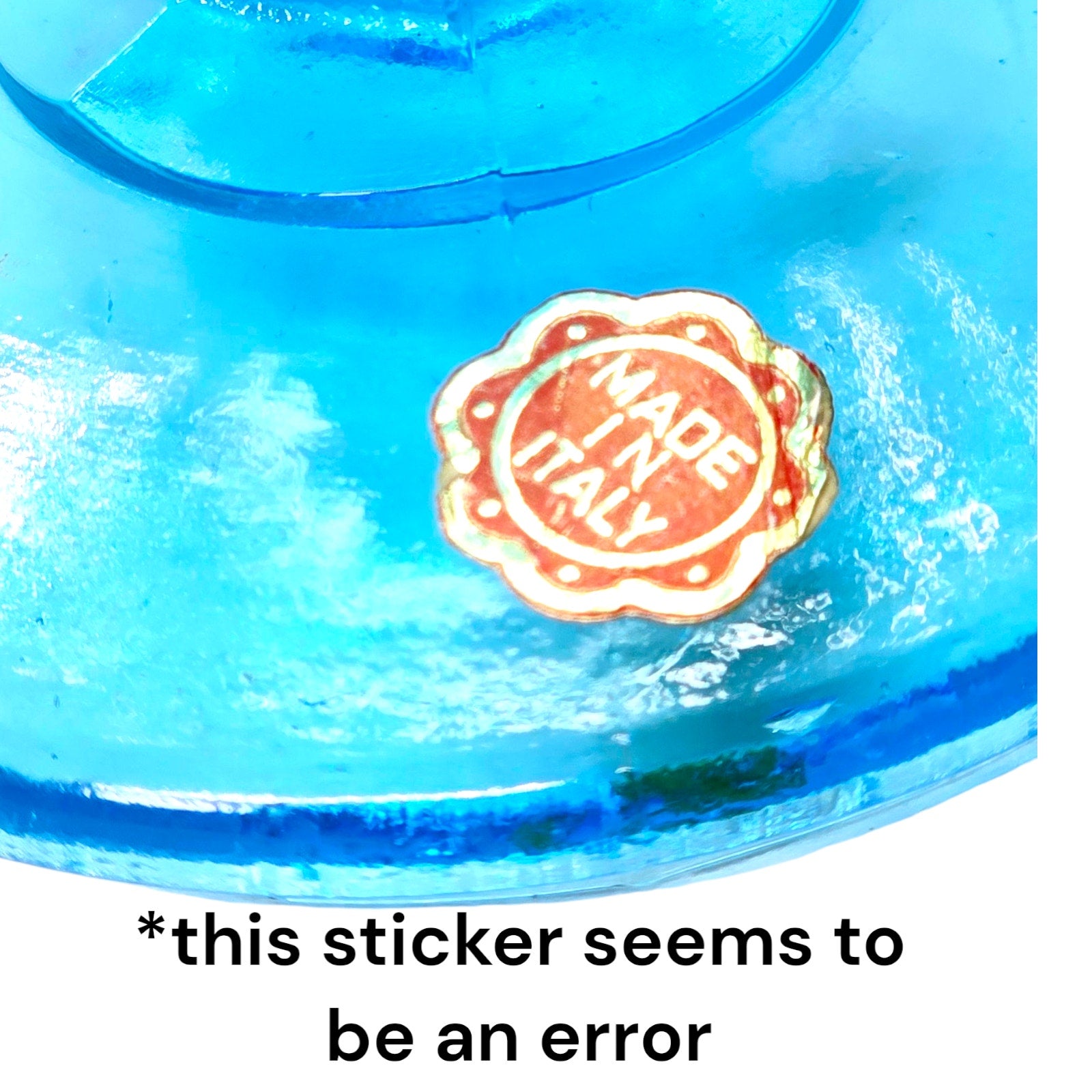 Under UV light, this piece emits a distinct blue-green luminescent glow, consistent with manganese-reactive mid-century Fenton glass. Though it retains a “Made in Italy” sticker, the form, glass tone, and pattern are clearly Fenton Coin Dot, suggesting a dealer tag error rather than actual Italian manufacture.