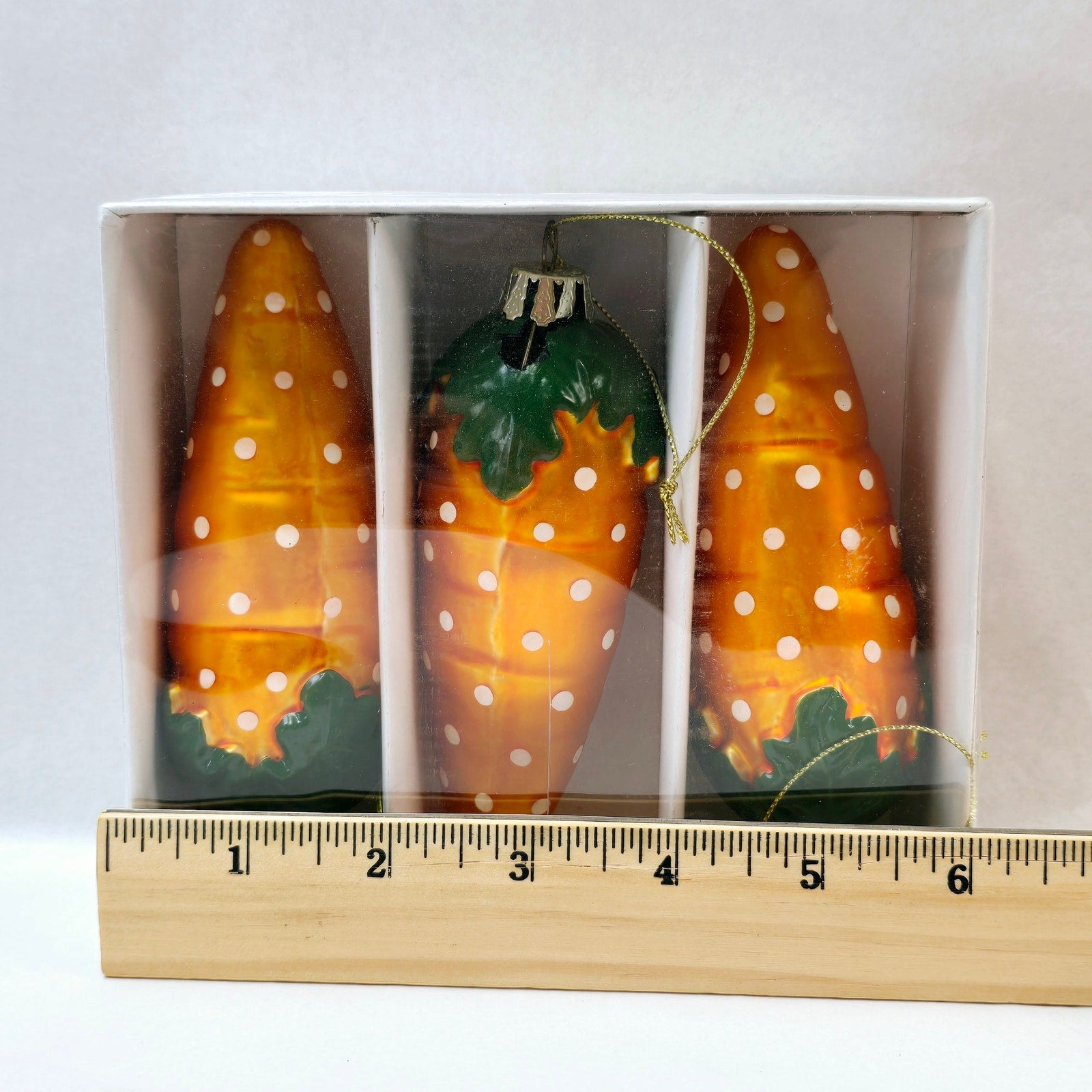 AS IS Set of 3 Blown Glass Carrot Ornaments, FLAW