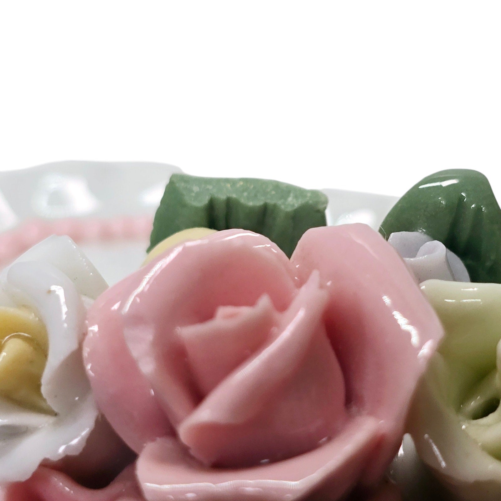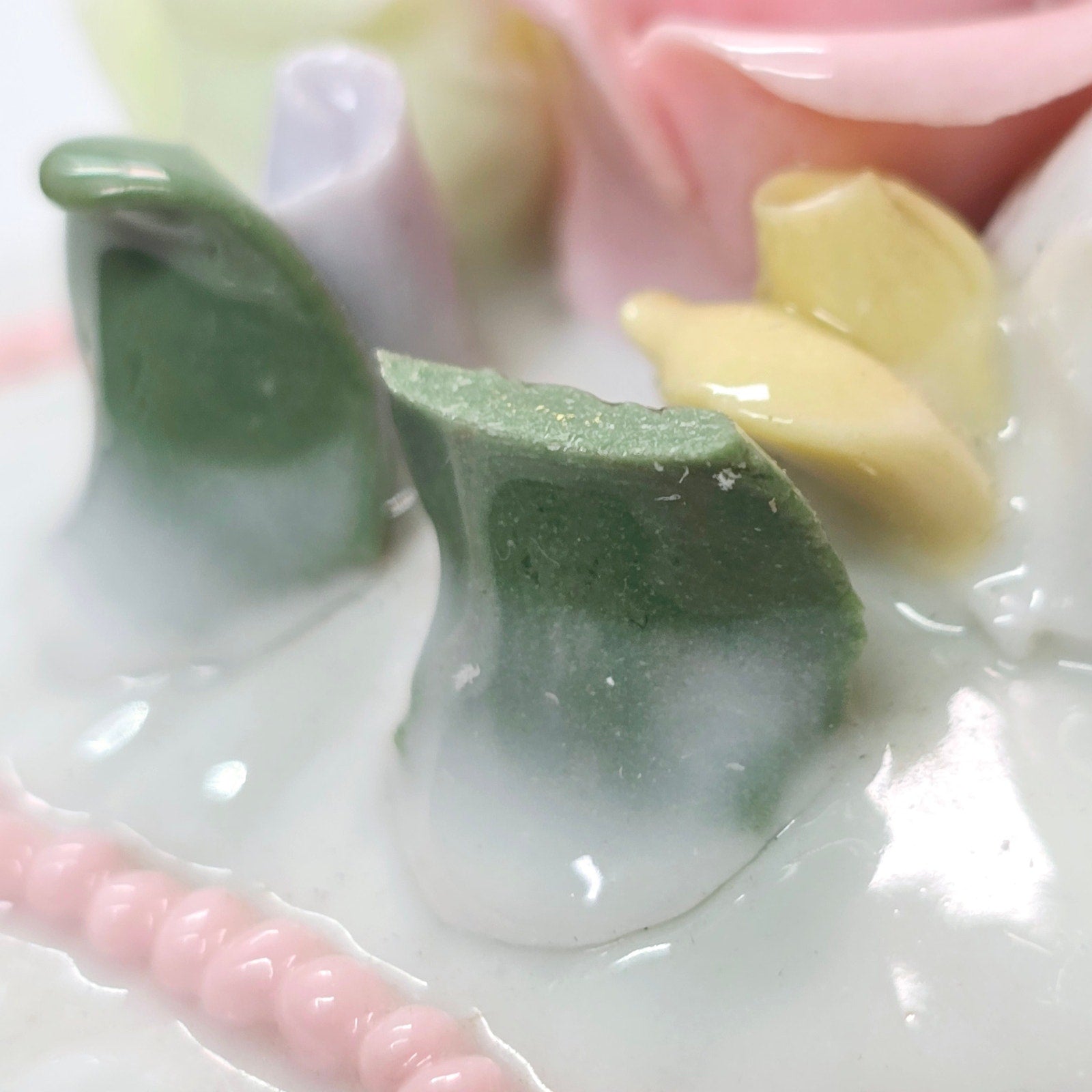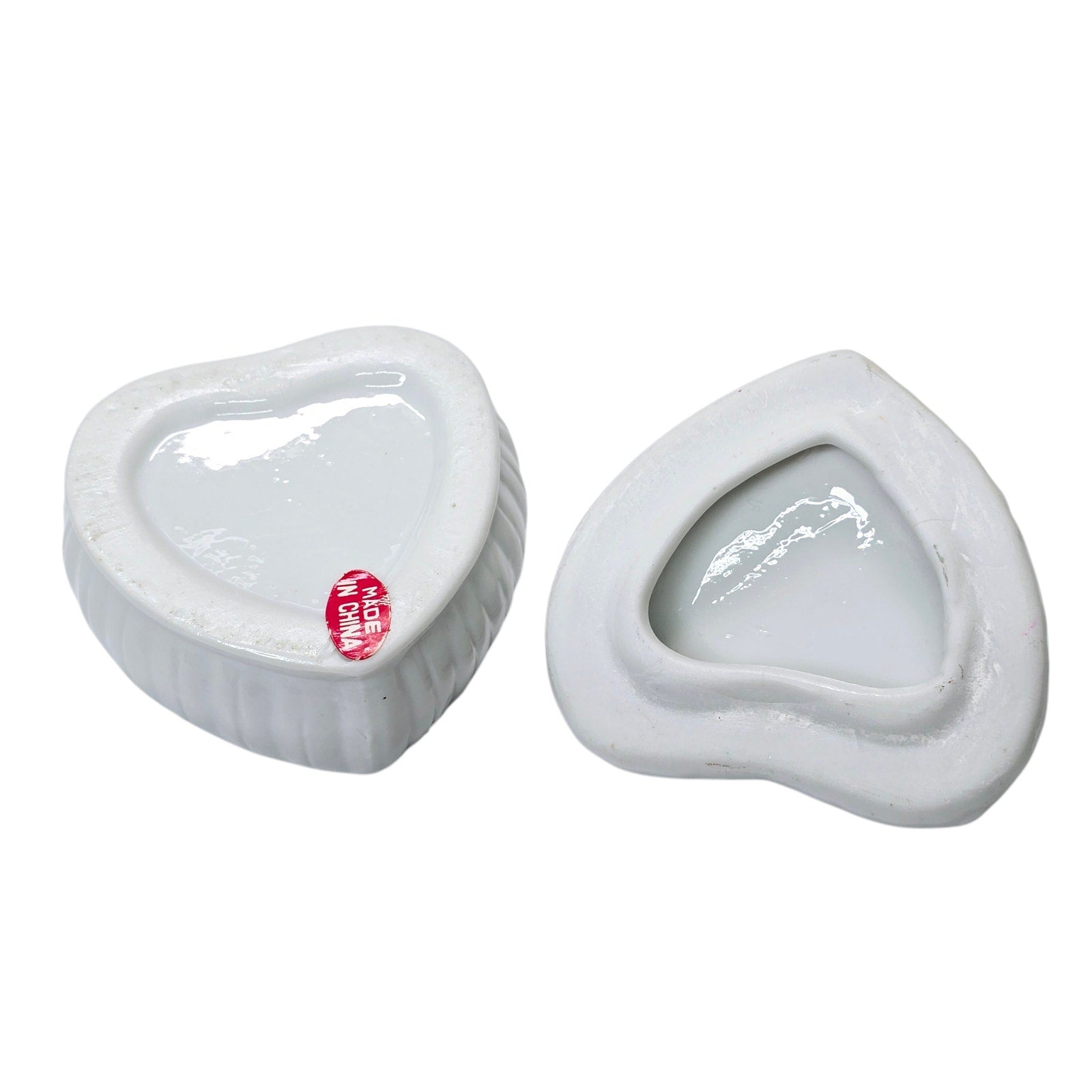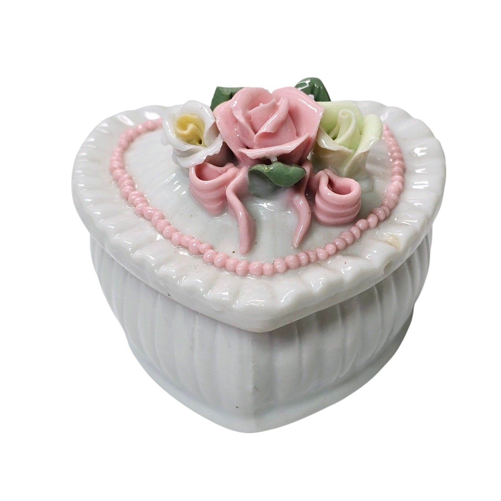 * AS IS Vintage Heart Shaped Porcelain Trinket Box Ring Holder with Roses Accents