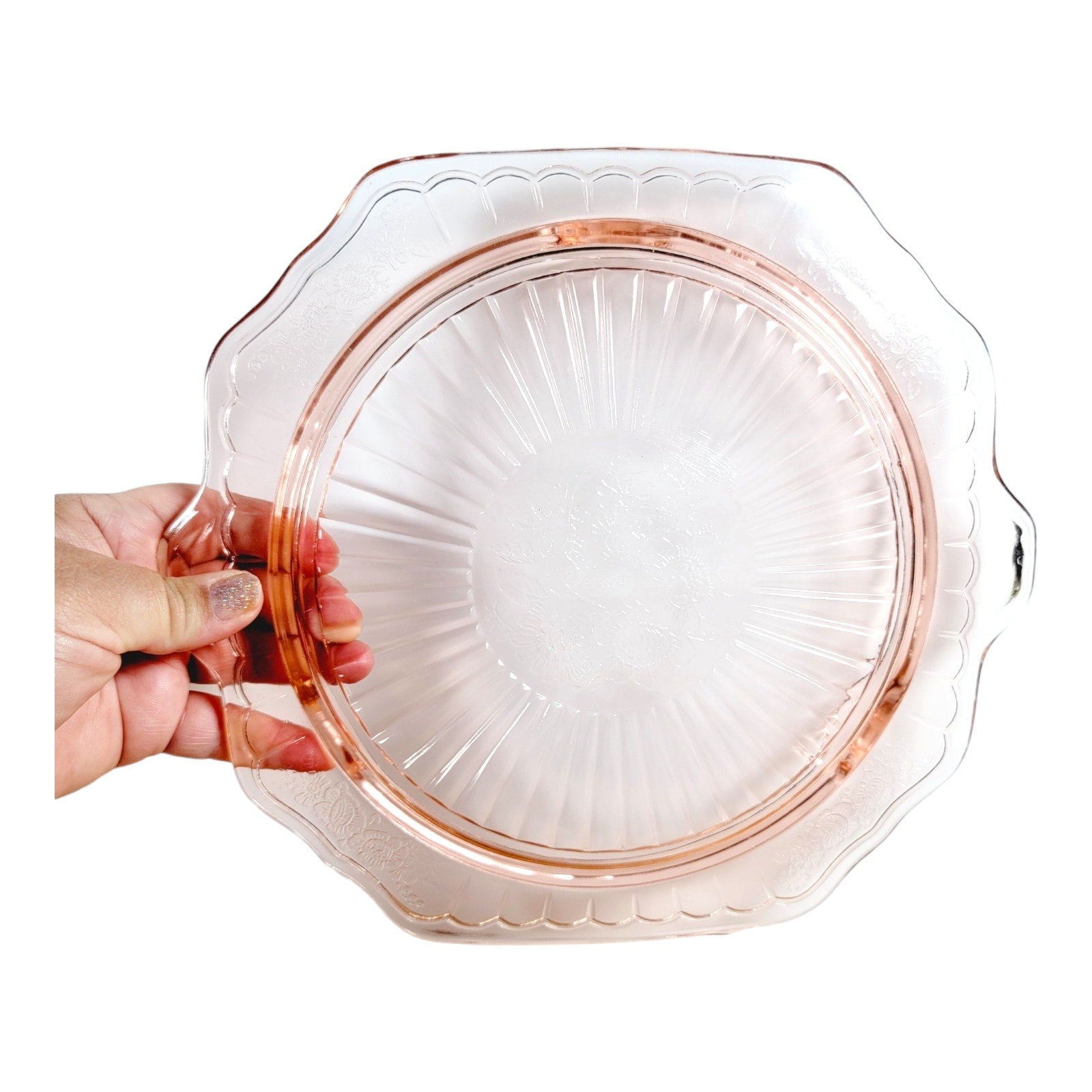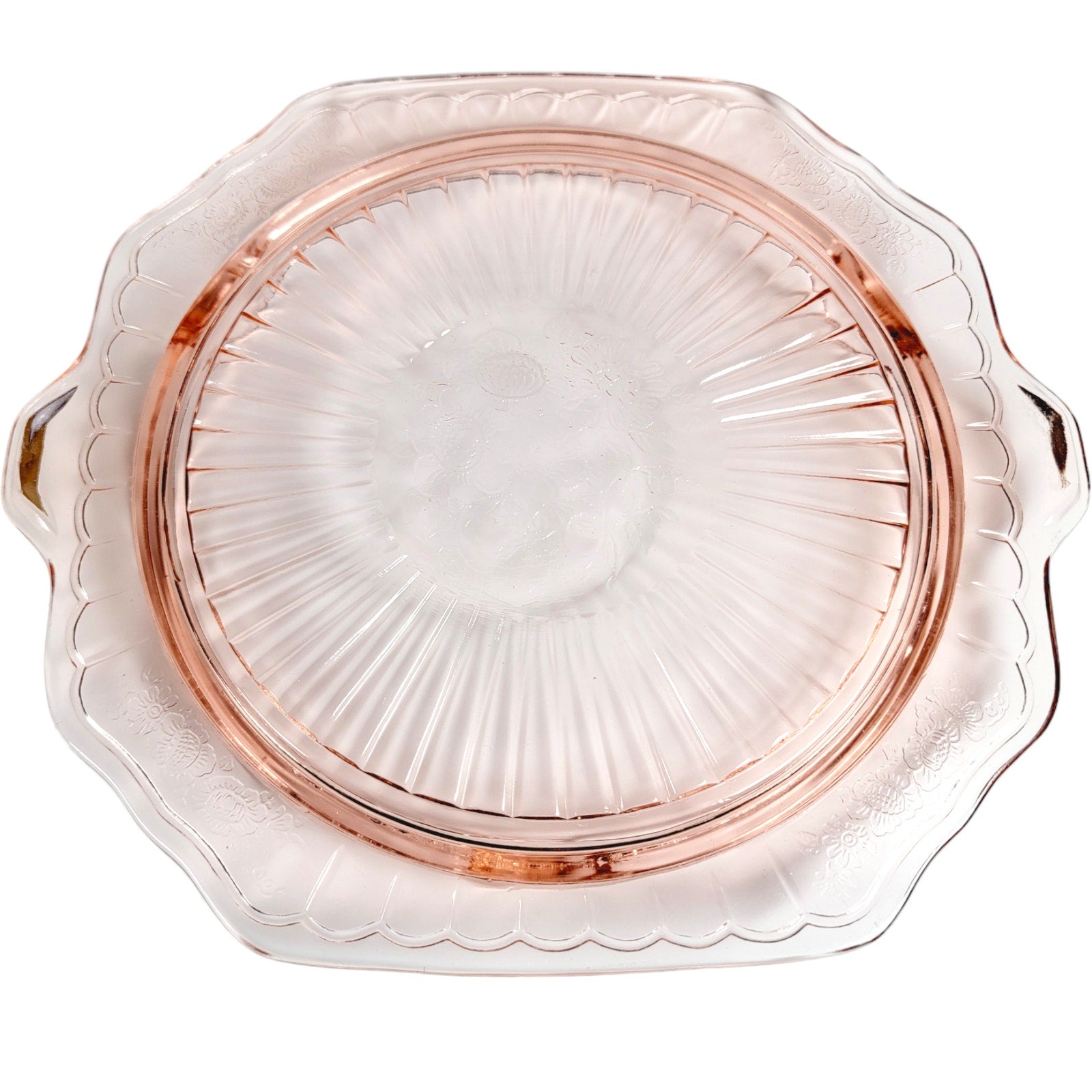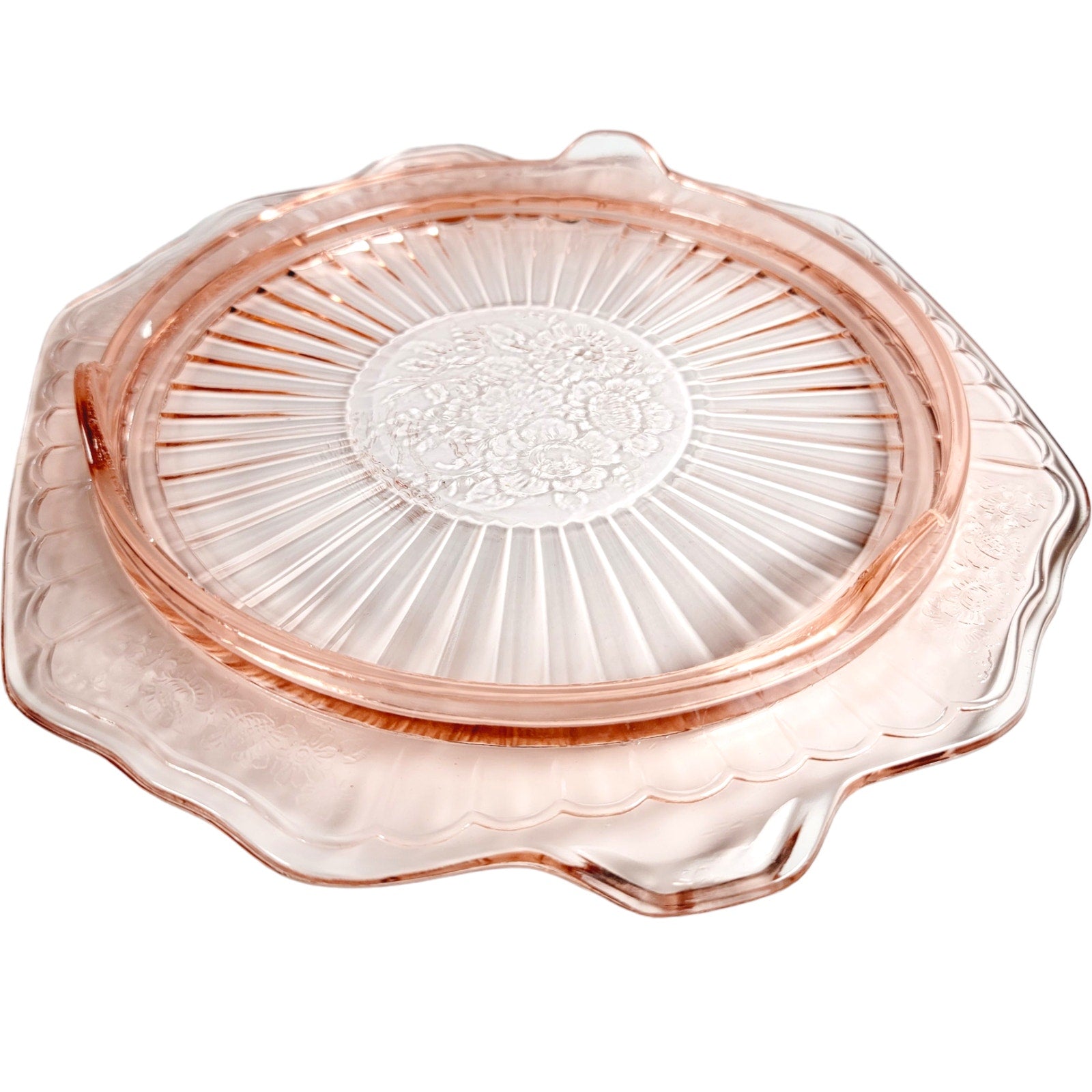 Vintage Pink Depression Glass Anchor Hocking Mayfair Open Rose Footed Cake Plate. SEE CONDITION / FLAW BELOW: