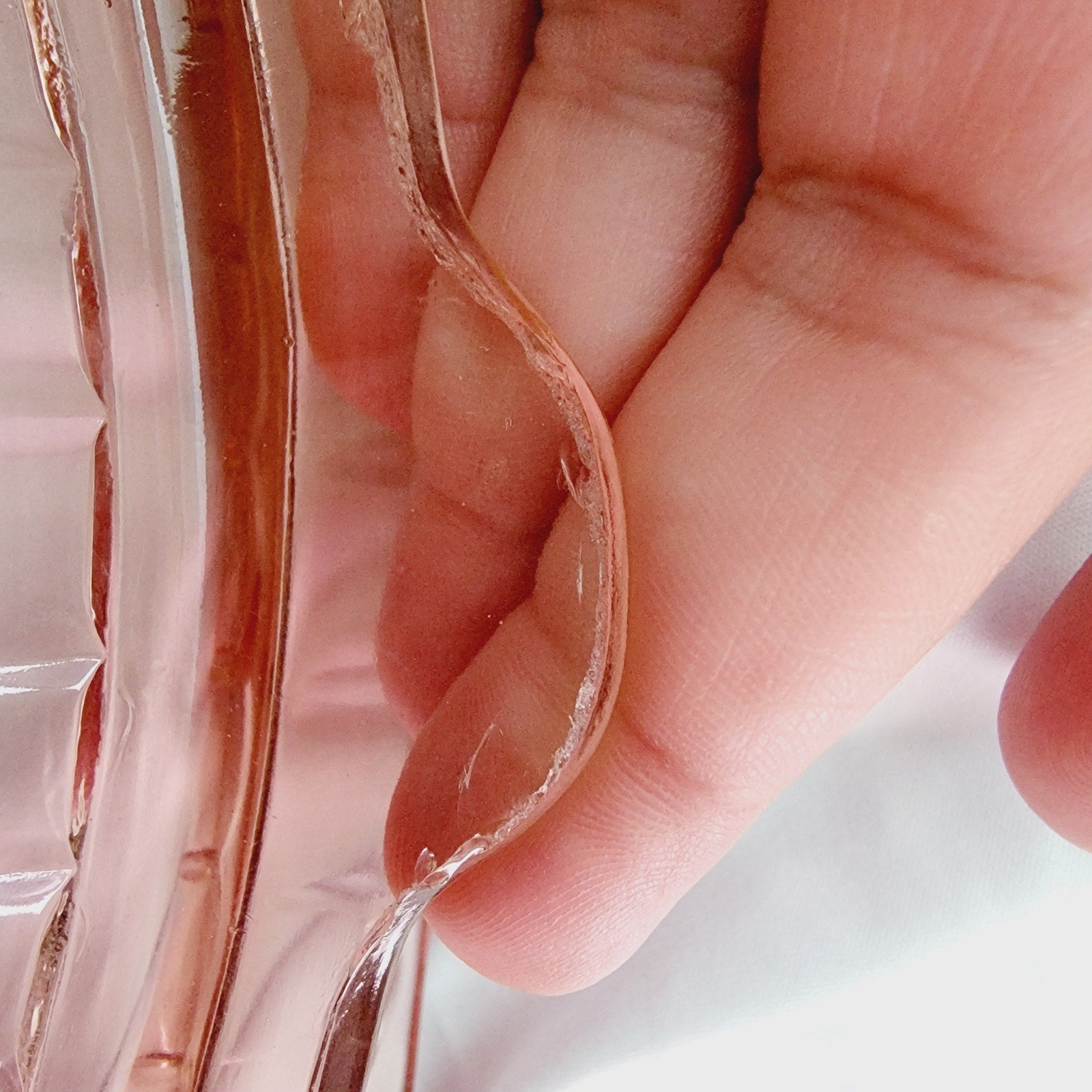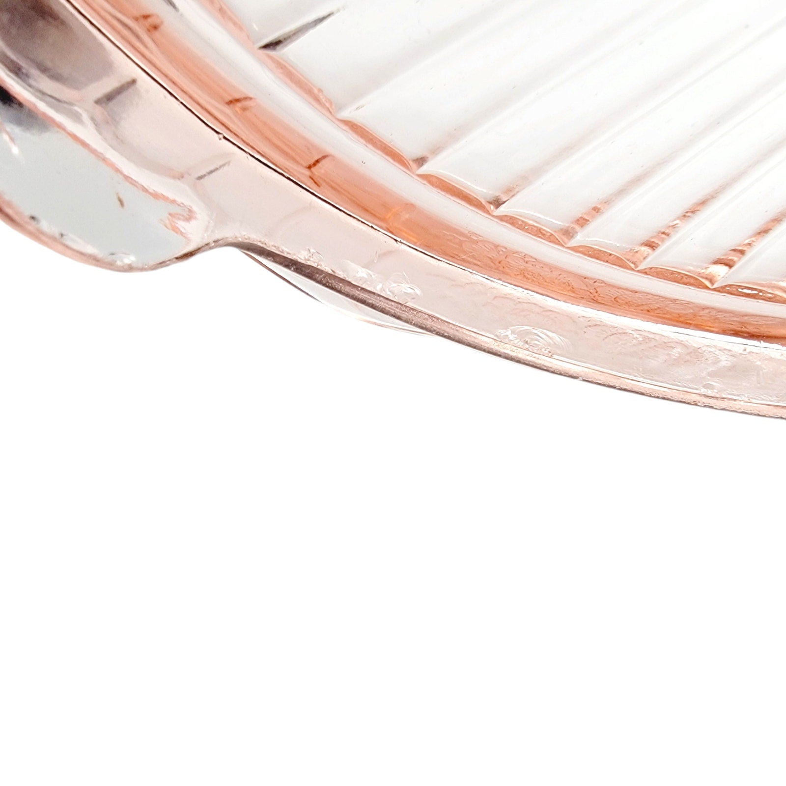 AS IS Vtg Pink Depression Glass Anchor Hocking Mayfair Open Rose Footed Cake Plate FLAW