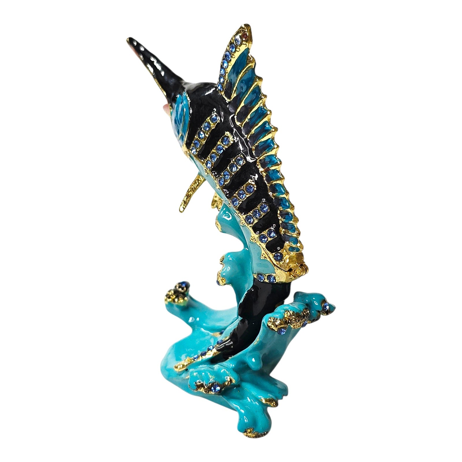 Design: A stunning leaping Marlin (Swordfish) figurine with a curved body that serves as a decorative trinket tray.