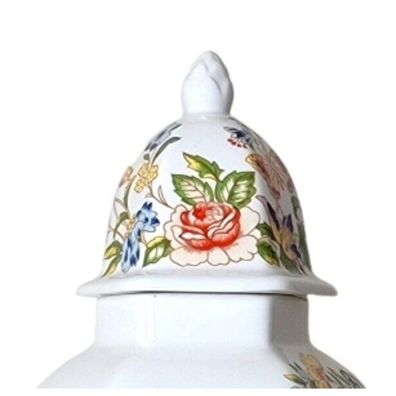 Made of bone china and measuring 9.5" with the lid, this vase is a great size for displaying flowers or as a standalone decorative piece. The vase features English garden flora and English garden themes, making it a perfect addition to any home decor.