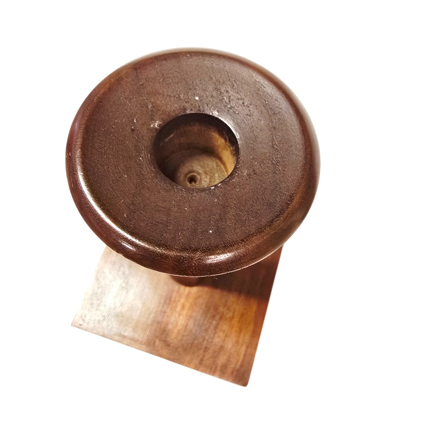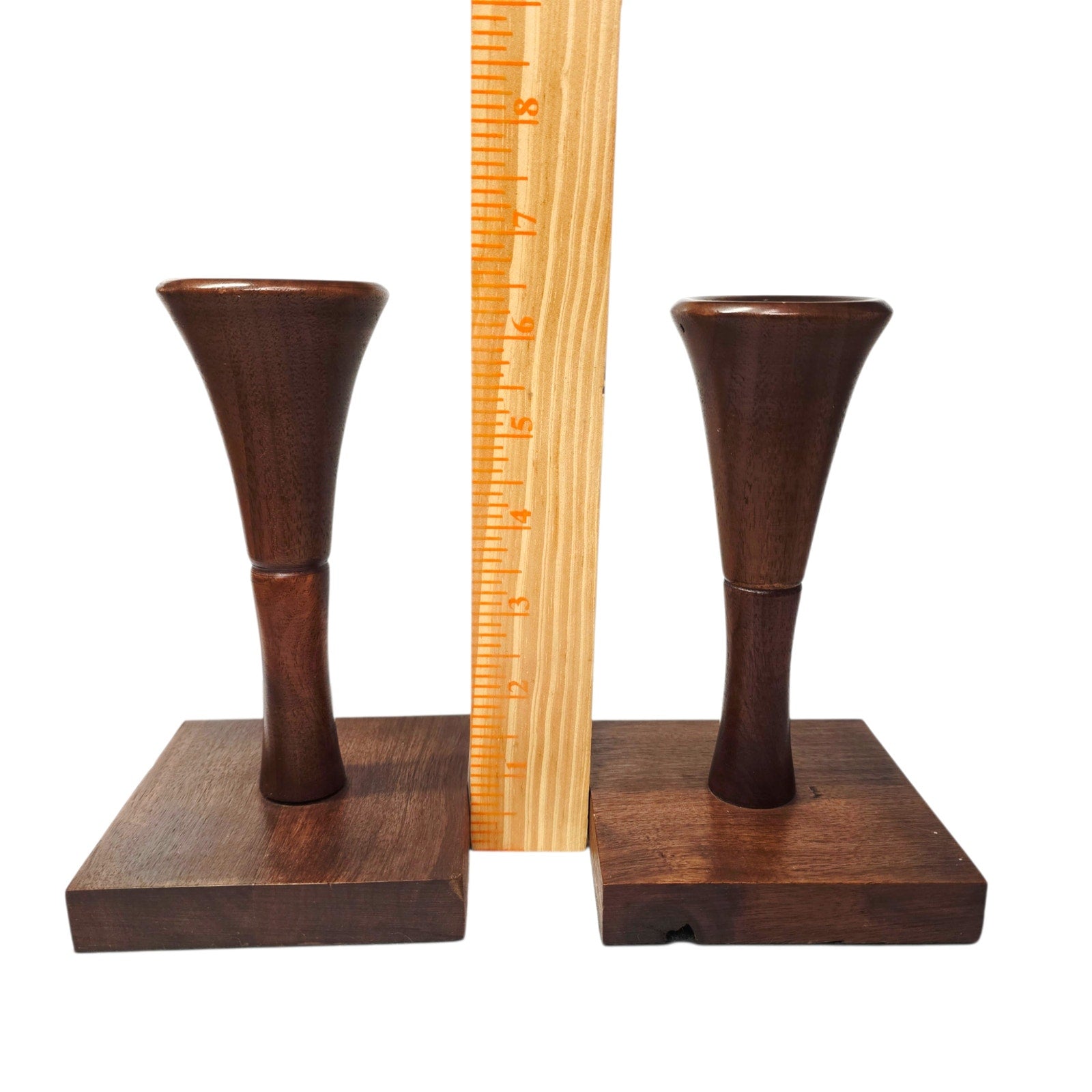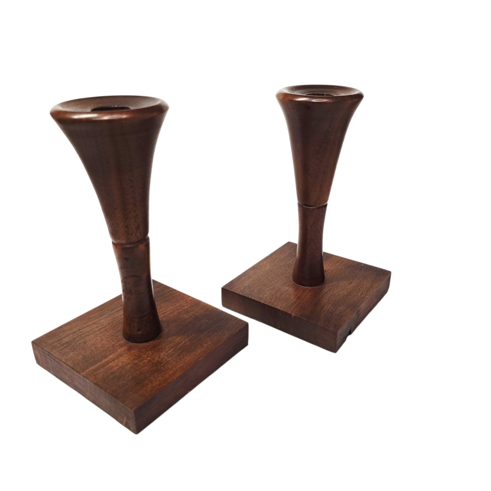 Danish Modern Style Teak Wood Candlestick Holders - Hand Turned Pedestal Pair