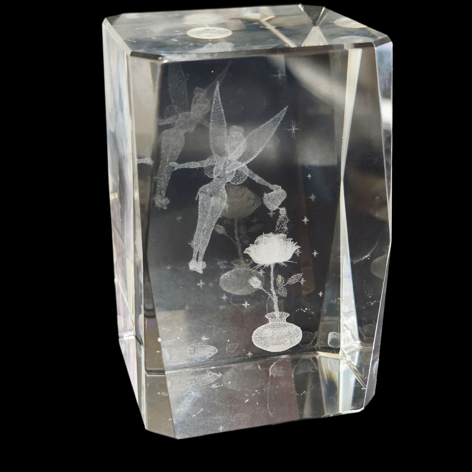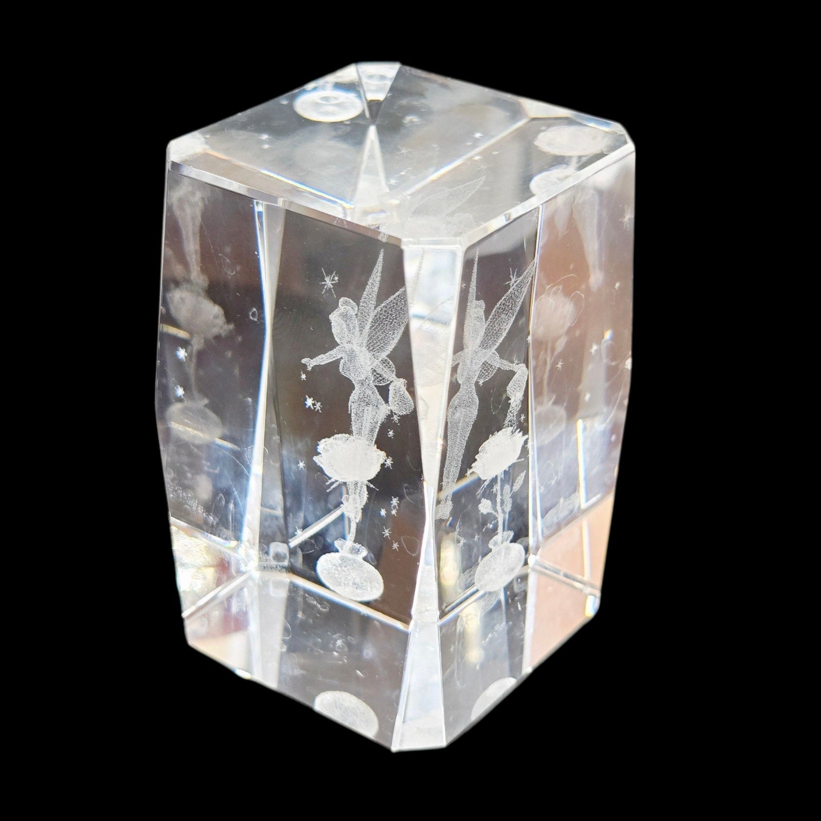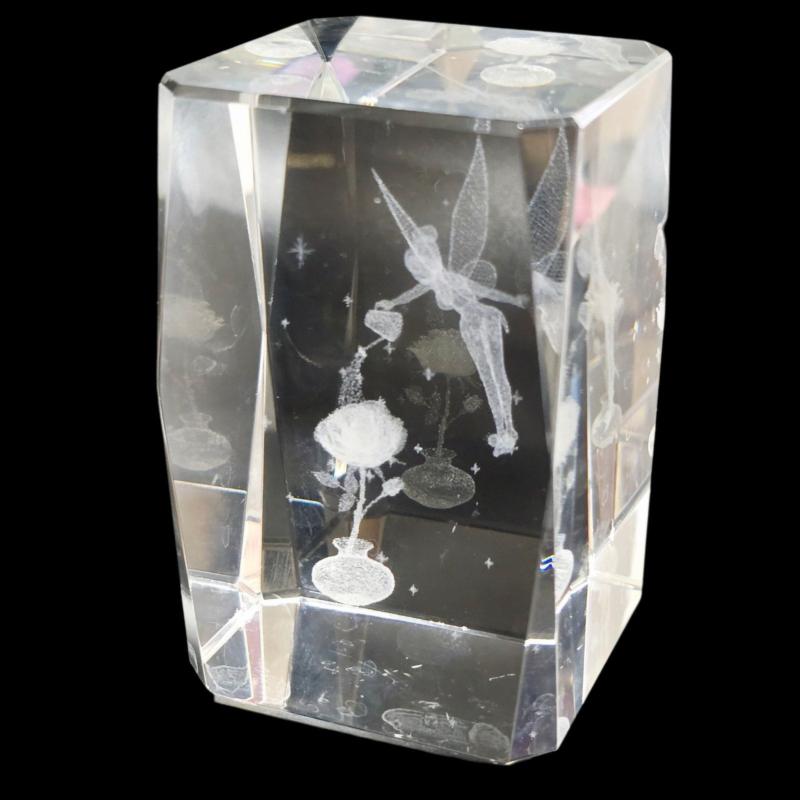 Disney Tinkerbell 3D Crystal Glass Cube Paperweight, Watering Flower Water Can