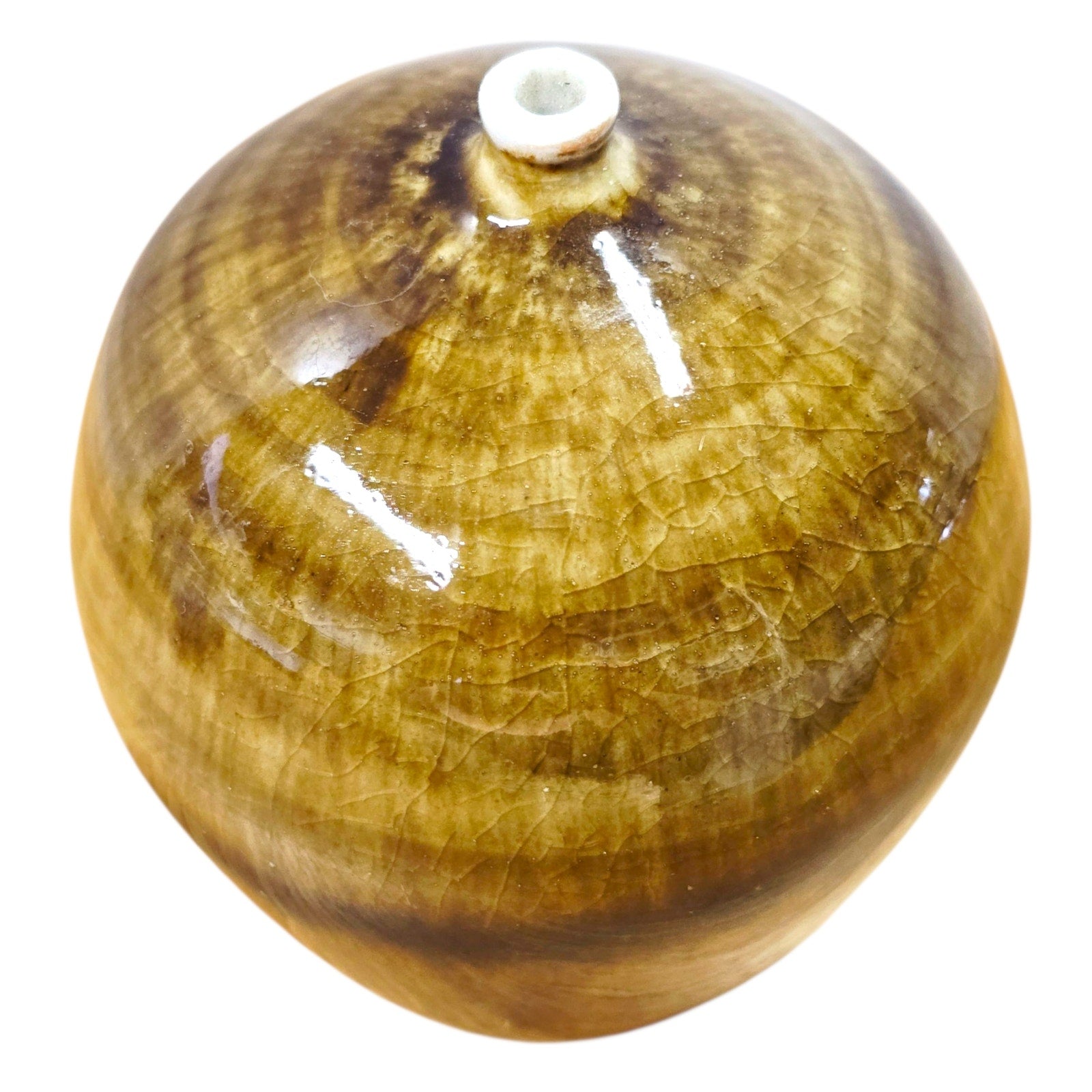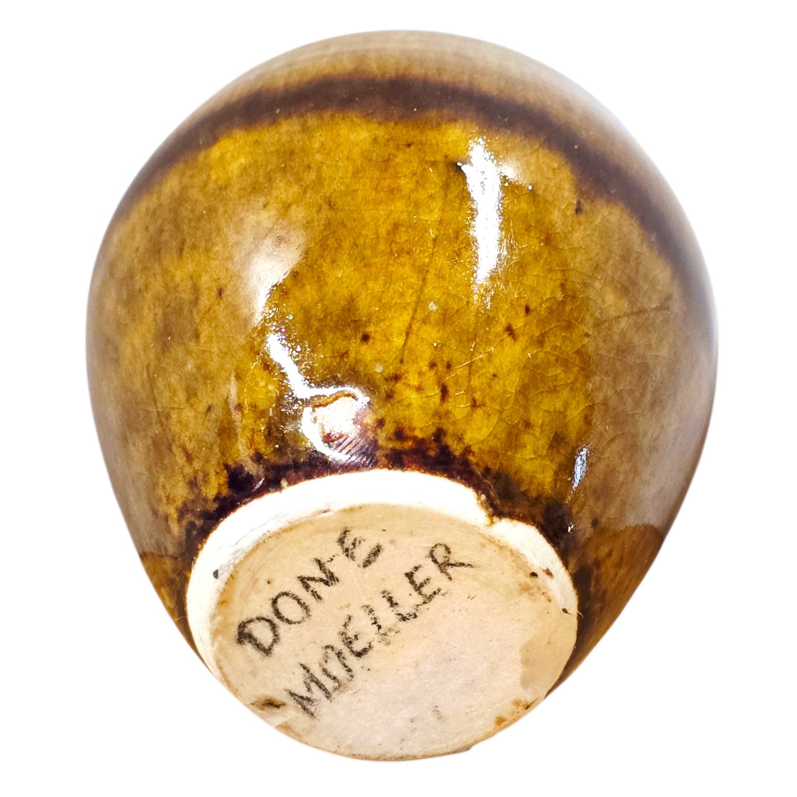 Handmade studio pottery bud vase by Don E Moeller. Measures approx. 3.5"H x 2.75"W. Features a rich brown drip glaze with natural crackle finish. Signed on the base “Don E Moeller.” A collectible artisan vase for rustic, boho, or mid-century décor.