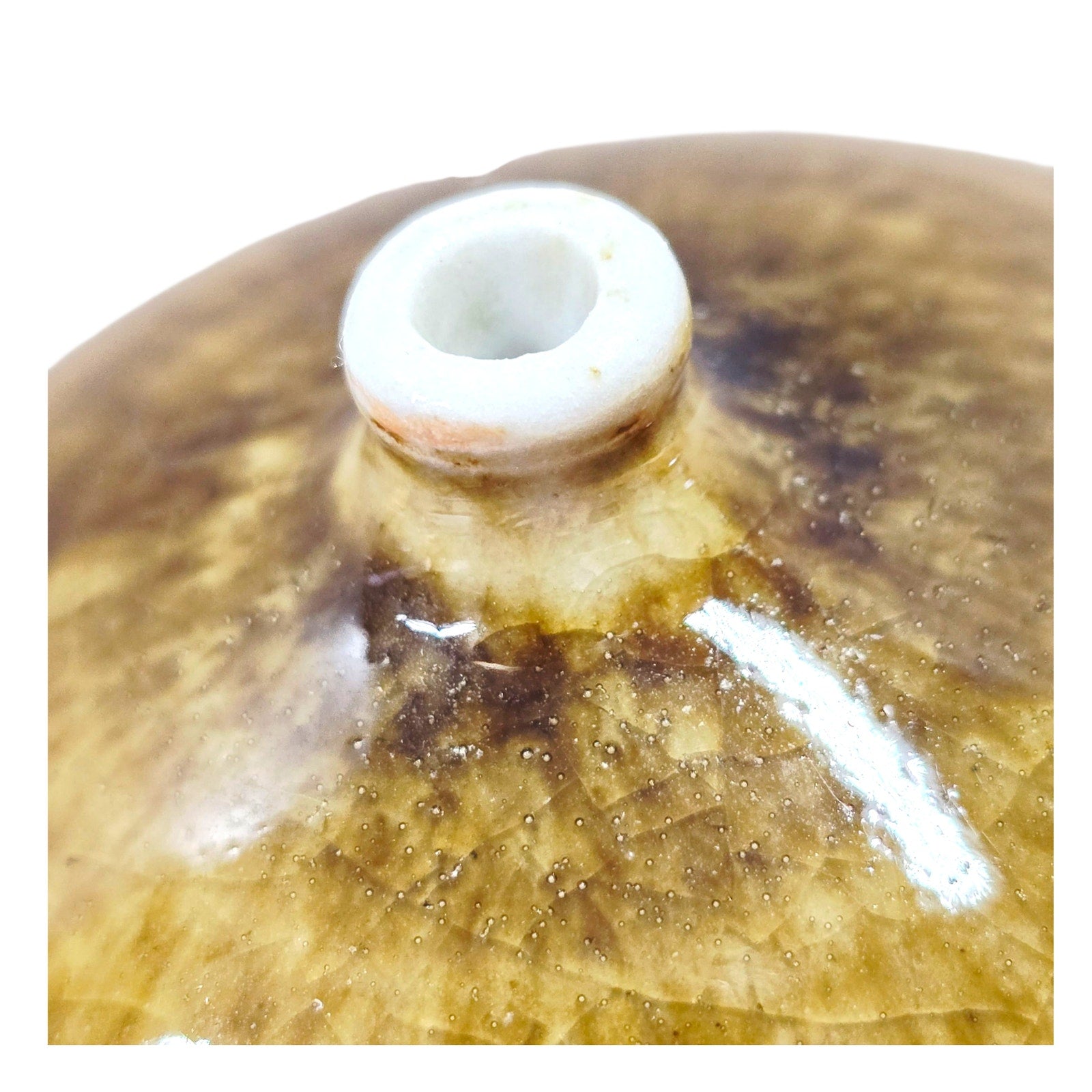 Don E Moeller Studio Pottery Bud Vase Brown Drip Glaze Crackle Finish Signed