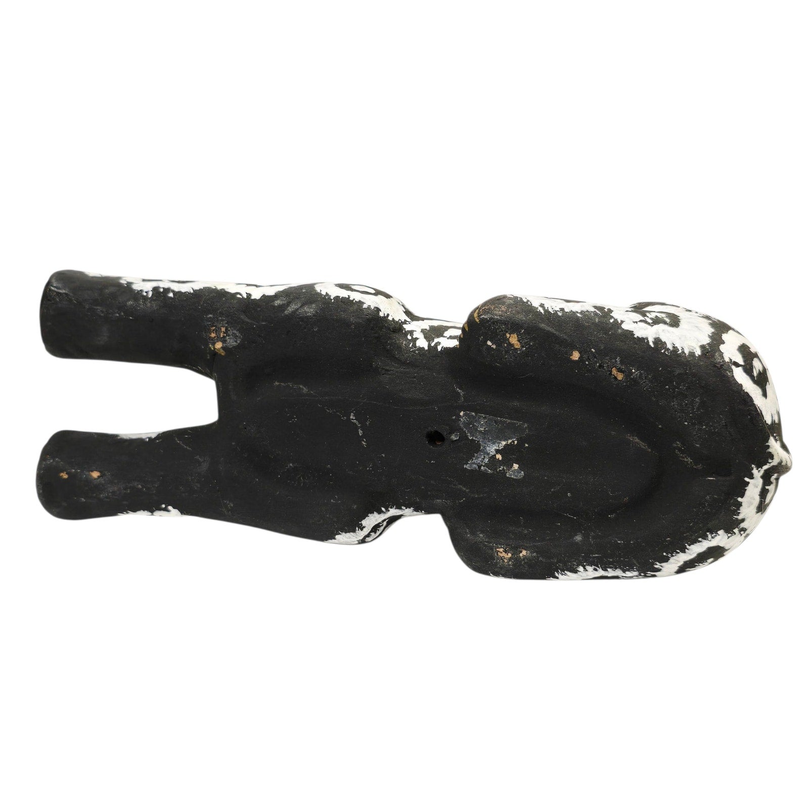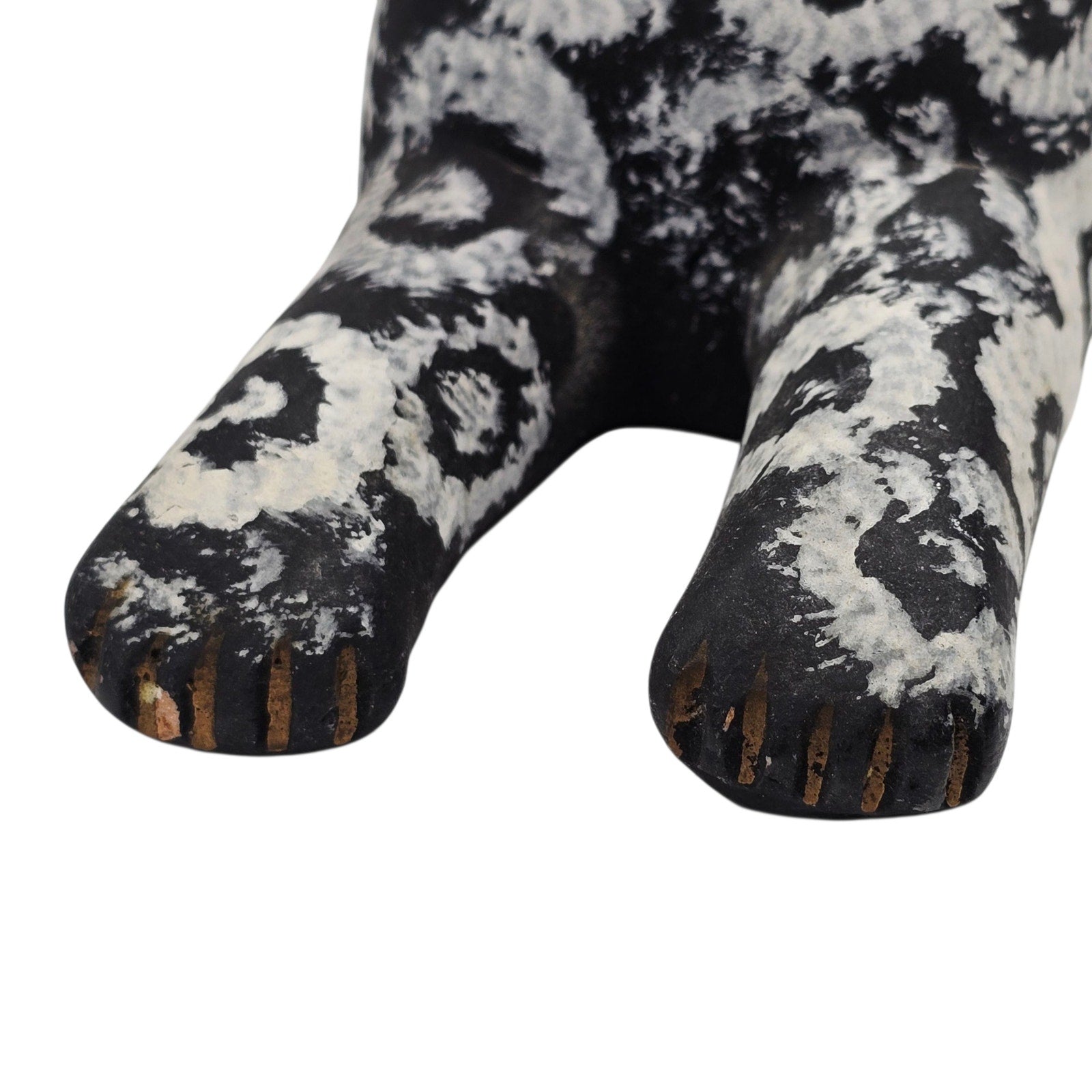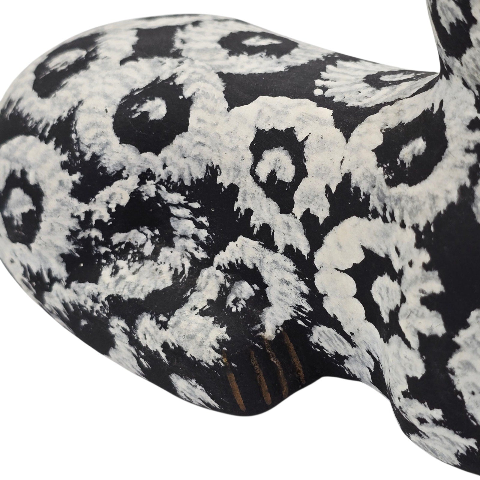 Folk Art Black White Kitsch Cat Figurine Hand Painted Clay Pottery Animal Decor