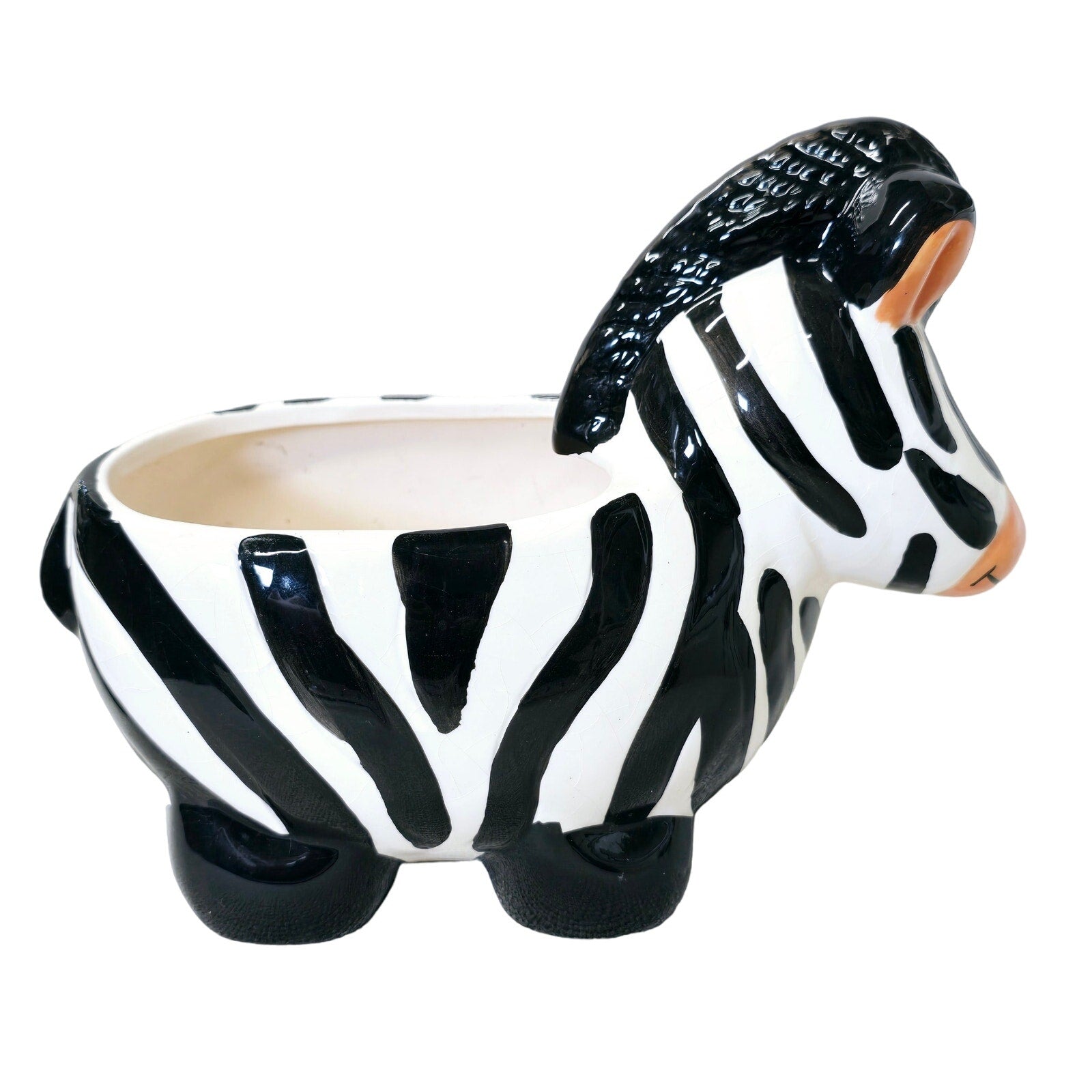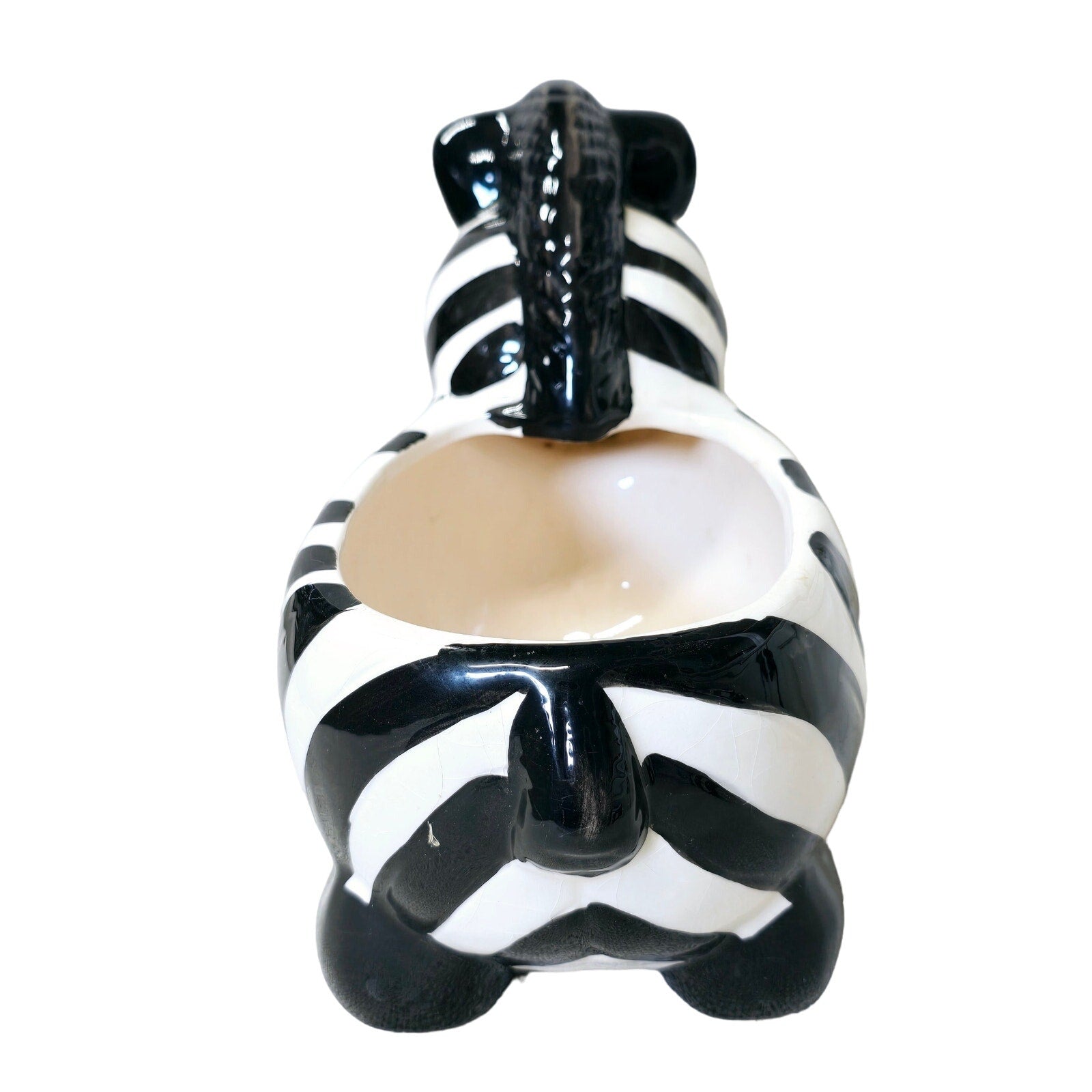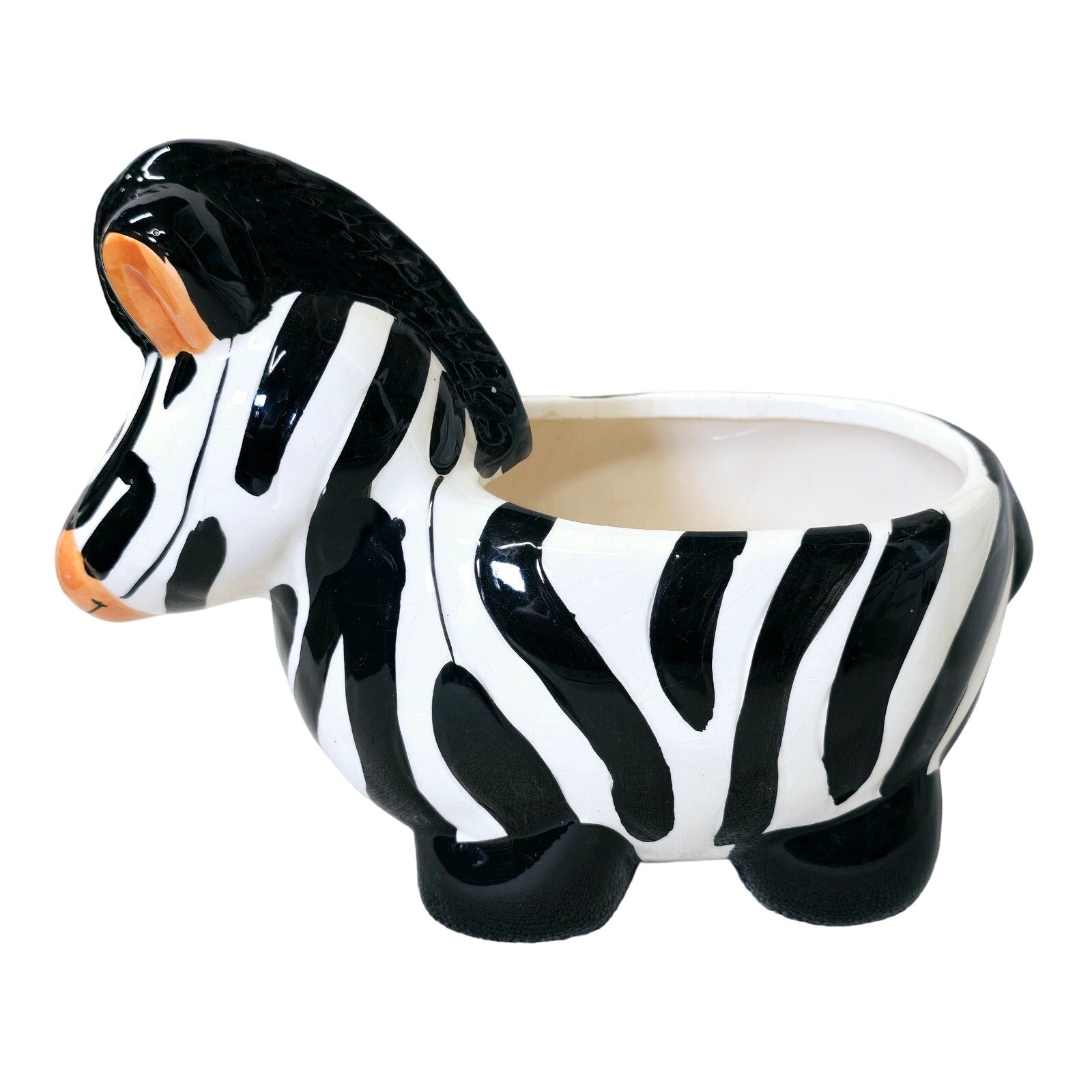 Fun Whimsical Ceramic Zebra Planter, Crazed
