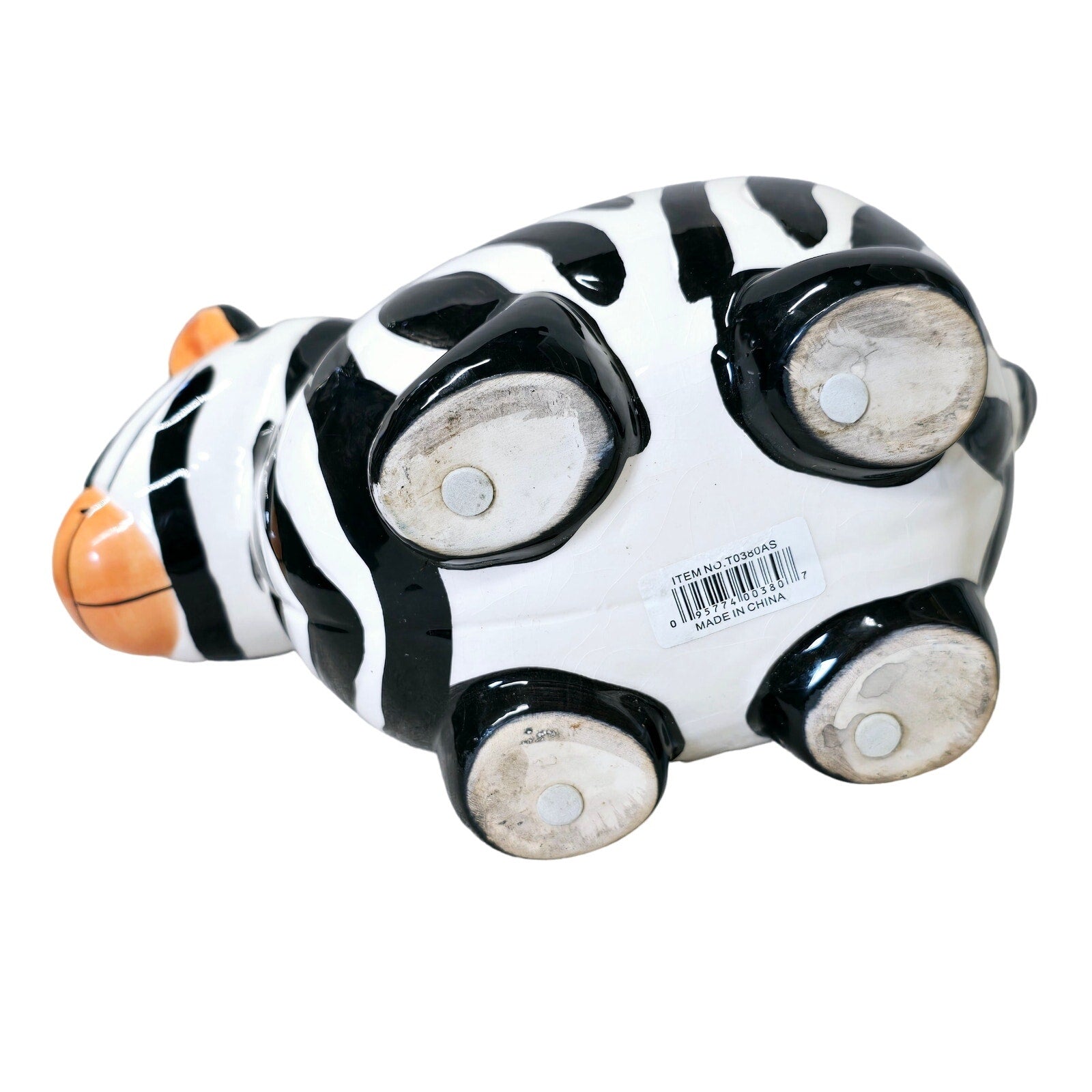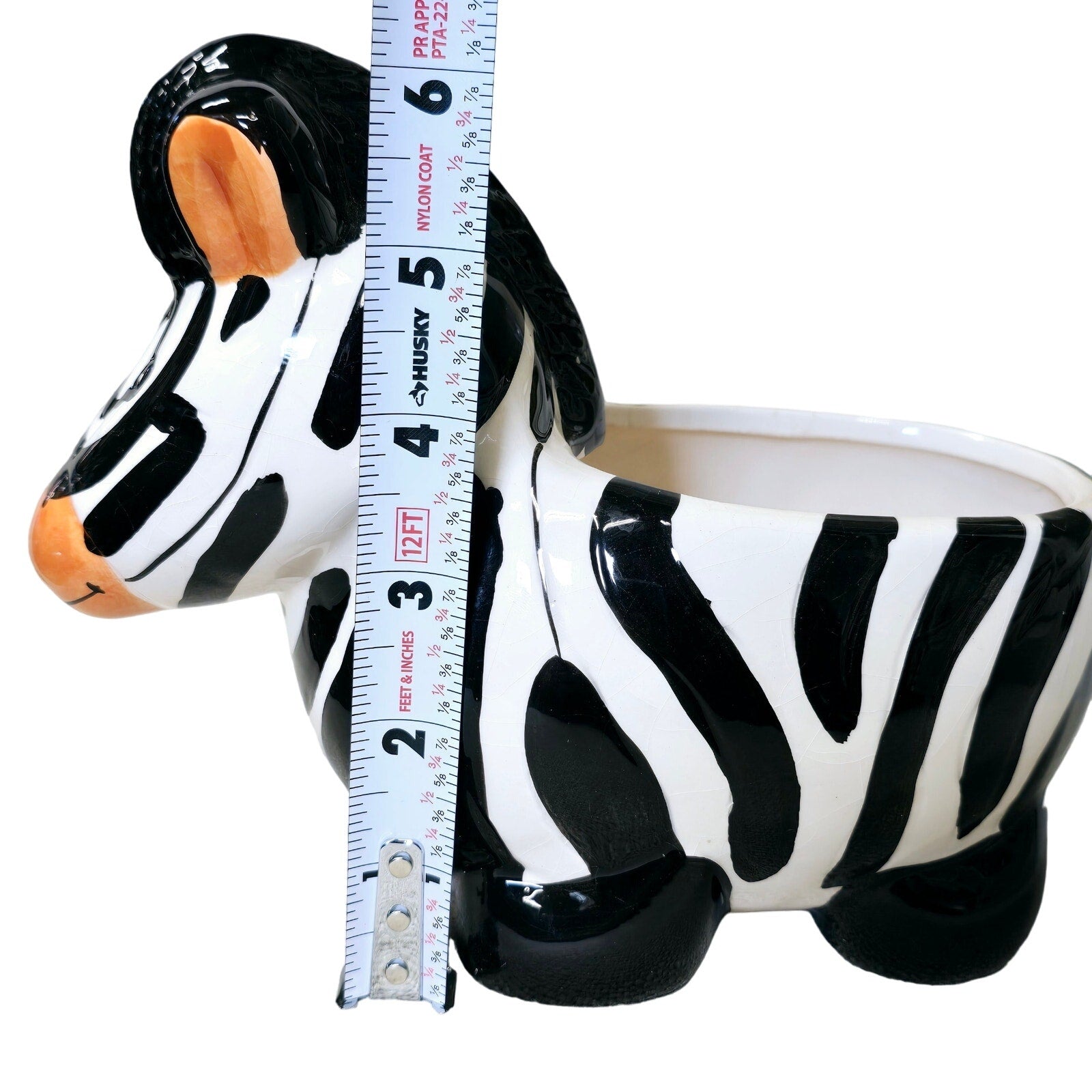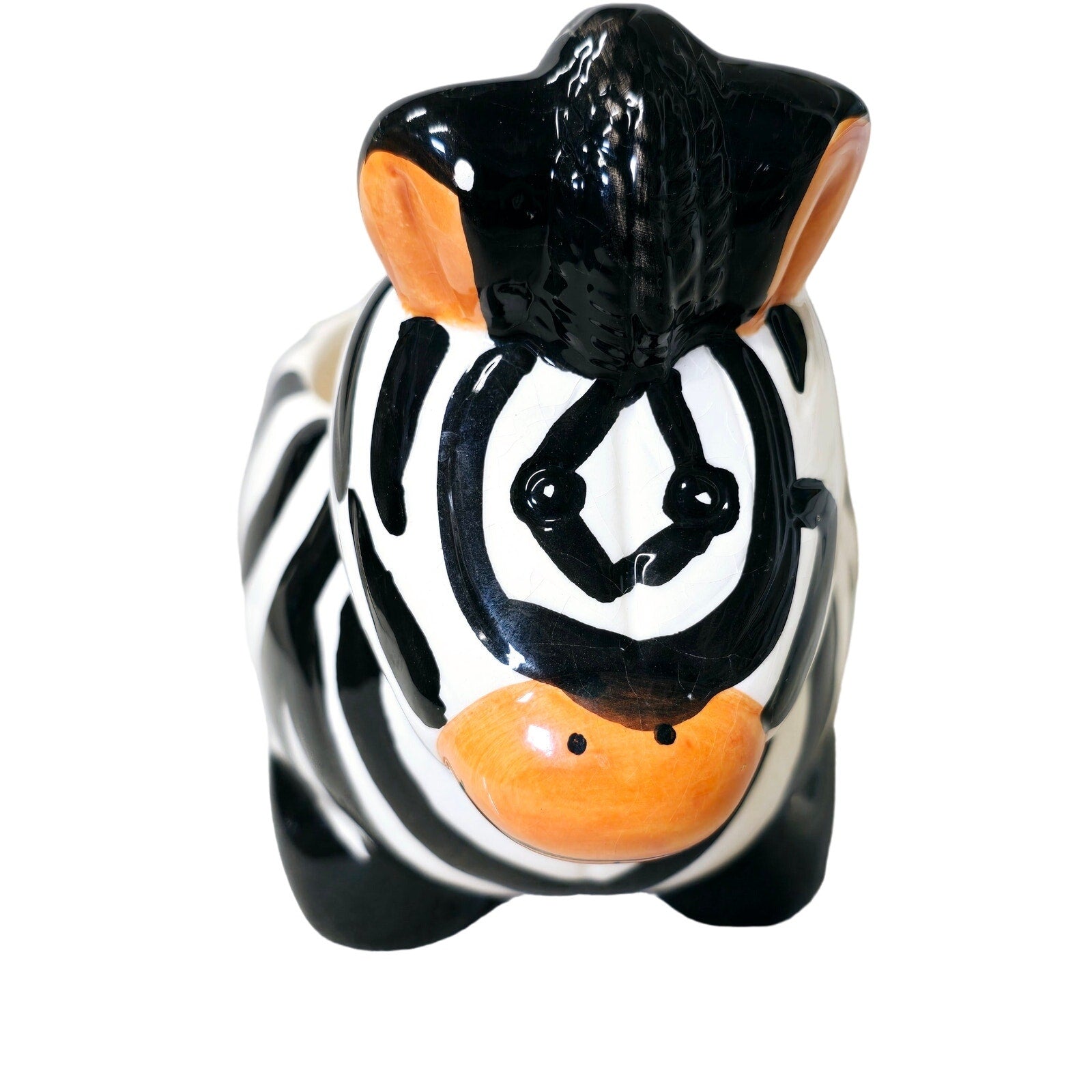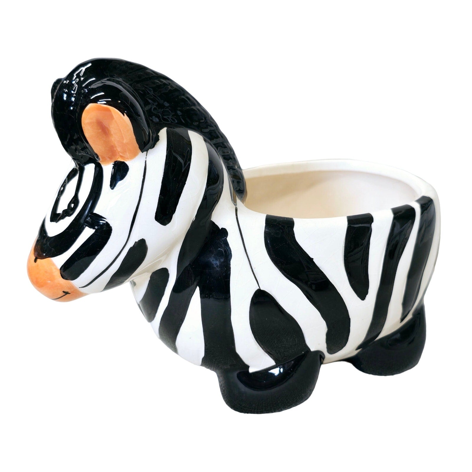 Fun Whimsical Ceramic Zebra Planter, Crazed