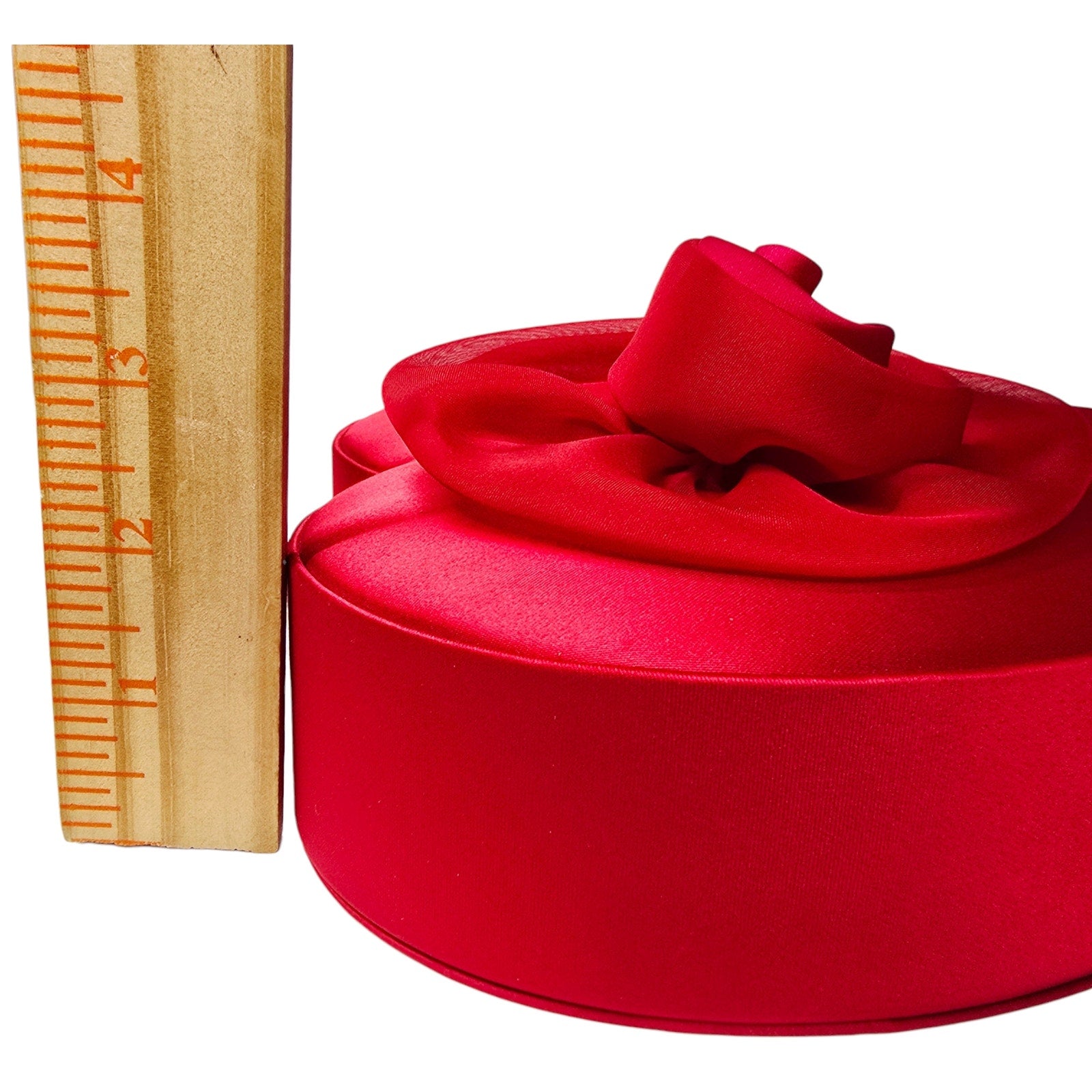 This is a beautiful, vintage-style empty Godiva keepsake box, perfect for Valentine's Day decor, romantic gift packaging, or as a luxury trinket box. It features a rich crimson satin fabric covering with an elegant 3D satin rose accent on the lid.