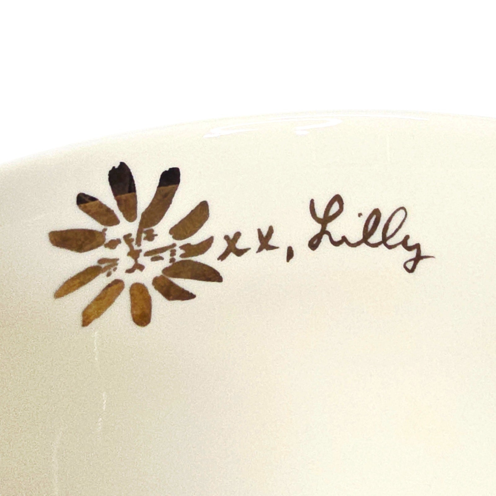 Hidden Details: Look for the signature "xx, Lilly" script on the inside rim and the "hidden" animals (lions or cats) within the floral print.