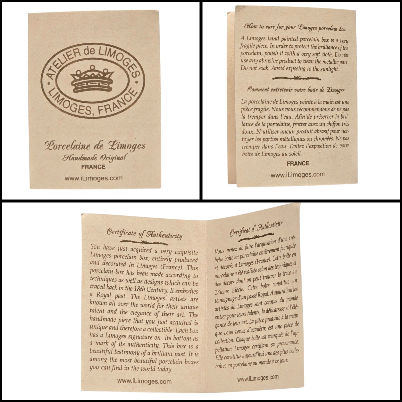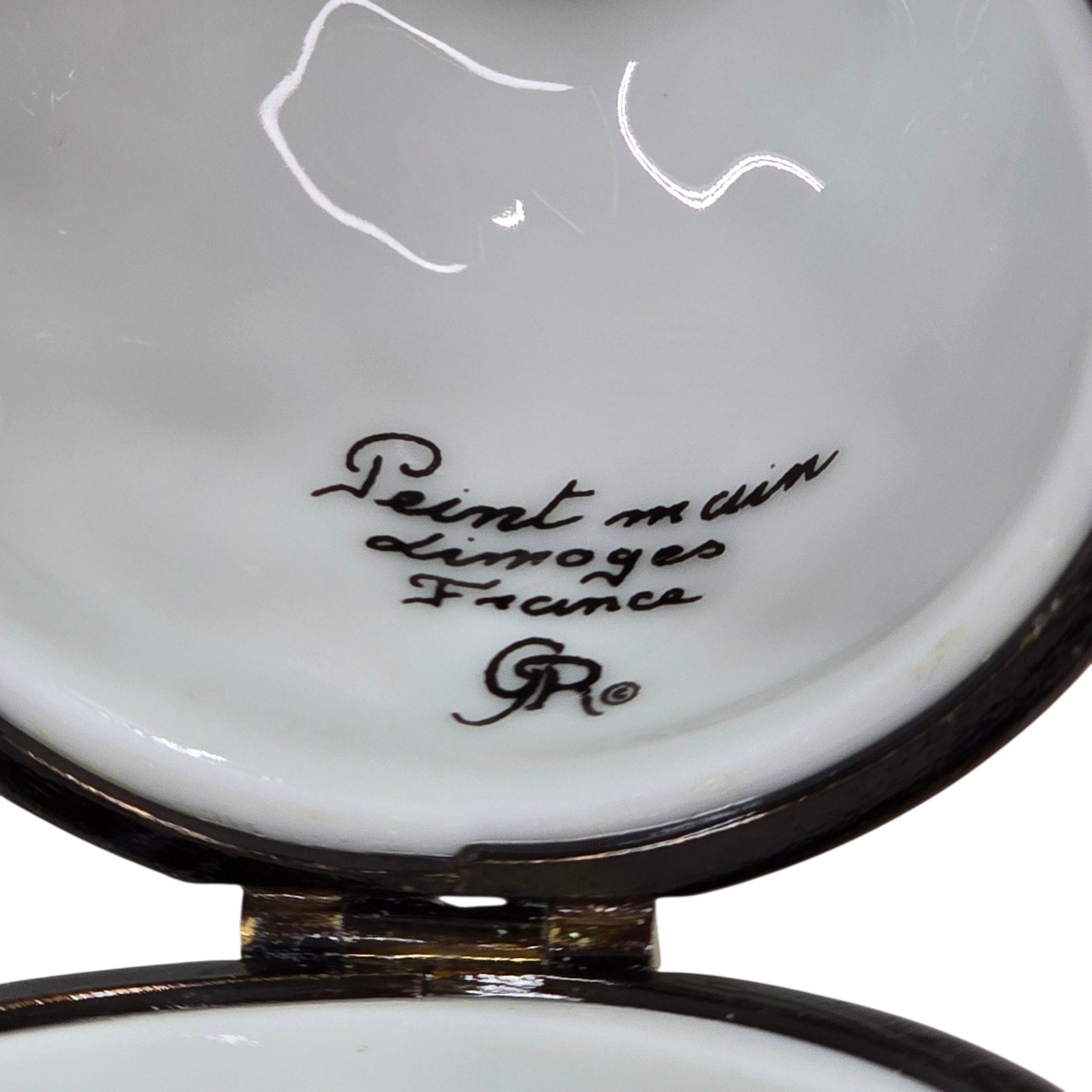 From the estate of a high-end Limoges collector. No chips, cracks, or repairs. The asparagus clasp shows light natural patina; presentation box is structurally solid with exterior discoloration and smudging; interior clean.