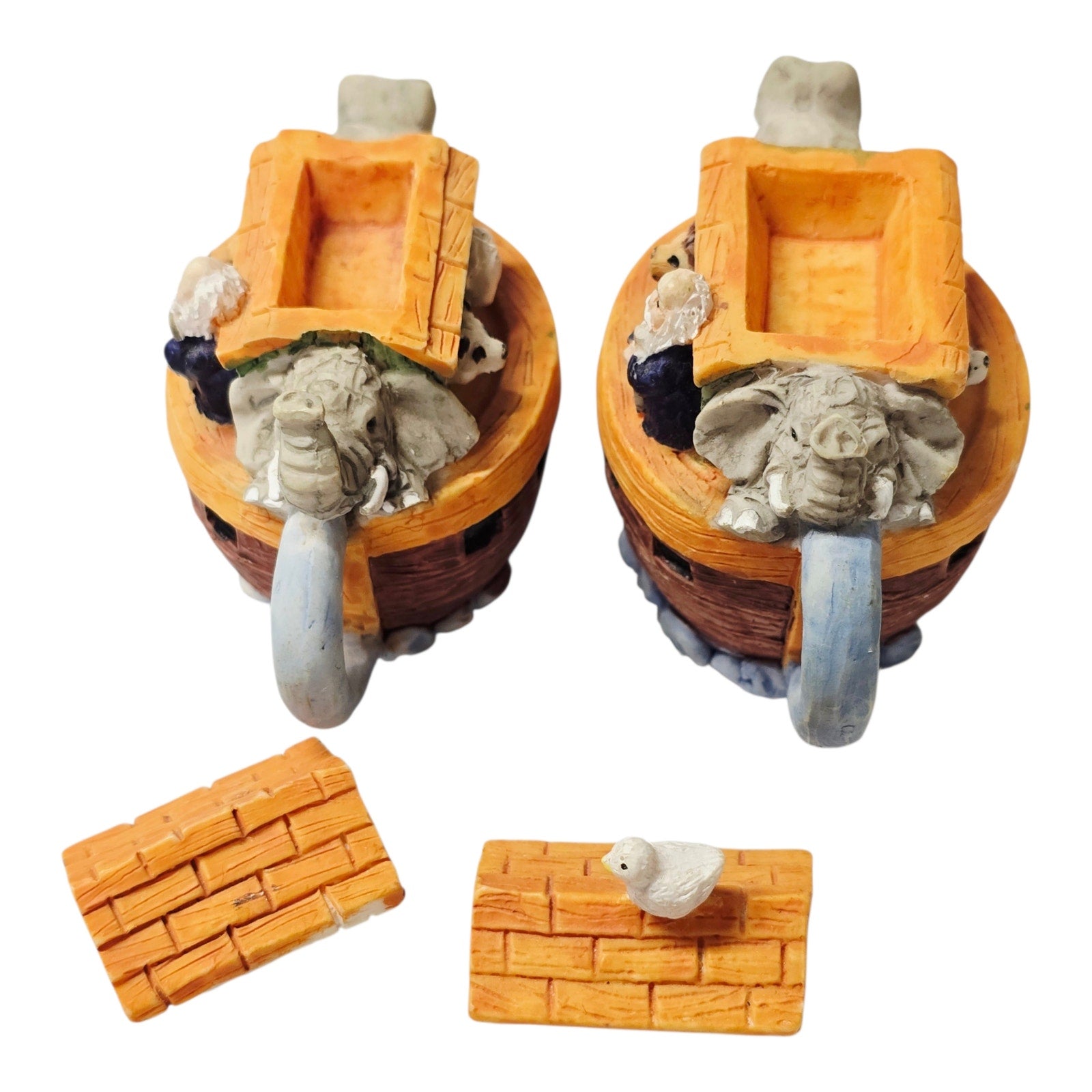 Miniature Ceramic Noah's Ark Tea Set 6pc Hand-painted Animals 2 Teapots Figurine