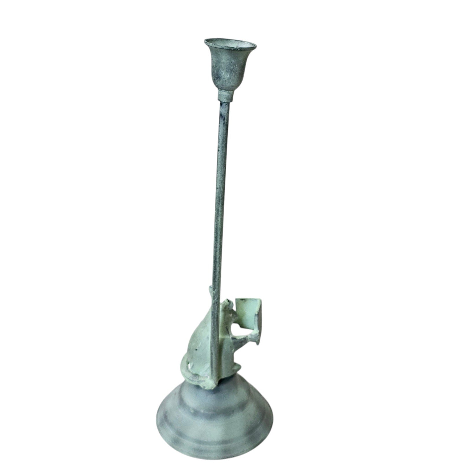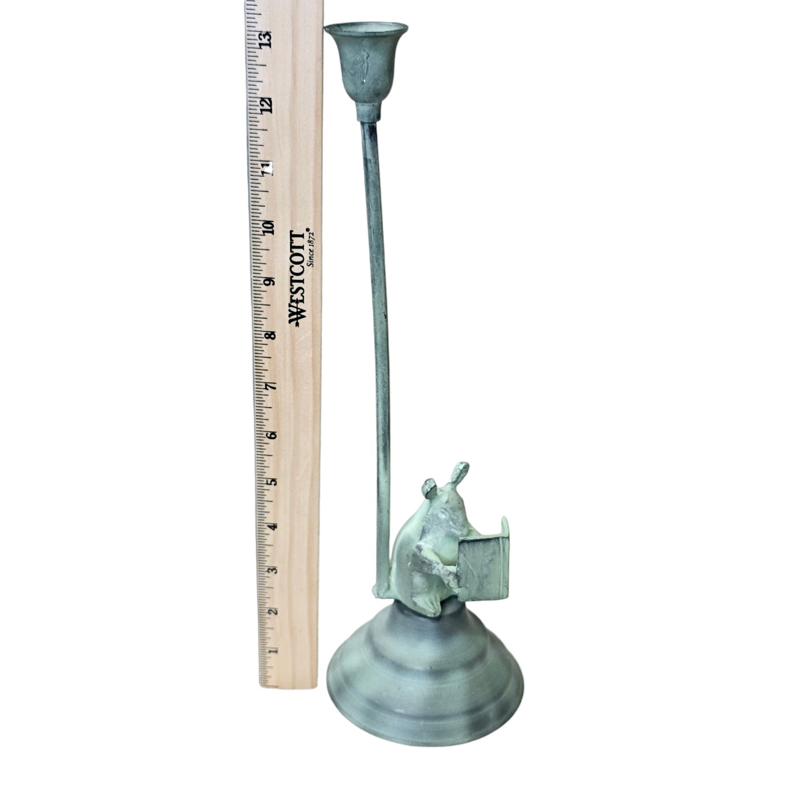 Mouse Reading a Book by Candlelight Vintage Solid Brass or Copper Candlestick