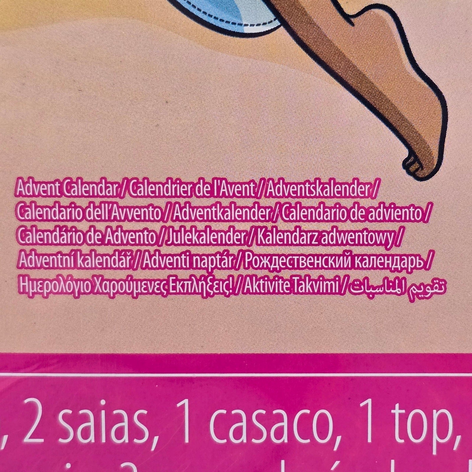 Barbie 24-Day Advent Calendar from 2020 featuring a Barbie doll and 24 surprise accessories. Includes clothing pieces, shoes, bags, and small themed items. Box is sealed and ready for gifting. Great for collectors or holiday play.