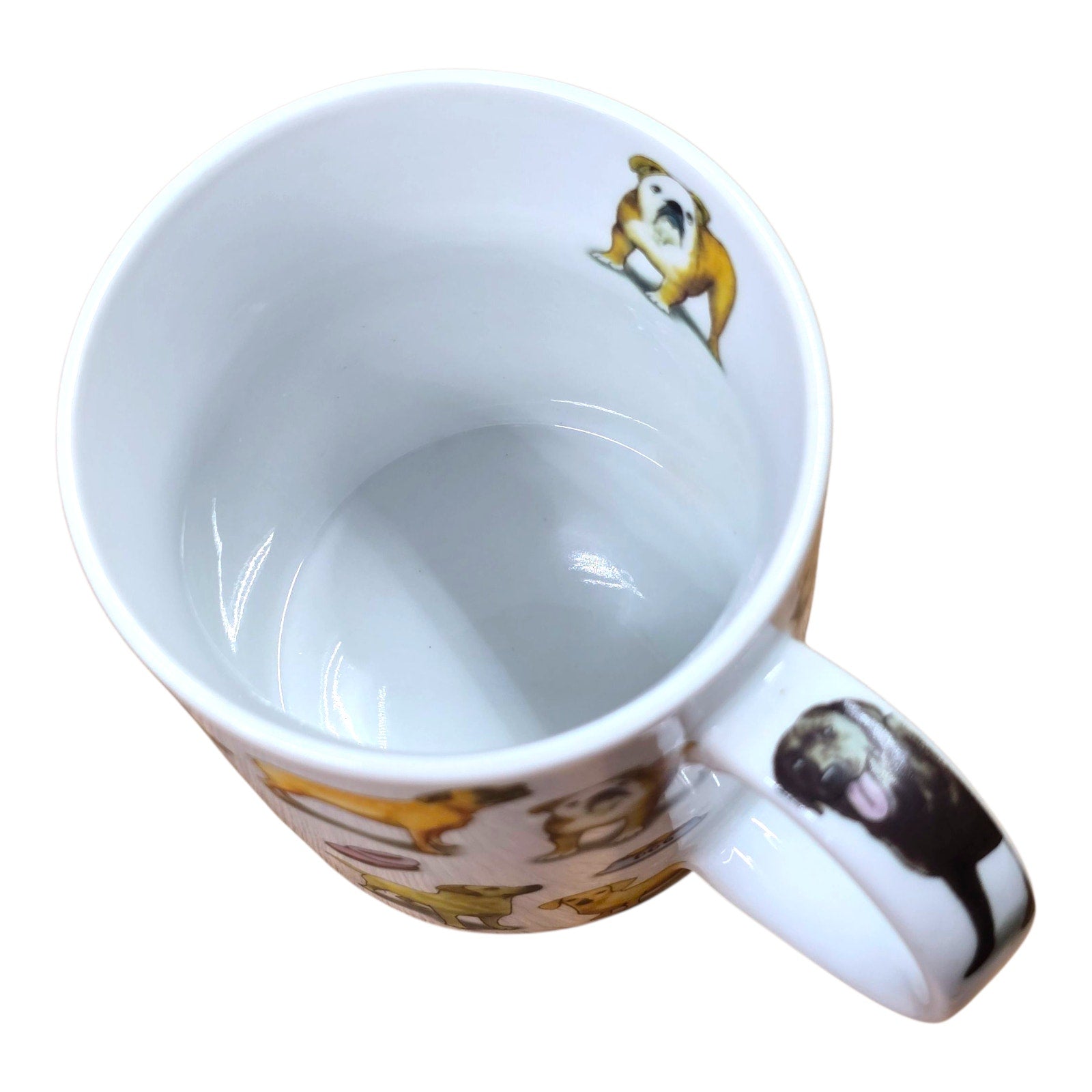 Paul Cardew ceramic mug featuring “Man’s Best Friend” dog breed illustrations. Designed in England, 2010, with colorful dog graphics and playful accents inside and on the handle. Great for collectors or dog lovers.