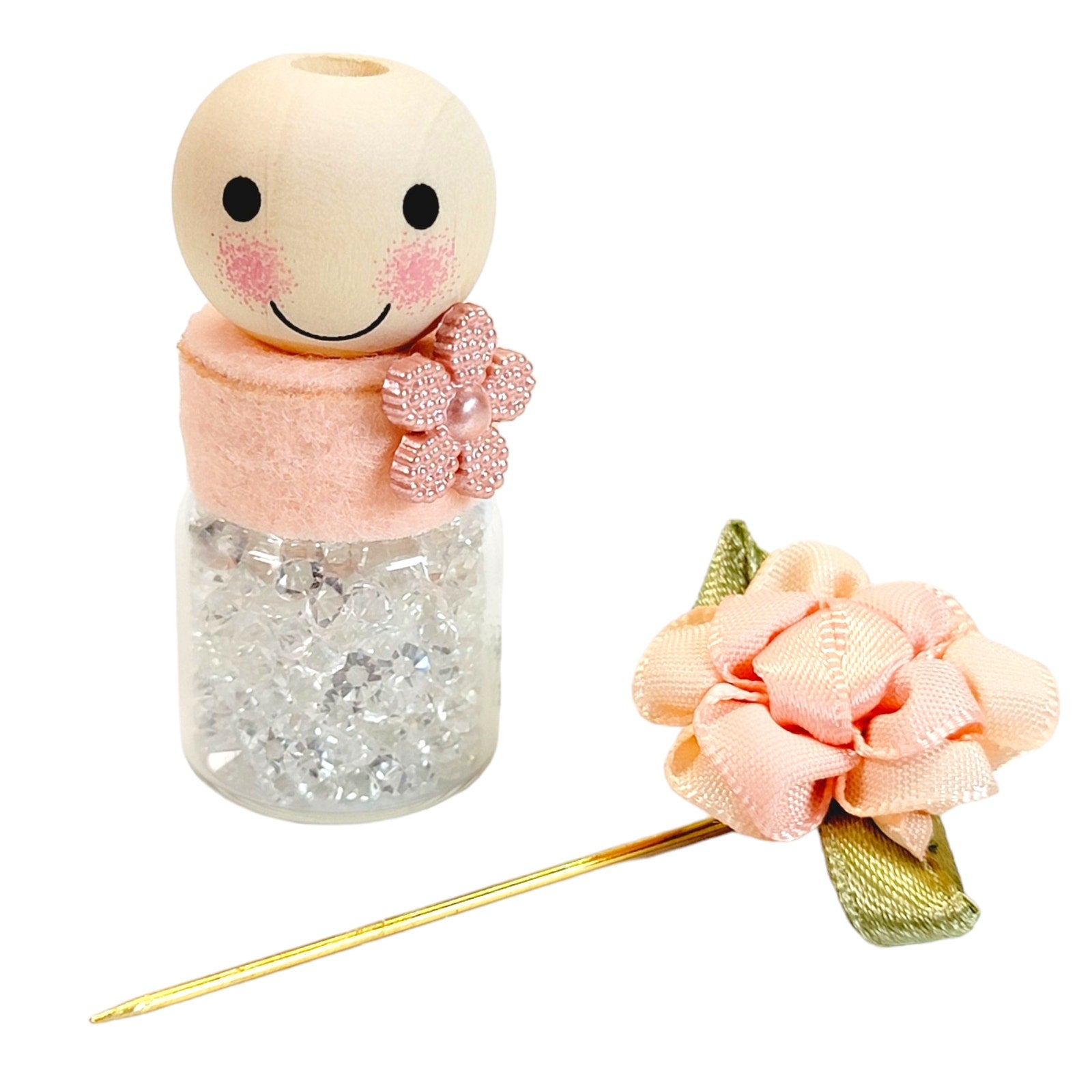 Peach Flower Sparkly Single Hat Pin Holder