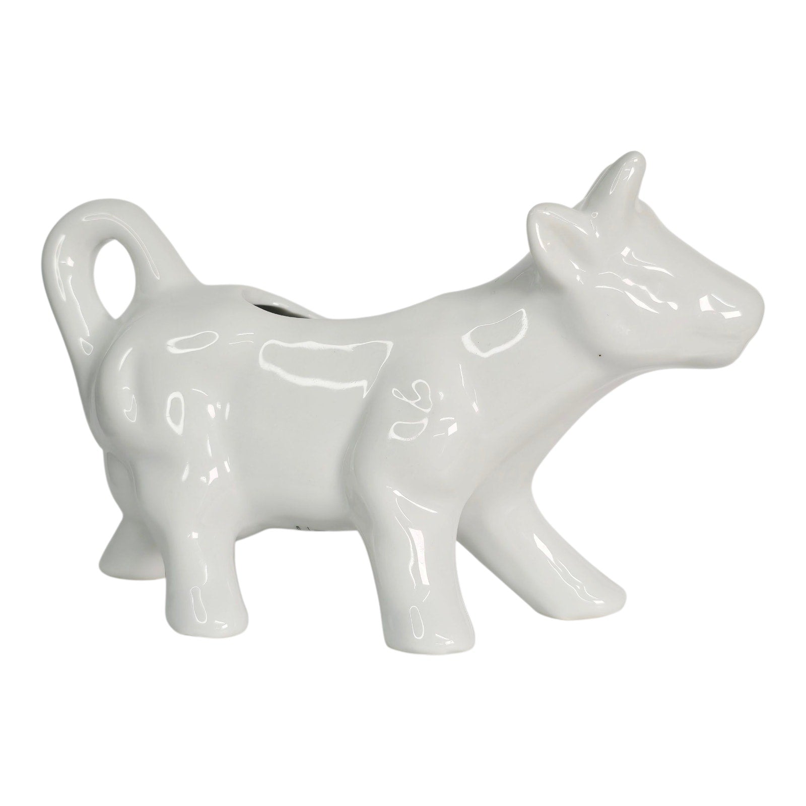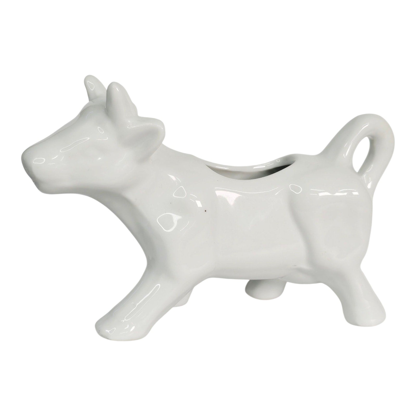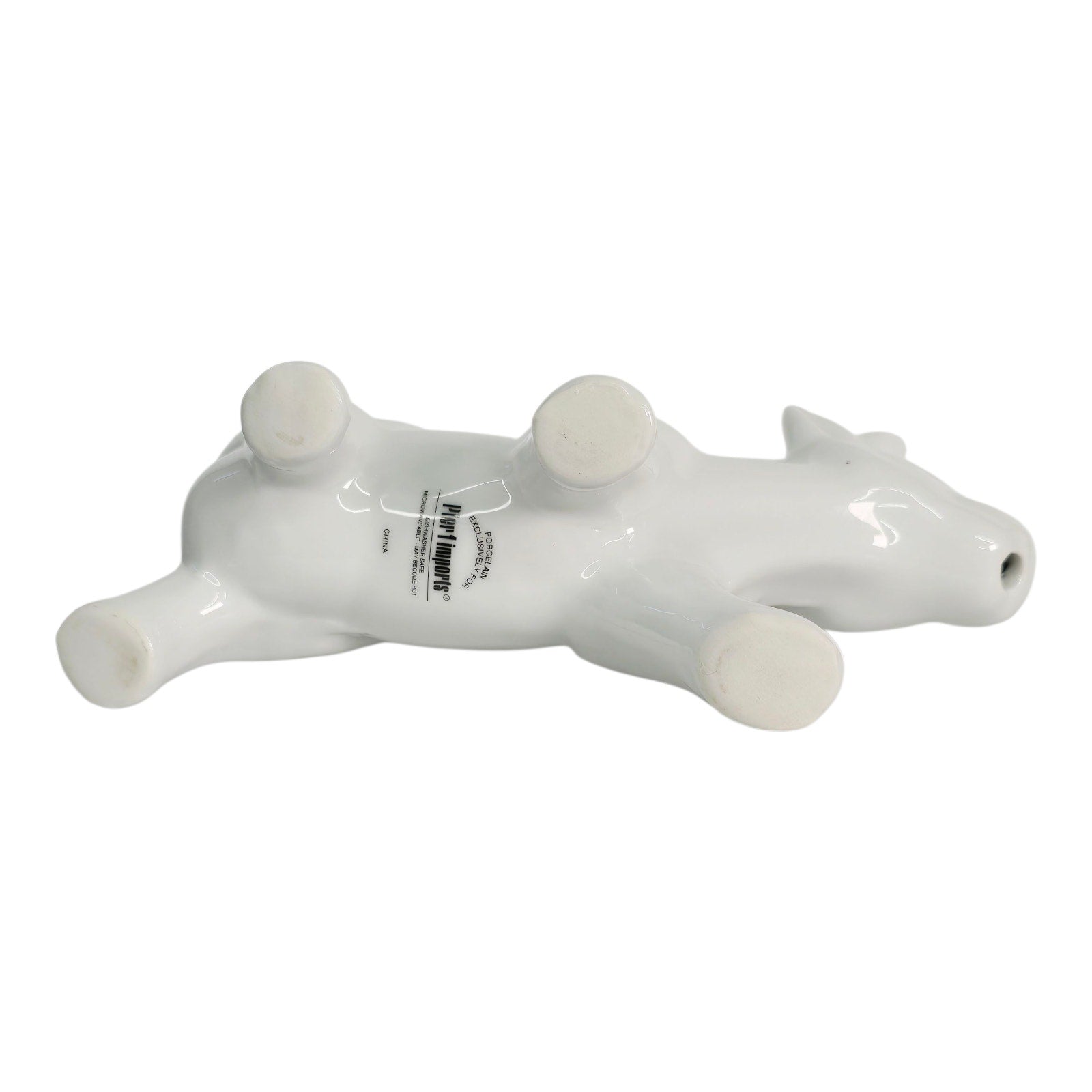 Add a touch of whimsy to your table with this charming Pier 1 cow creamer! Made of white ceramic, this adorable creamer is both dishwasher safe and very clean. It measures 6.75" in length and 4" in height, making it the perfect size for your morning coffee or tea. Don't miss out on this delightful piece!