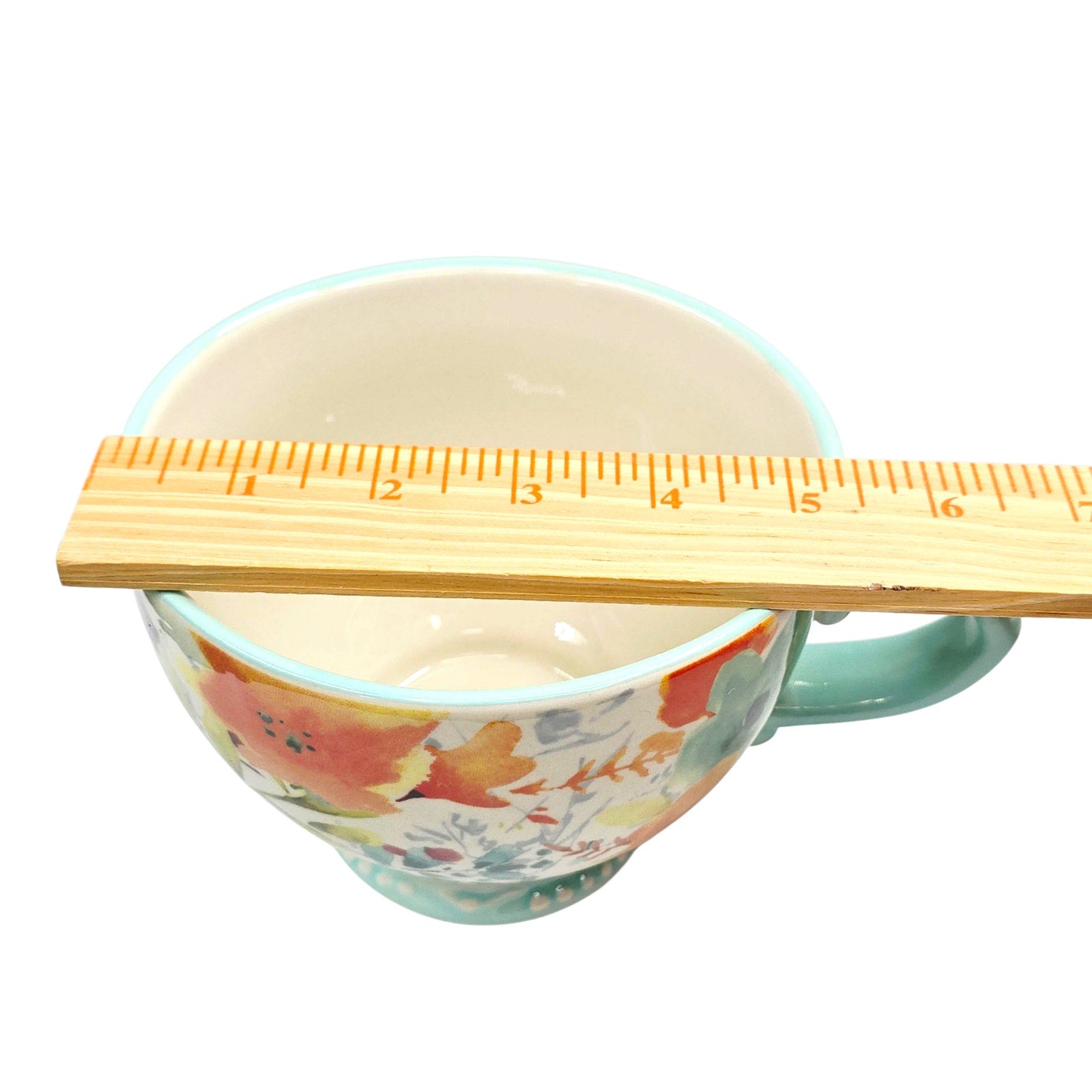 Pioneer Woman Willow 27oz Ceramic Cup Mug Floral Mint Handle Farmhouse Kitchen
