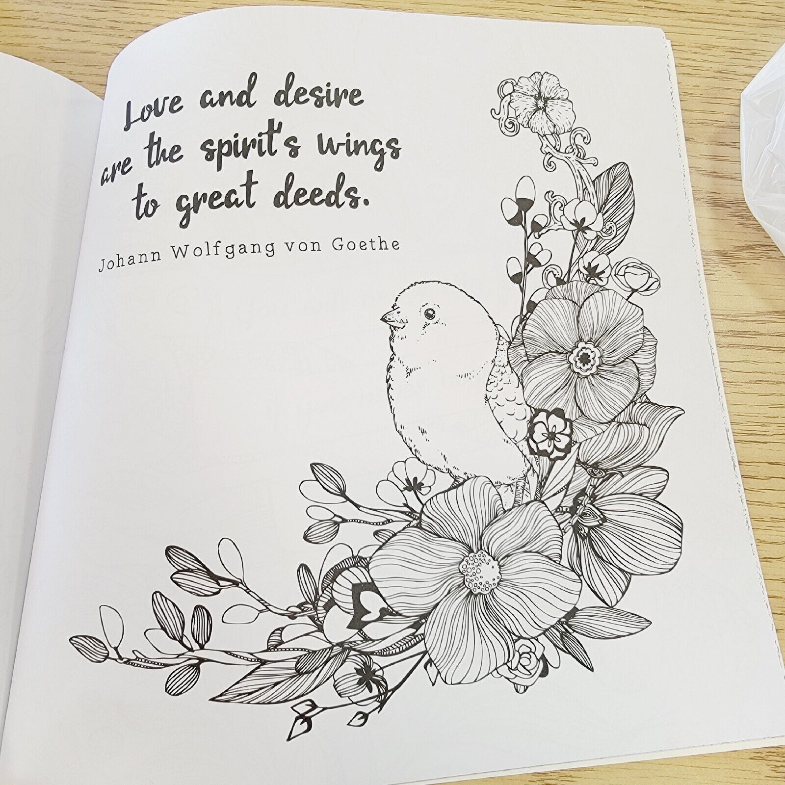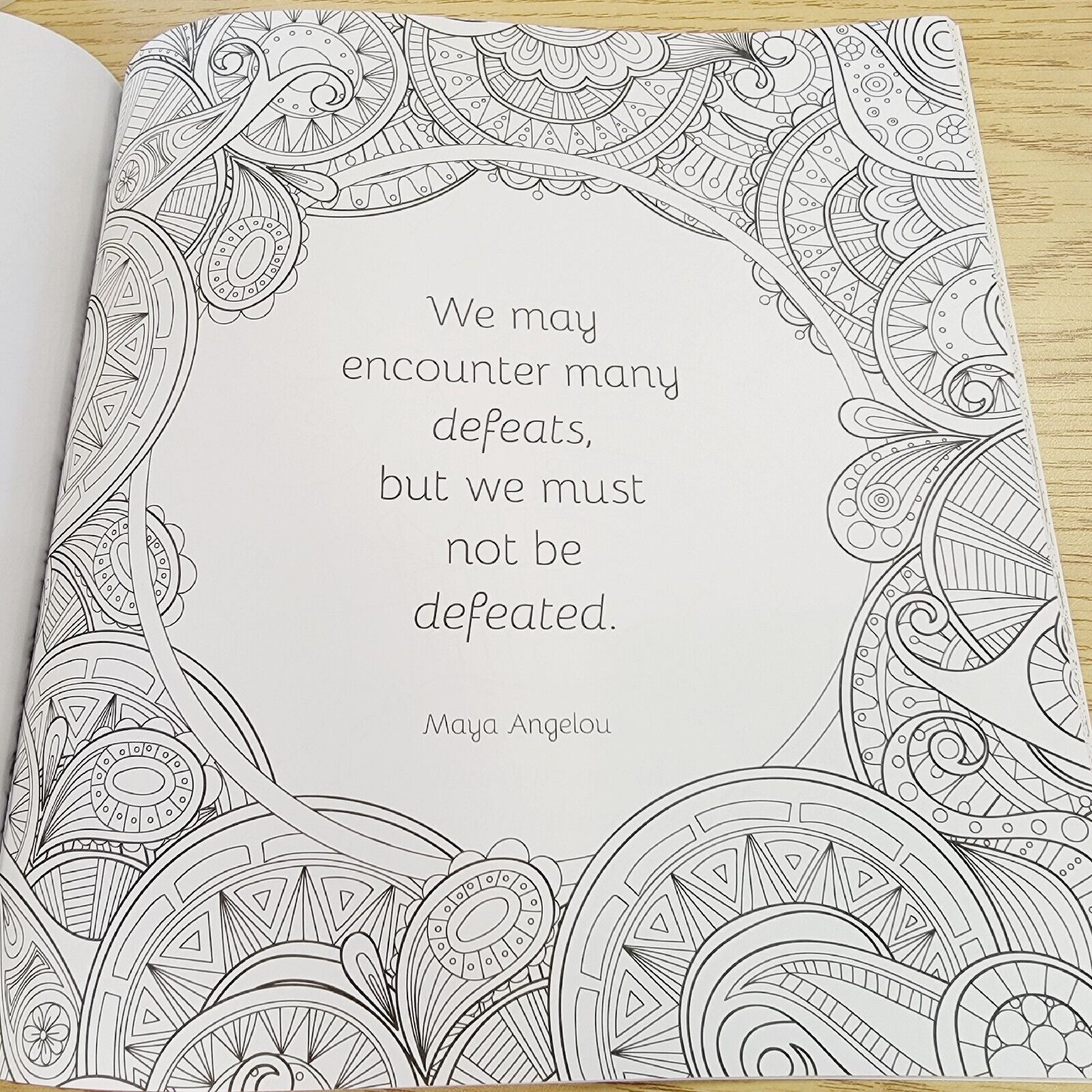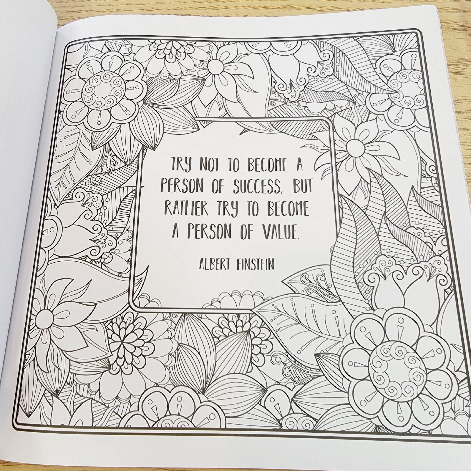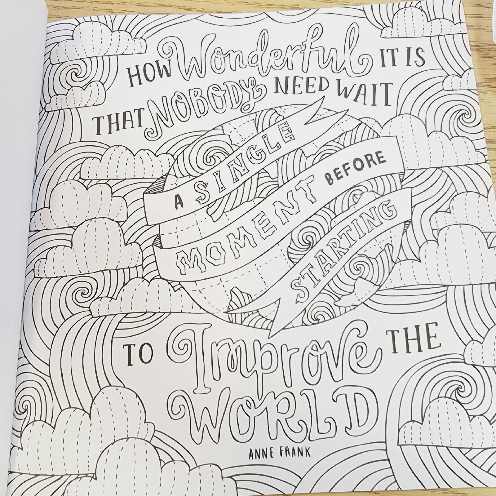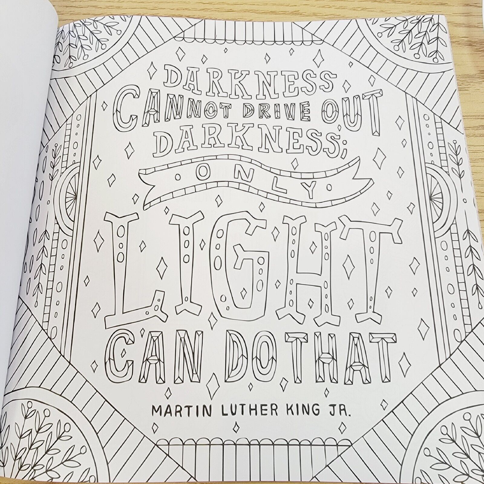 "This stunning collection of uplifting quotations is the perfect antidote to the drudgery of everyday life. Every page contains a pearl of wisdom from such. Inspirations as Martin Luther King, Jr., Anne Frank, and Audrey Hepburn, beautifully illustrated with intricate line drawings just waiting to be colored in, and brought to life."