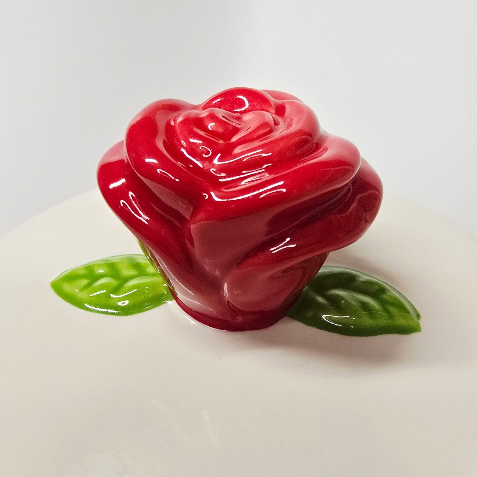 The Crown Jewel: Features a stunning, red 3D Enchanted Rose sculptural finial on the lid.