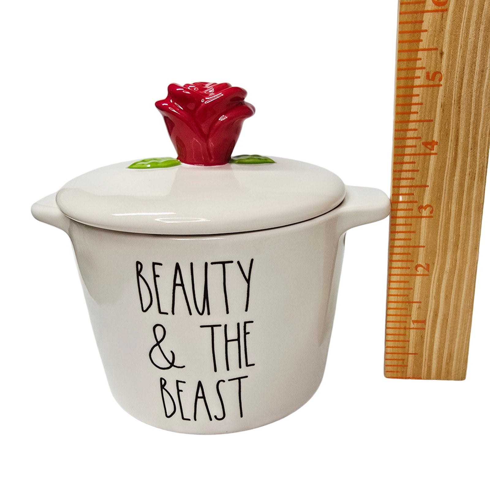 Rae Dunn Disney Princess BEAUTY & THE BEAST Ceramic Jar w/ Rose Lid