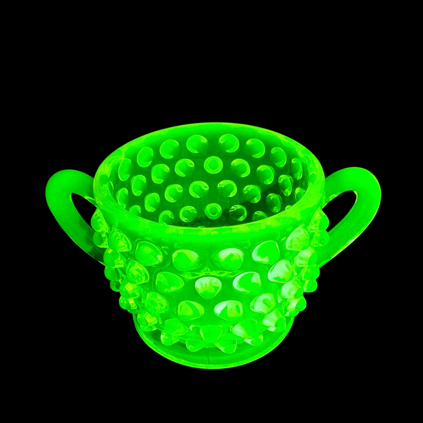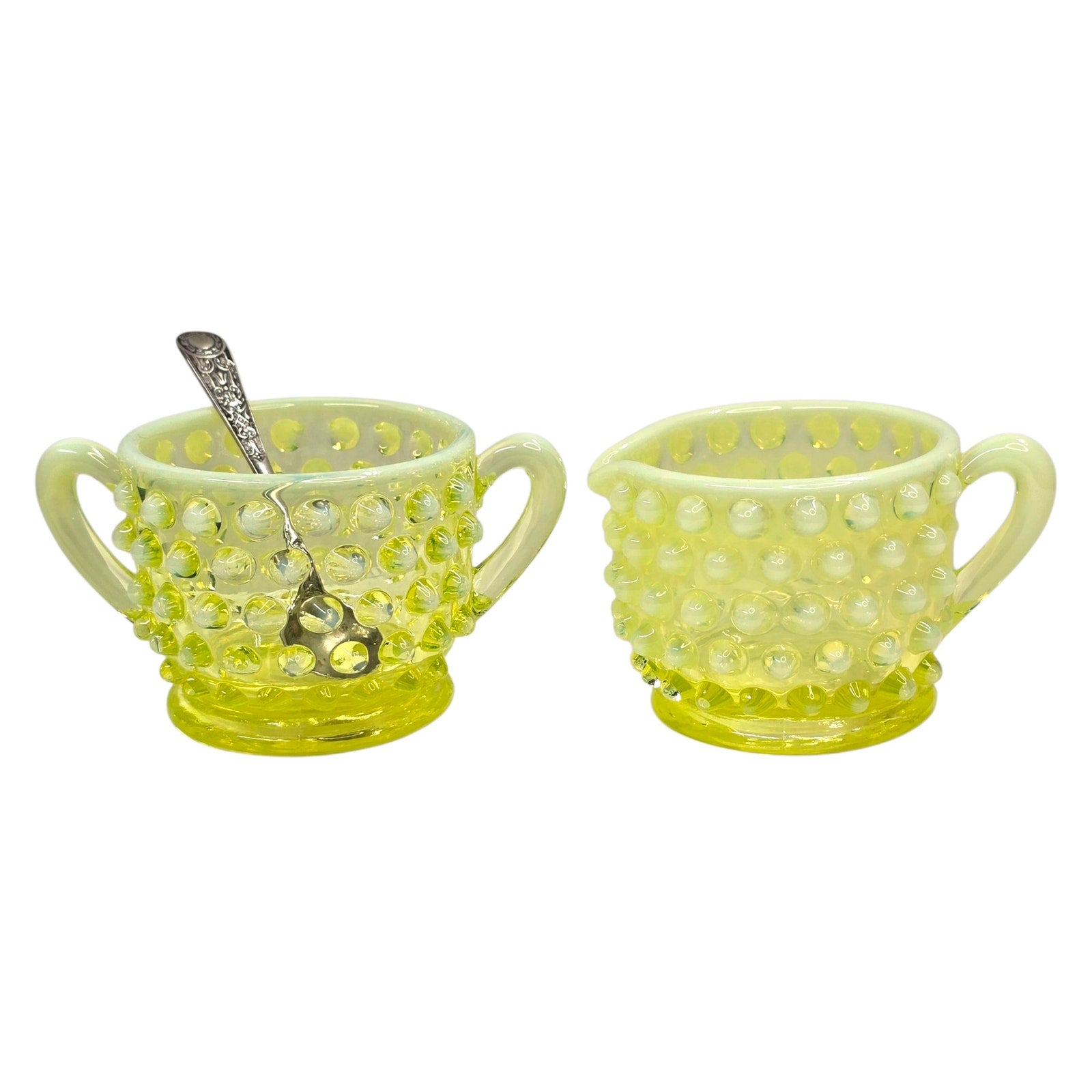 (Reserved for Customer) Fenton Vaseline Opalescent Hobnail Creamer & Sugar Set Uranium Reactive