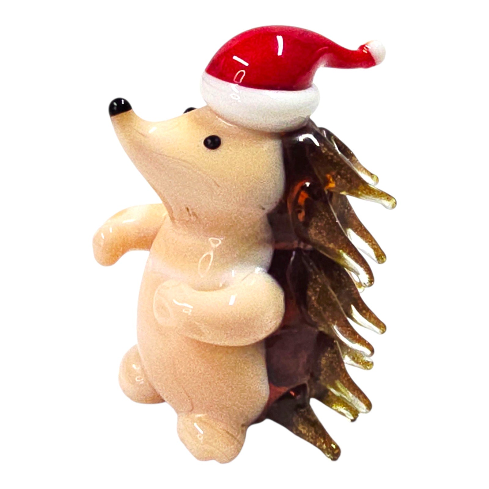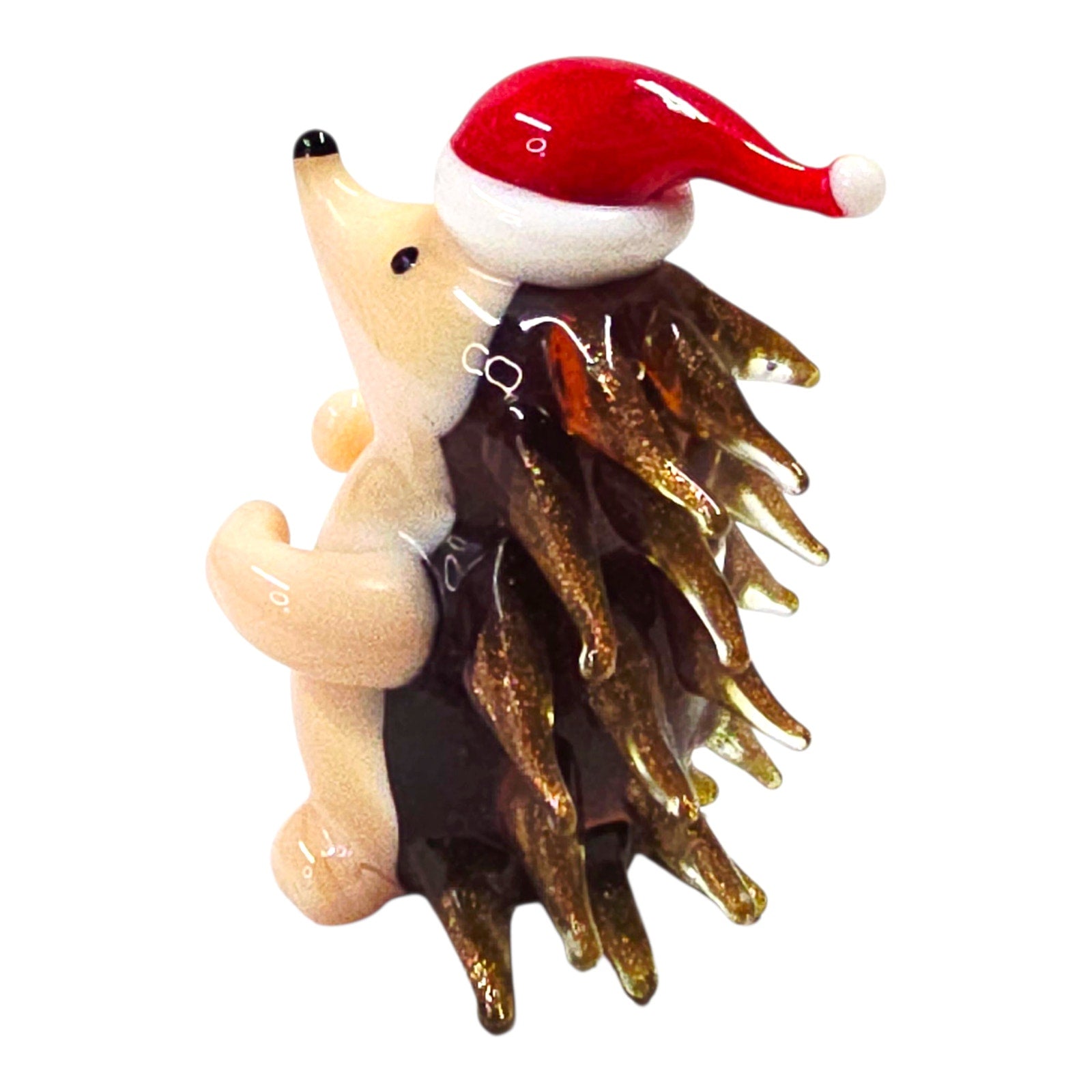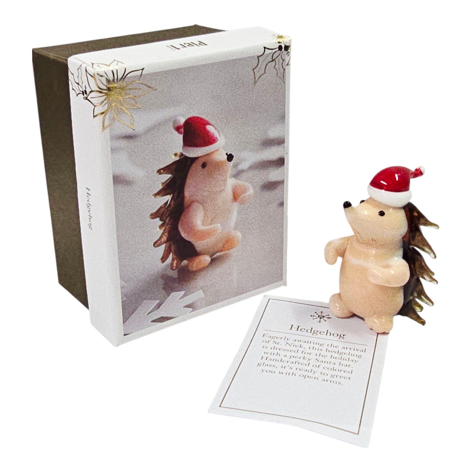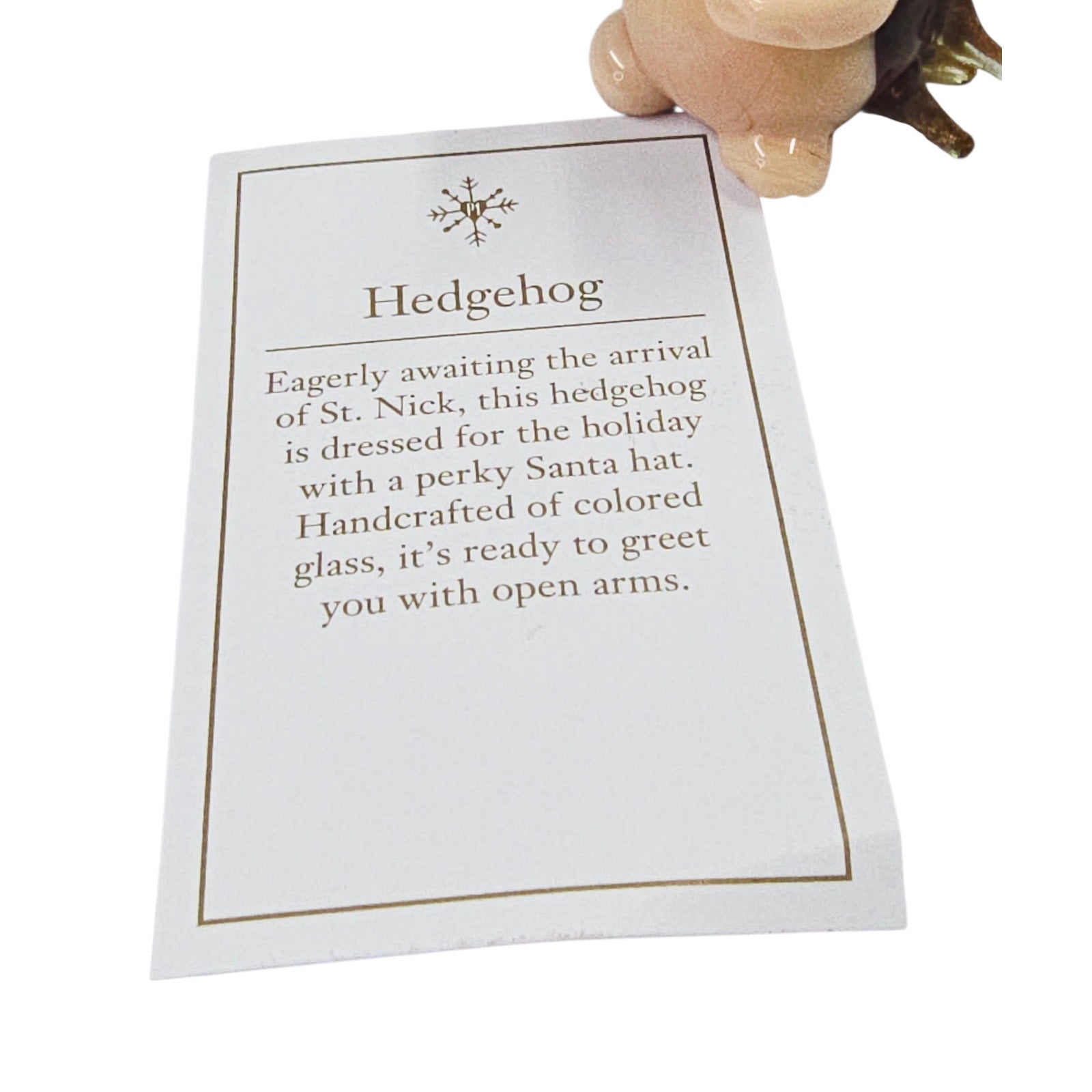 Discontinued Pier 1 Imports glass hedgehog figurine wearing a Santa hat. Includes original box and insert card. Great addition to Pier 1 holiday animal collections or festive décor.