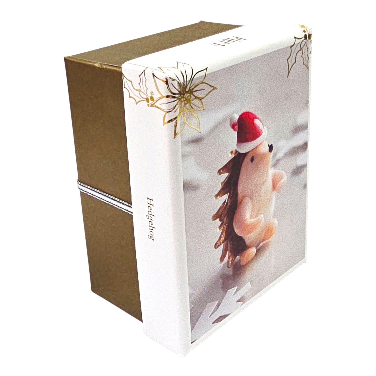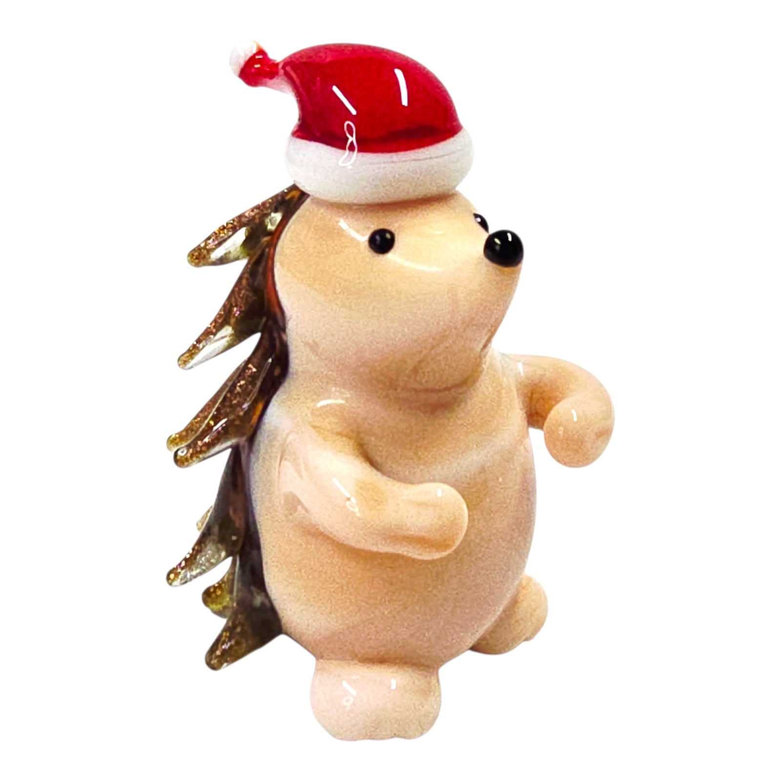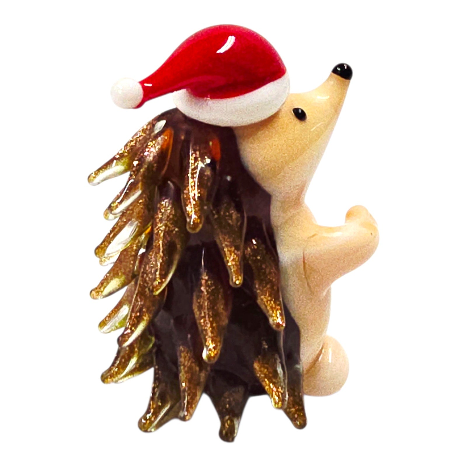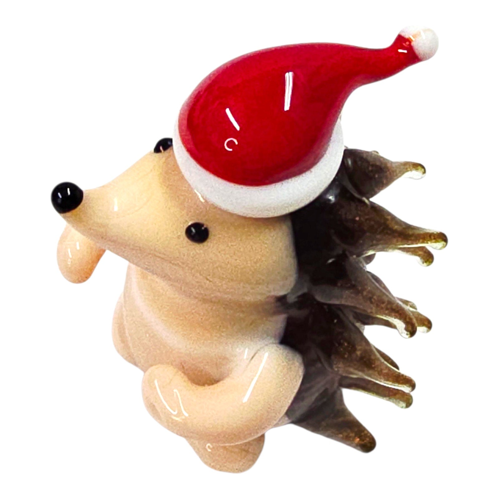 Discontinued Pier 1 Imports glass hedgehog figurine wearing a Santa hat. Includes original box and insert card. Great addition to Pier 1 holiday animal collections or festive décor.