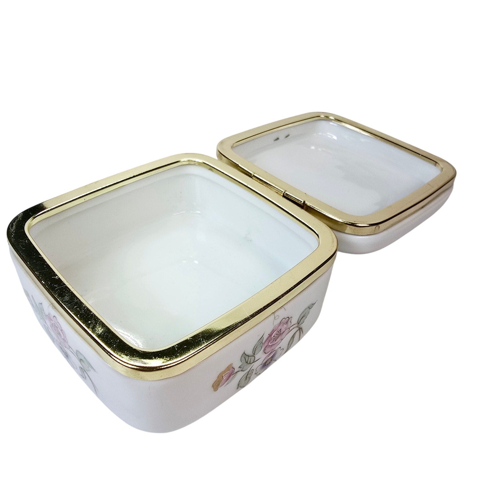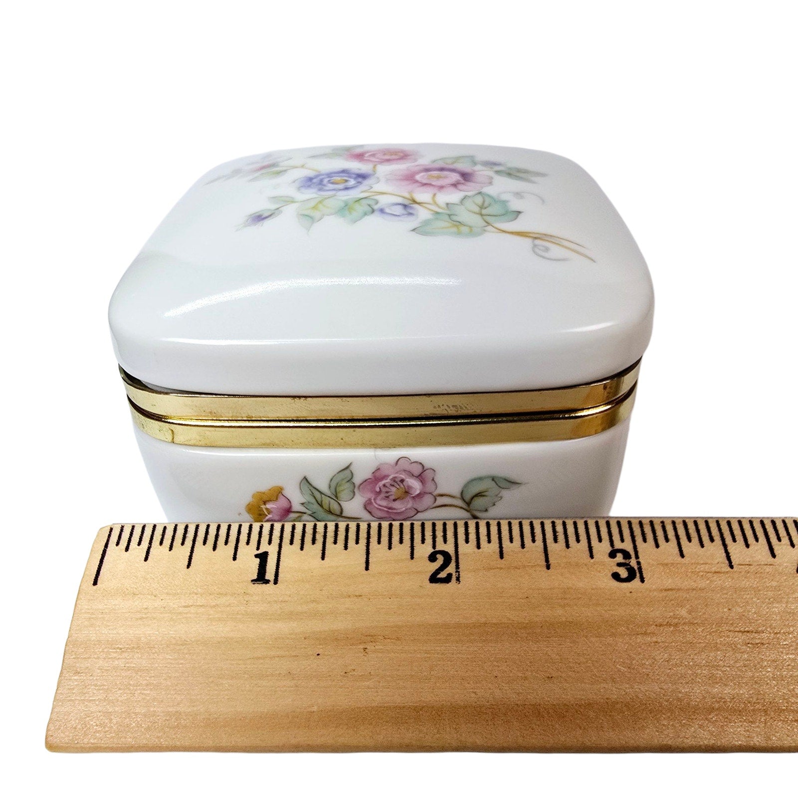 Rounded Square Floral Trinket Box Made in Japan