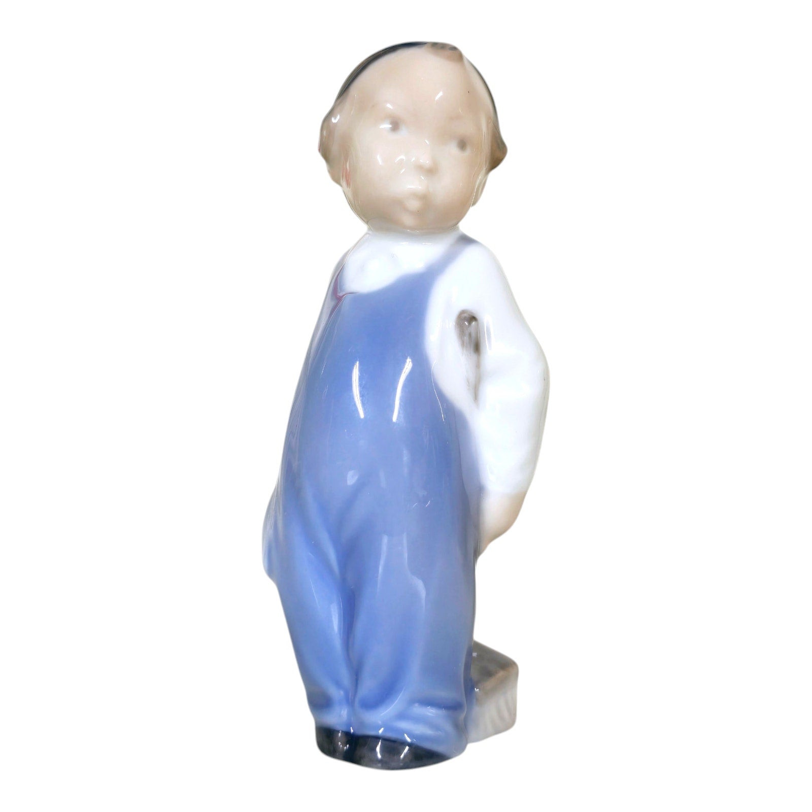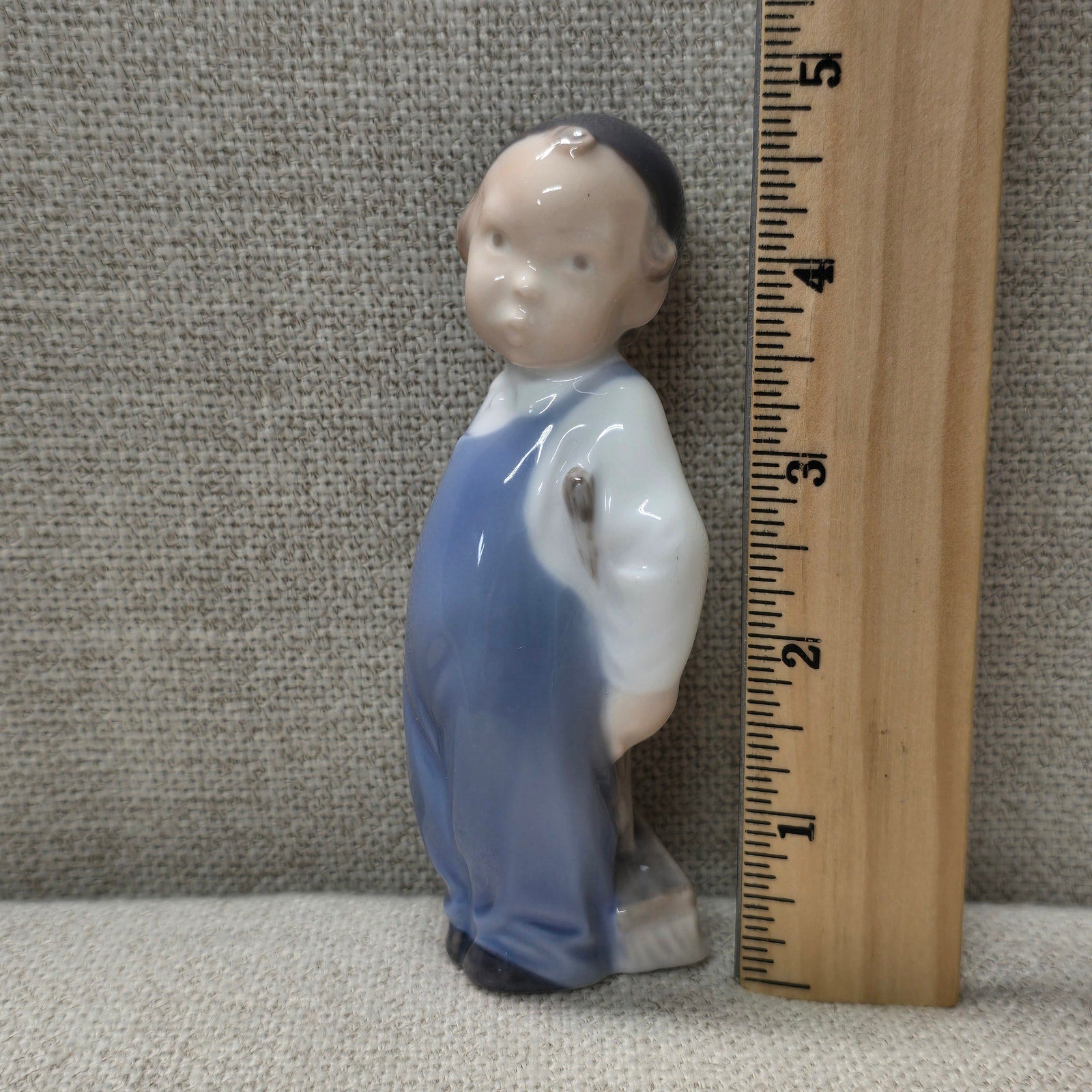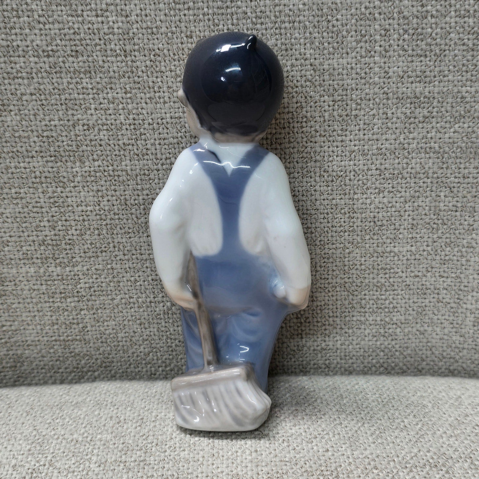 Royal Copenhagen Boy With Broom Figurine #3250 Denmark Porcelain Child Figure