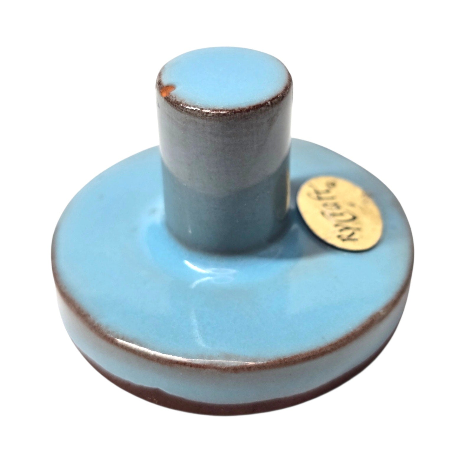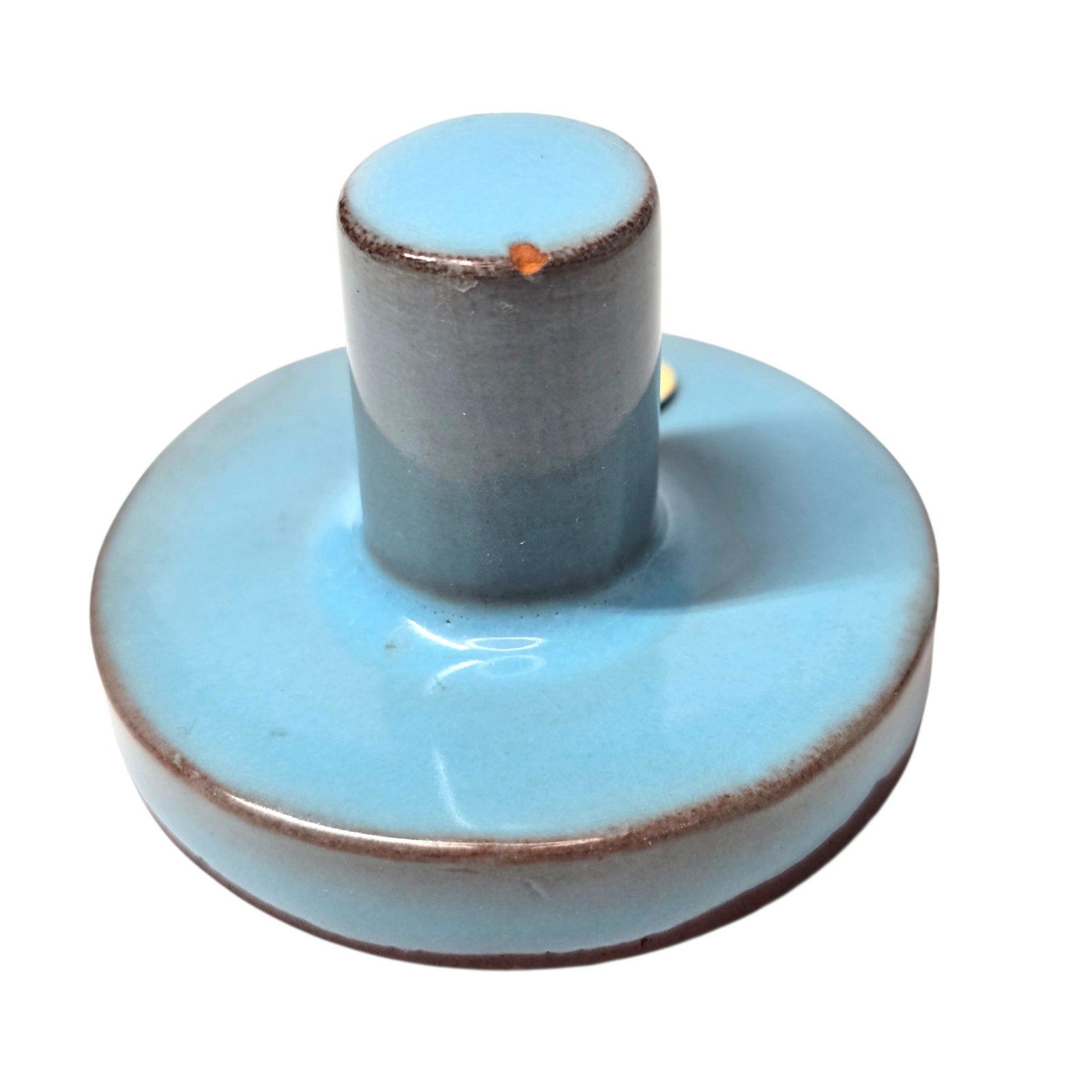 Condition Description: Good vintage condition. There is a small chip on the edge of the top knob (please see photos for detail). The terra cotta stamping surface is clean and well-defined.