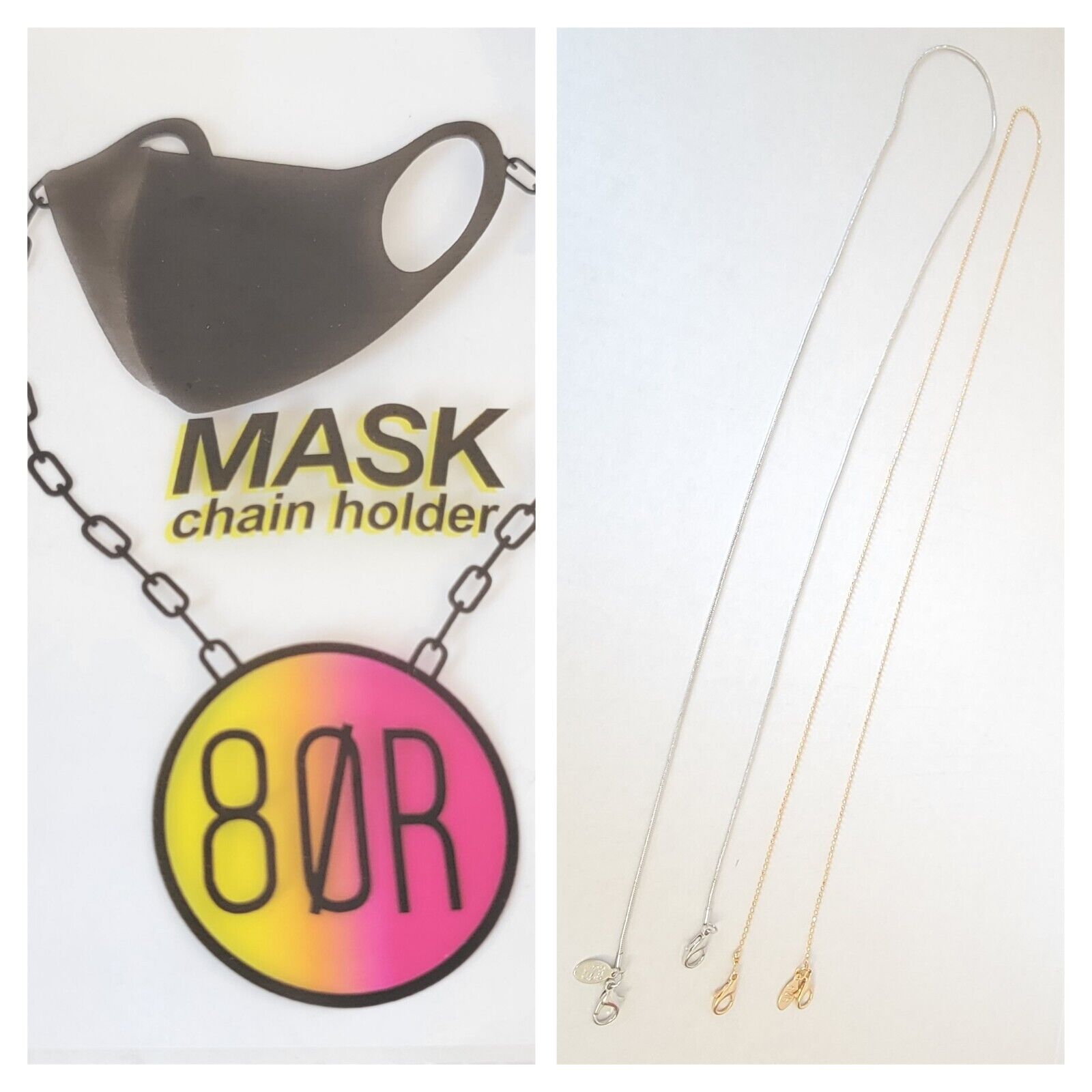 This item features a pair of gold plated or rhodium plated chain mask holders / double clasp chains from "8 Other Reasons" bohemian fashion jewelry company. Each mask chain measures 28" in length.