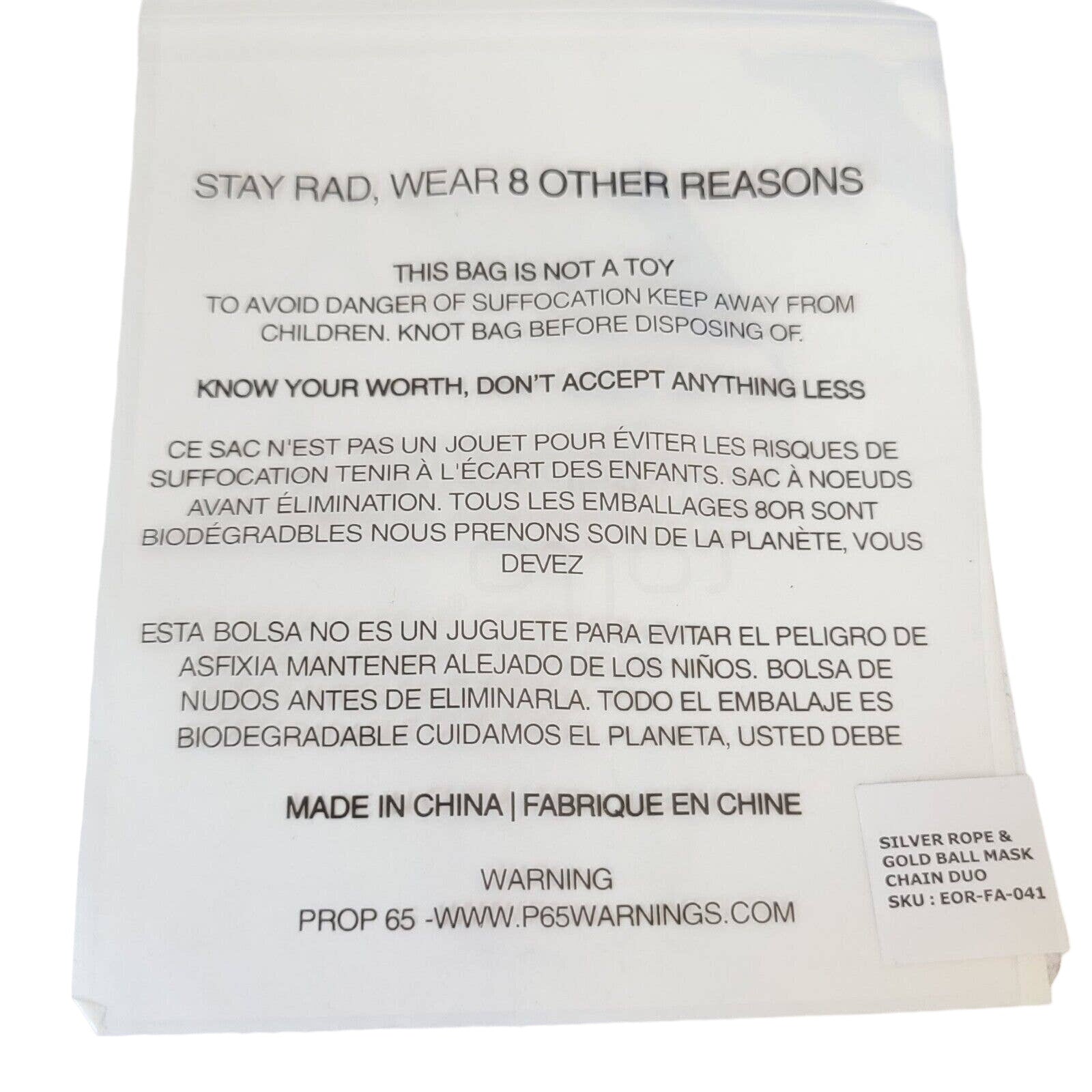 8OR 8 OTHER REASONS- Mask Chain Holder / Double Clasp Chains, Set of 2 Gold Tone Ball Chain & Silver Tone Rope Chain, 28" each.