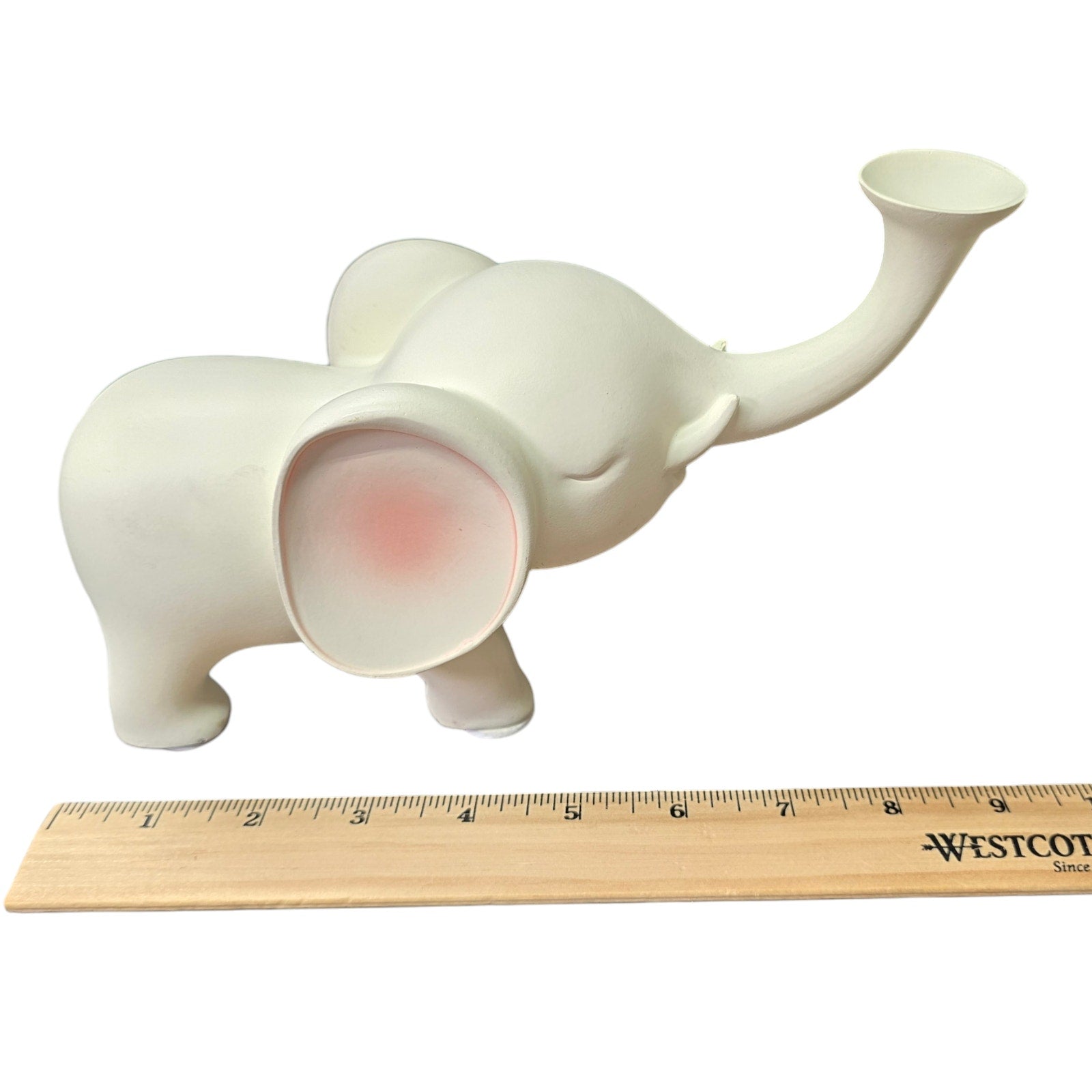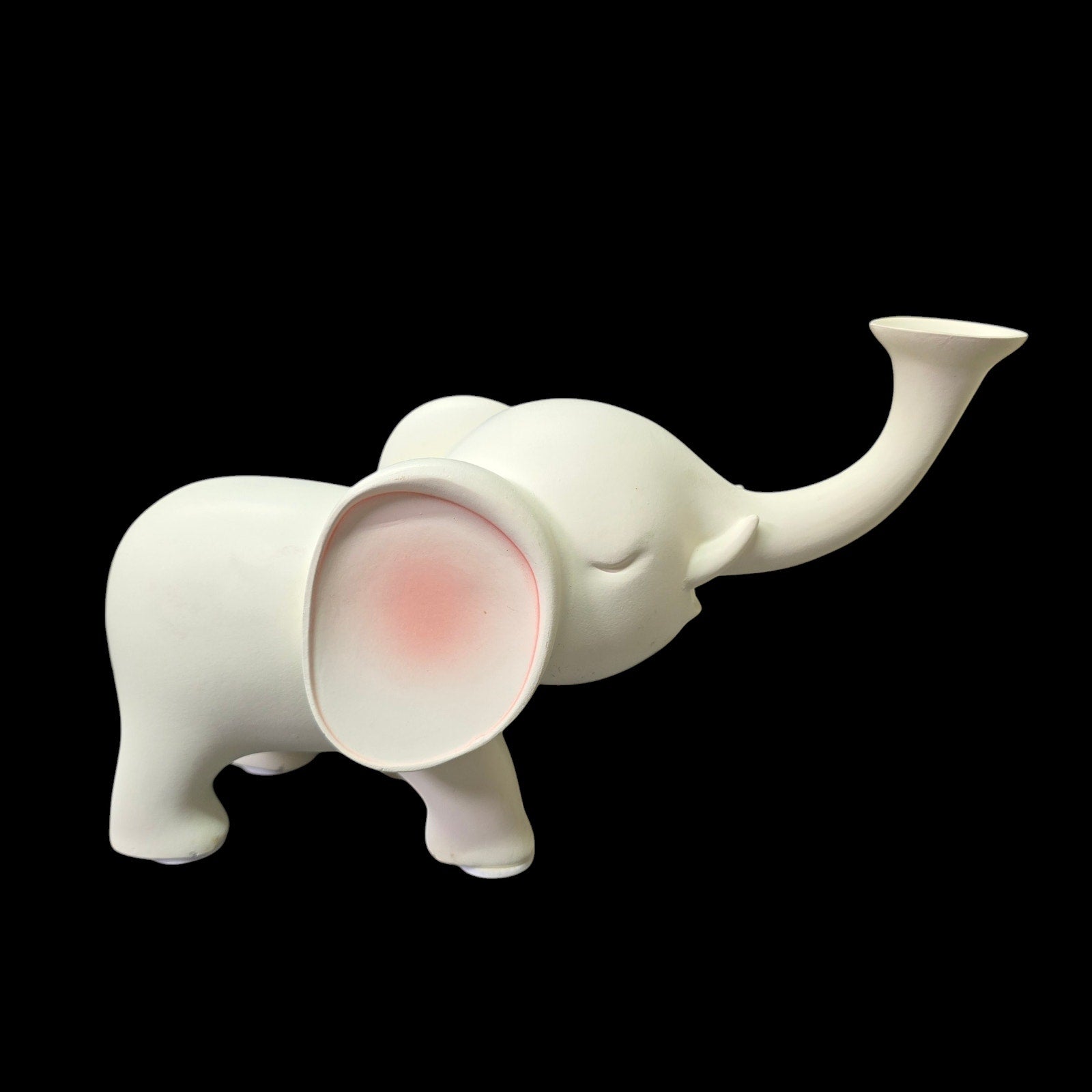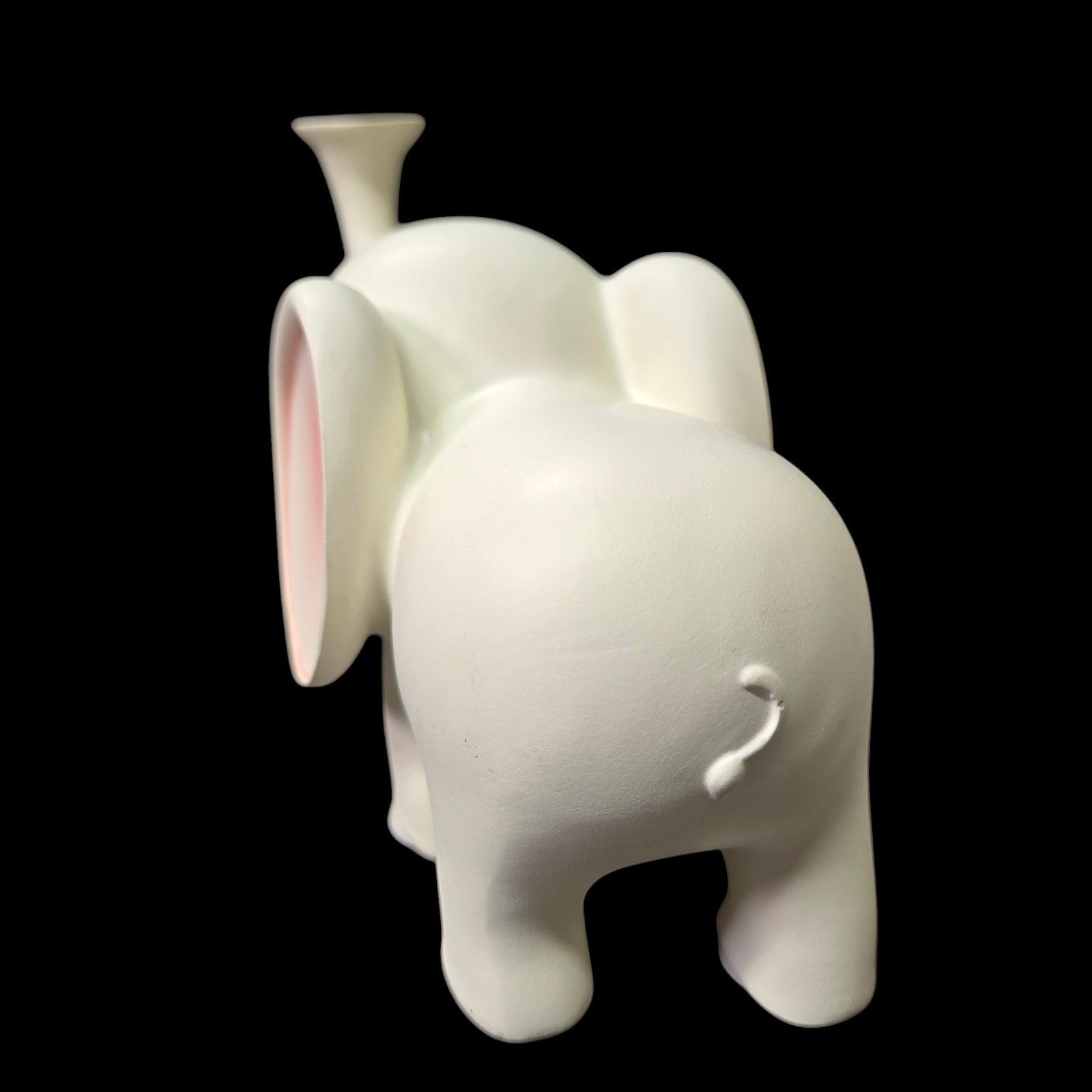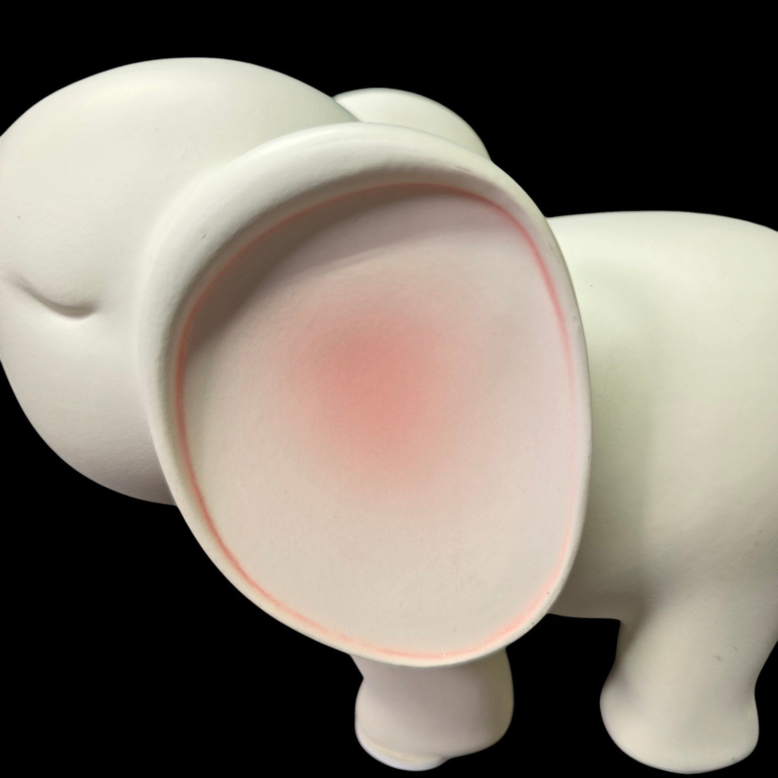 Smooth Satin Ceramic Elephant Figurine, Trunk Up White and Pink Elephant
