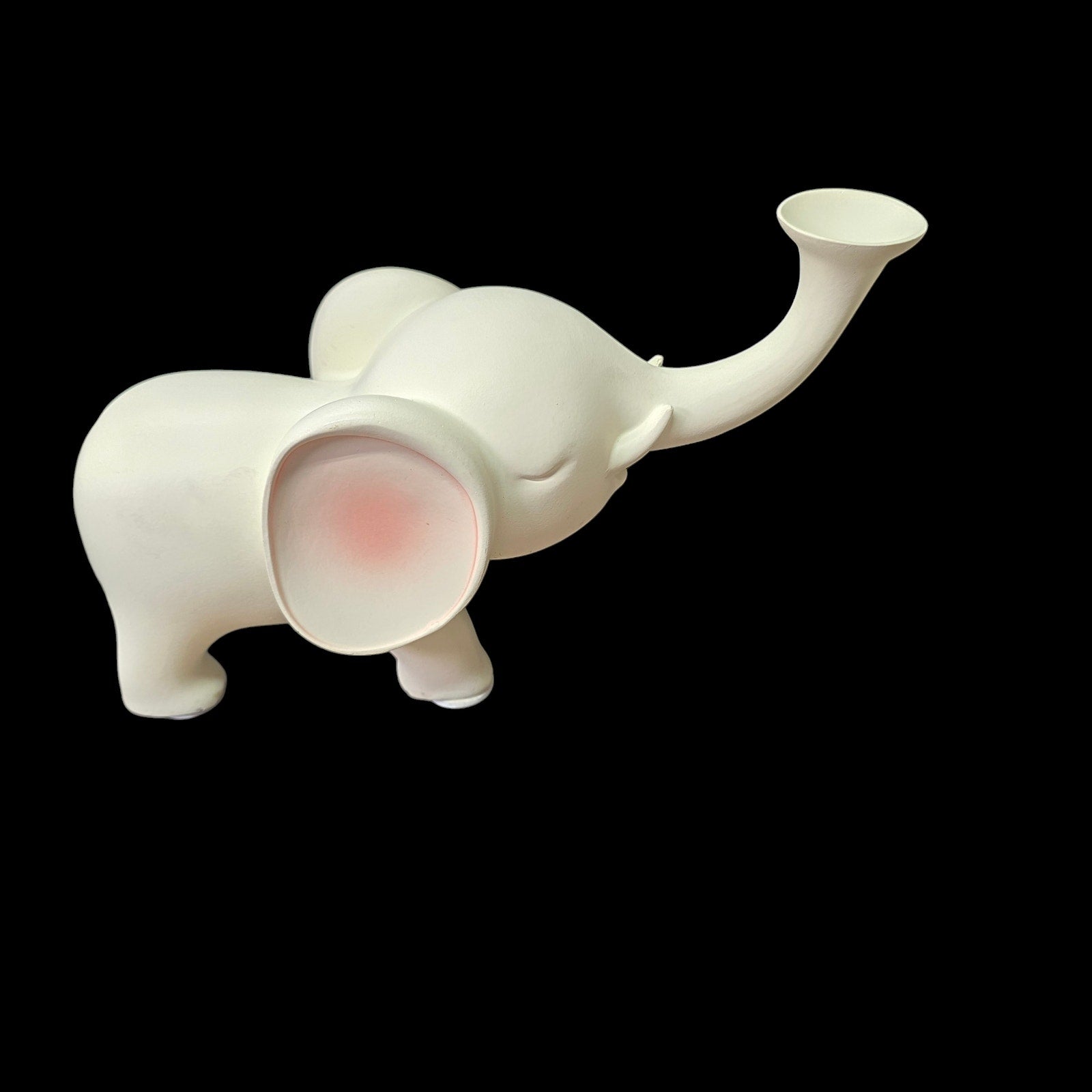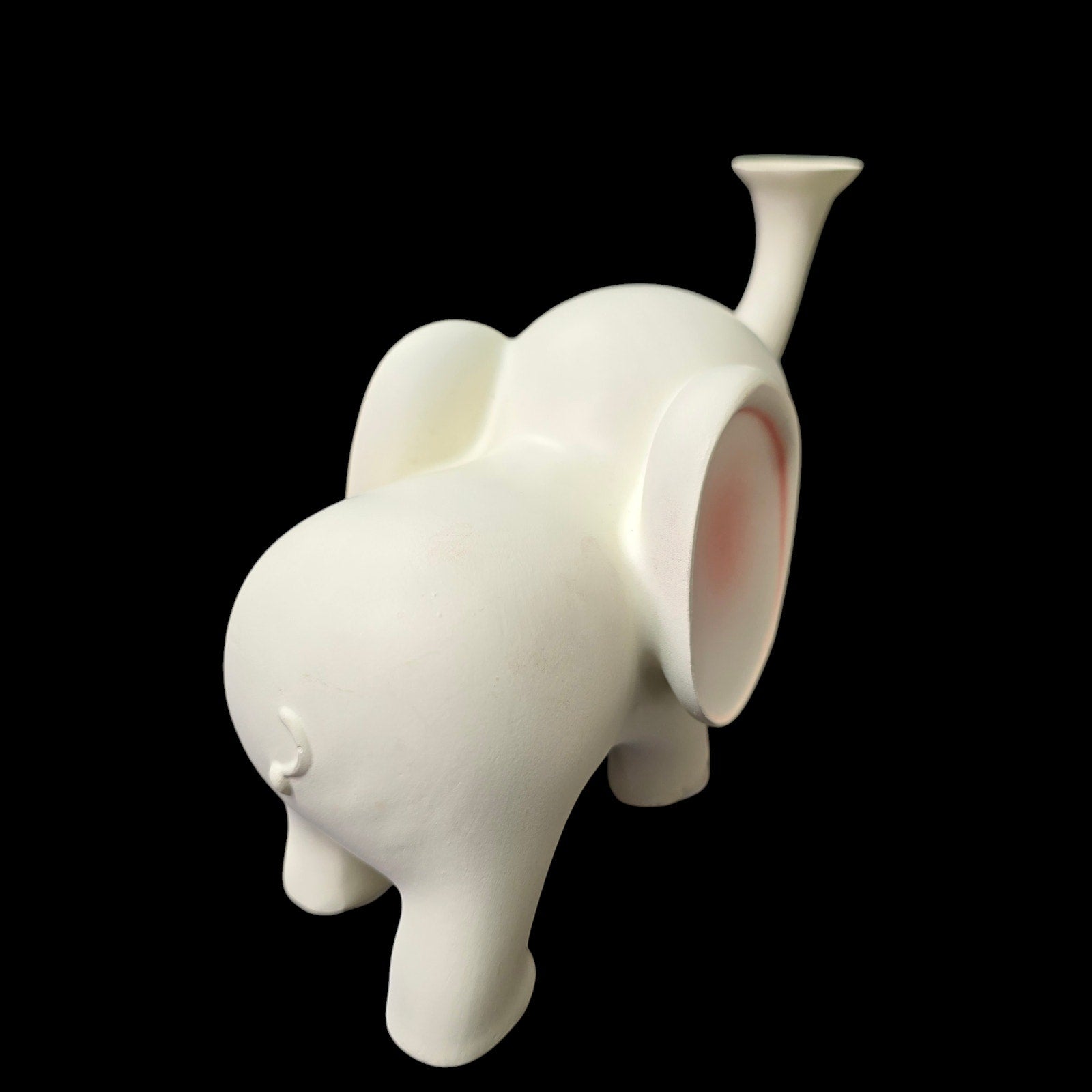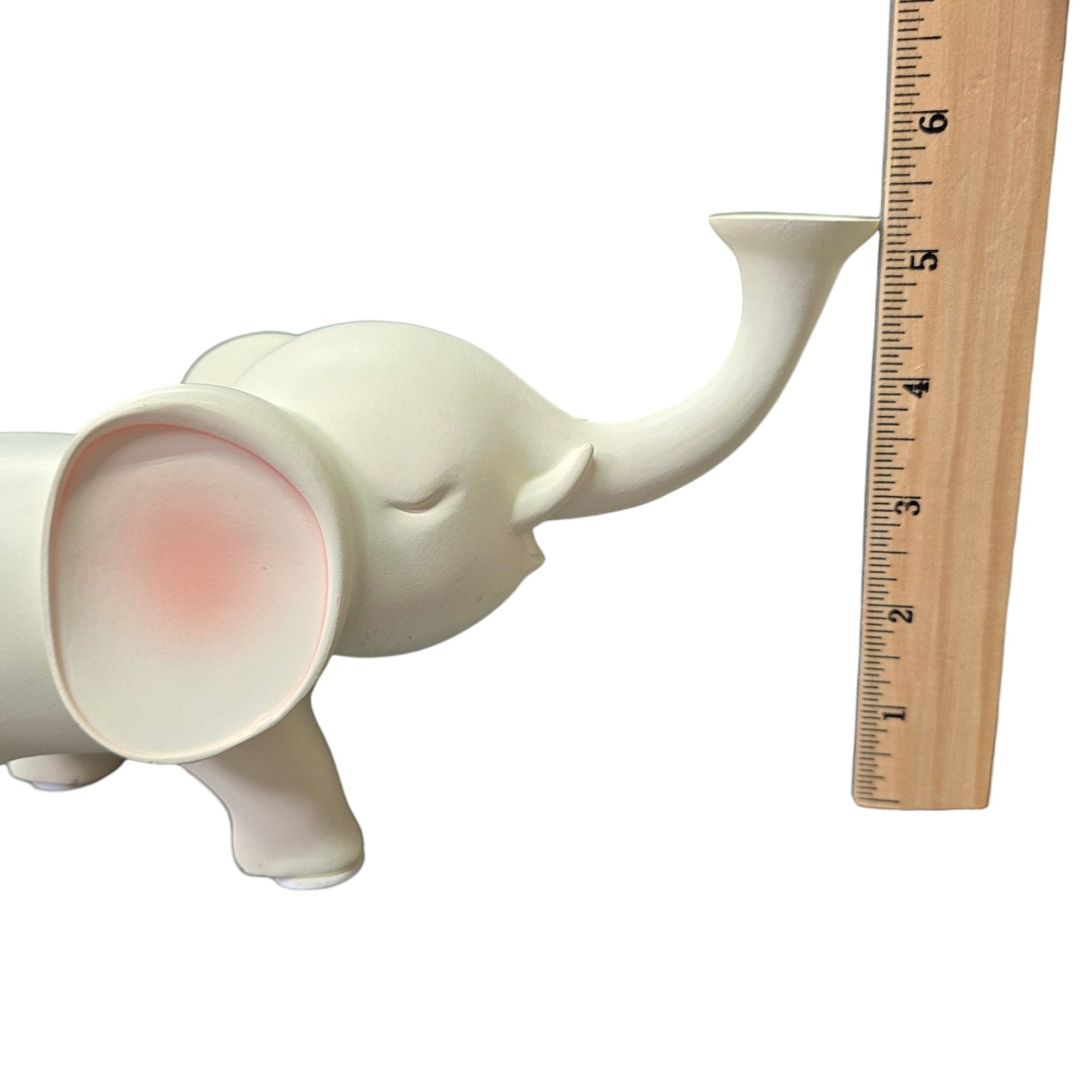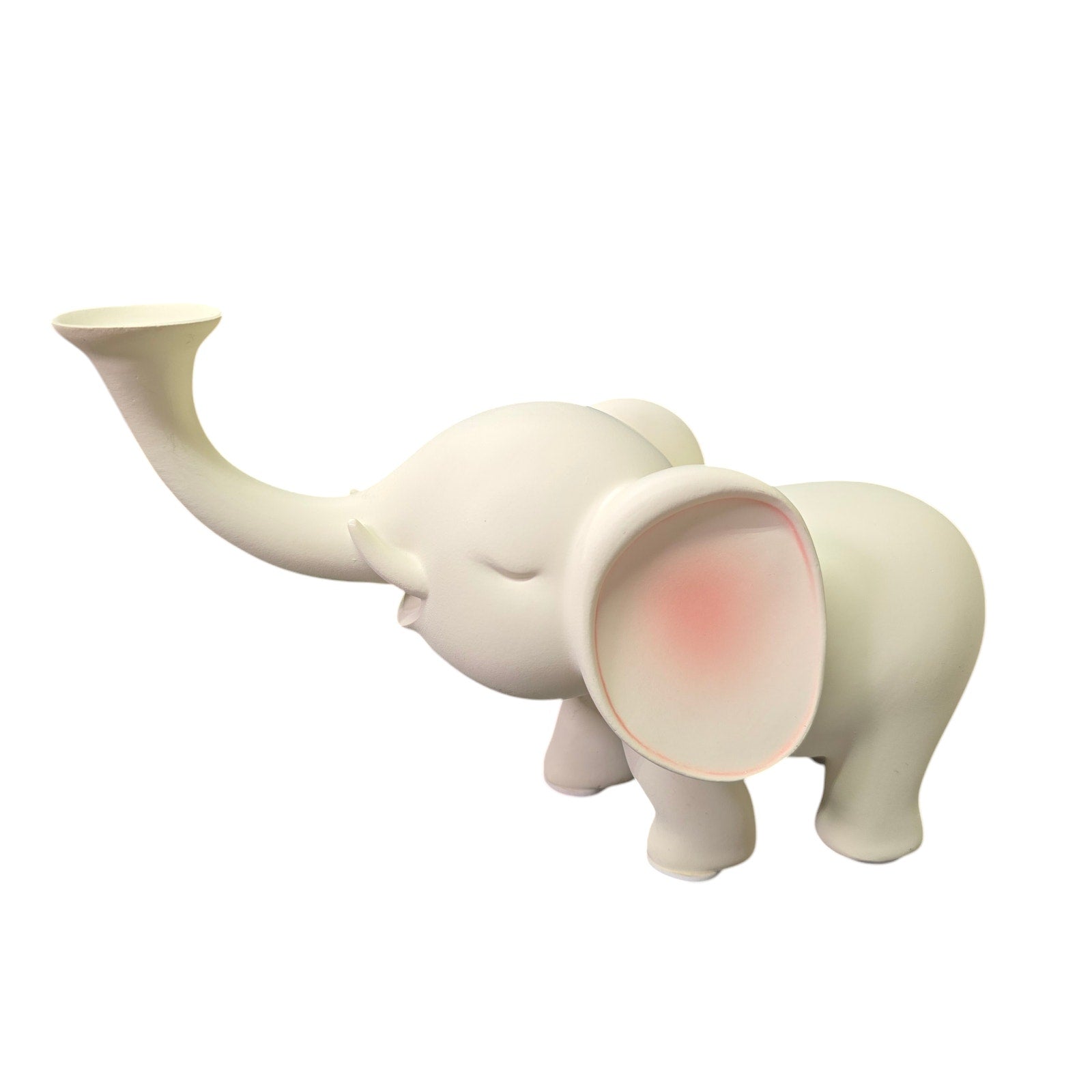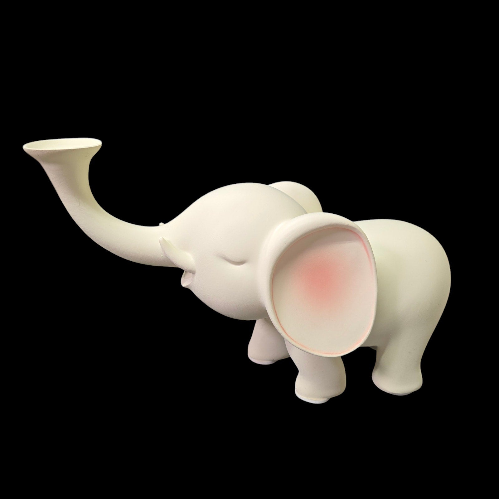 Smooth Satin Ceramic Elephant Figurine, Trunk Up White and Pink Elephant
