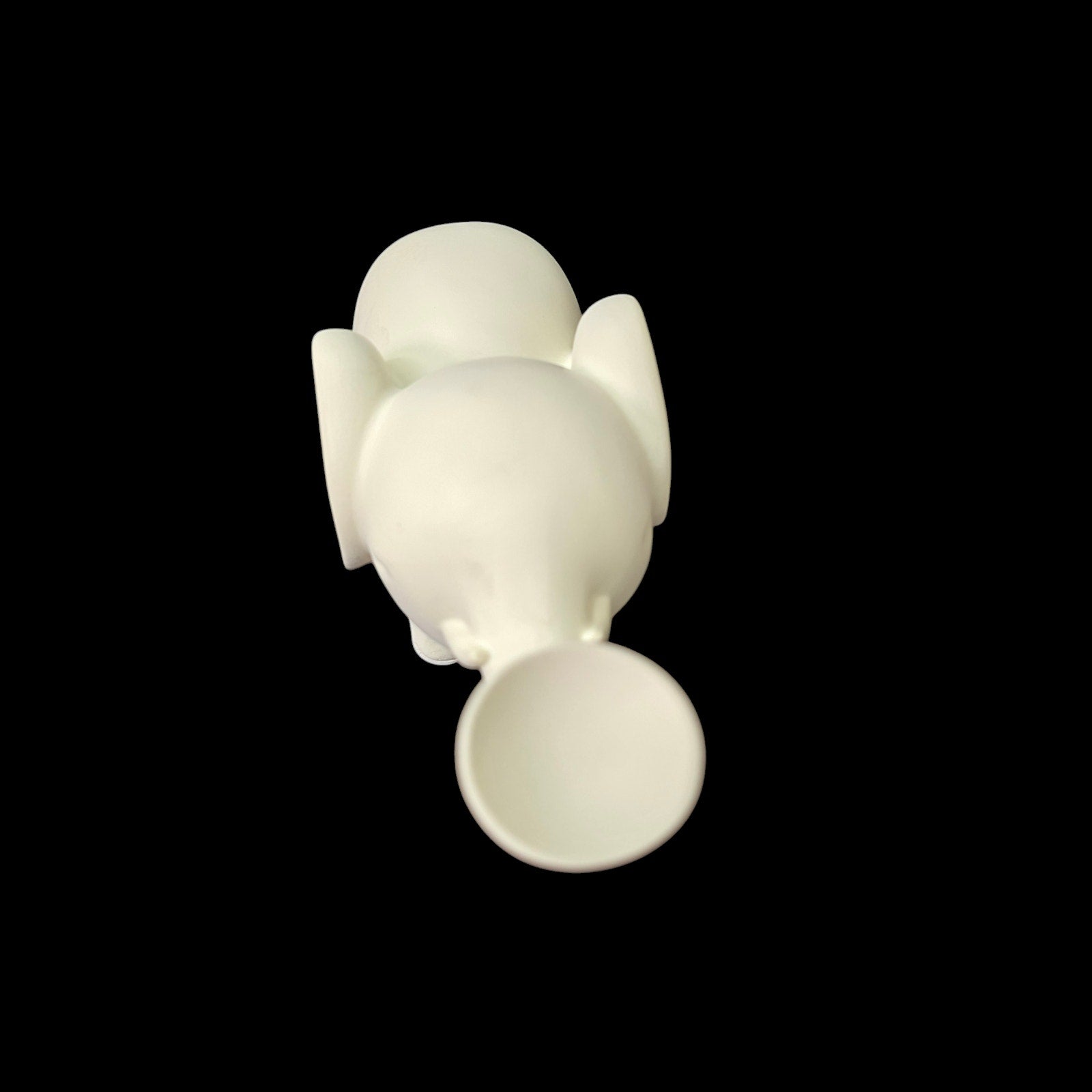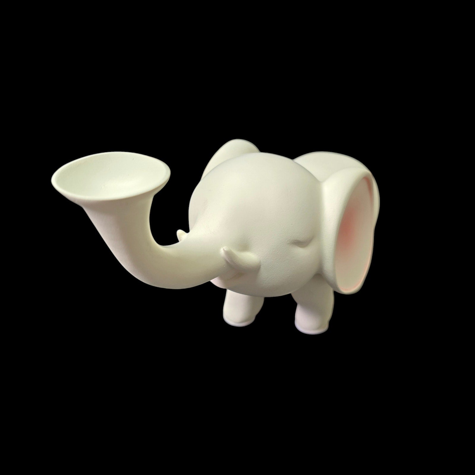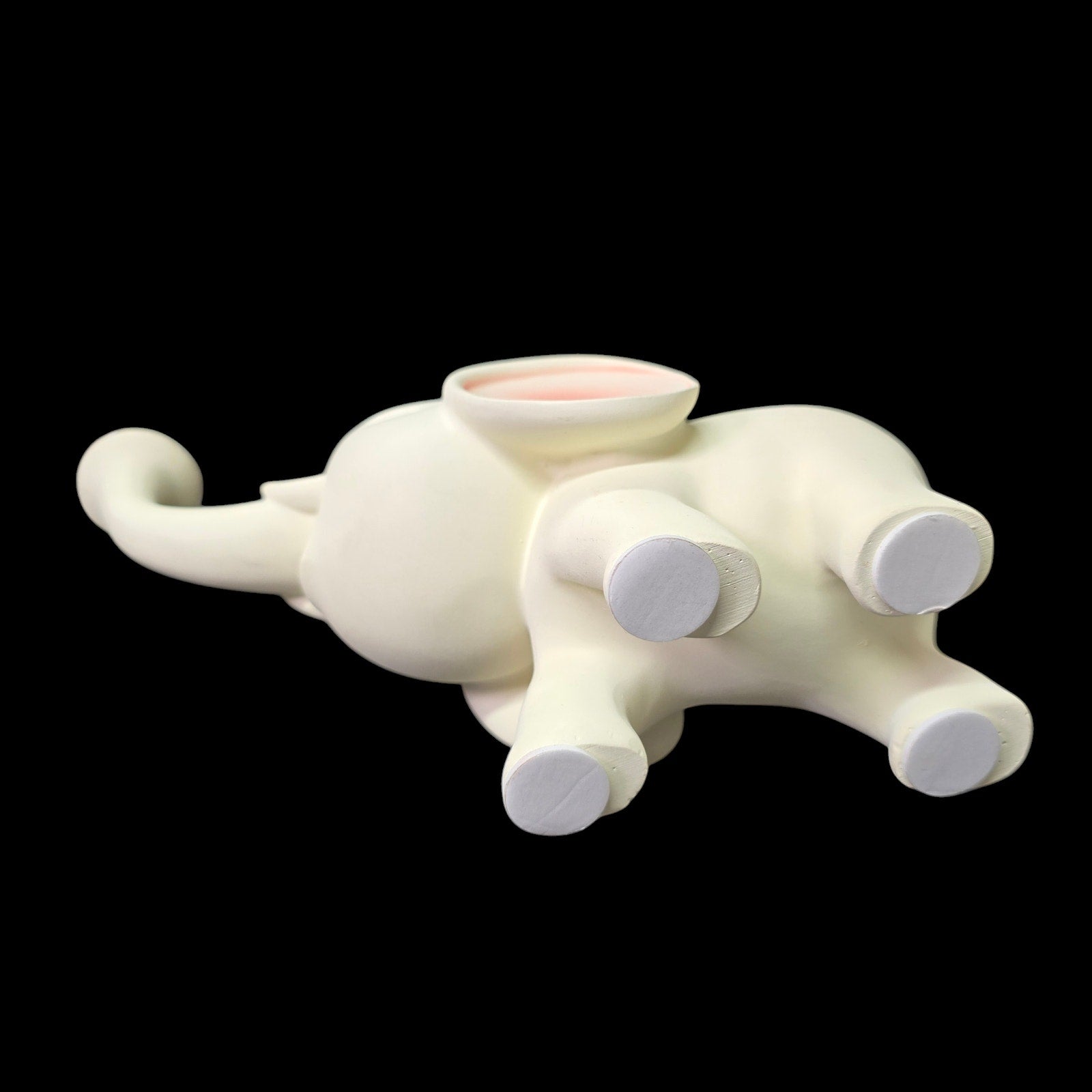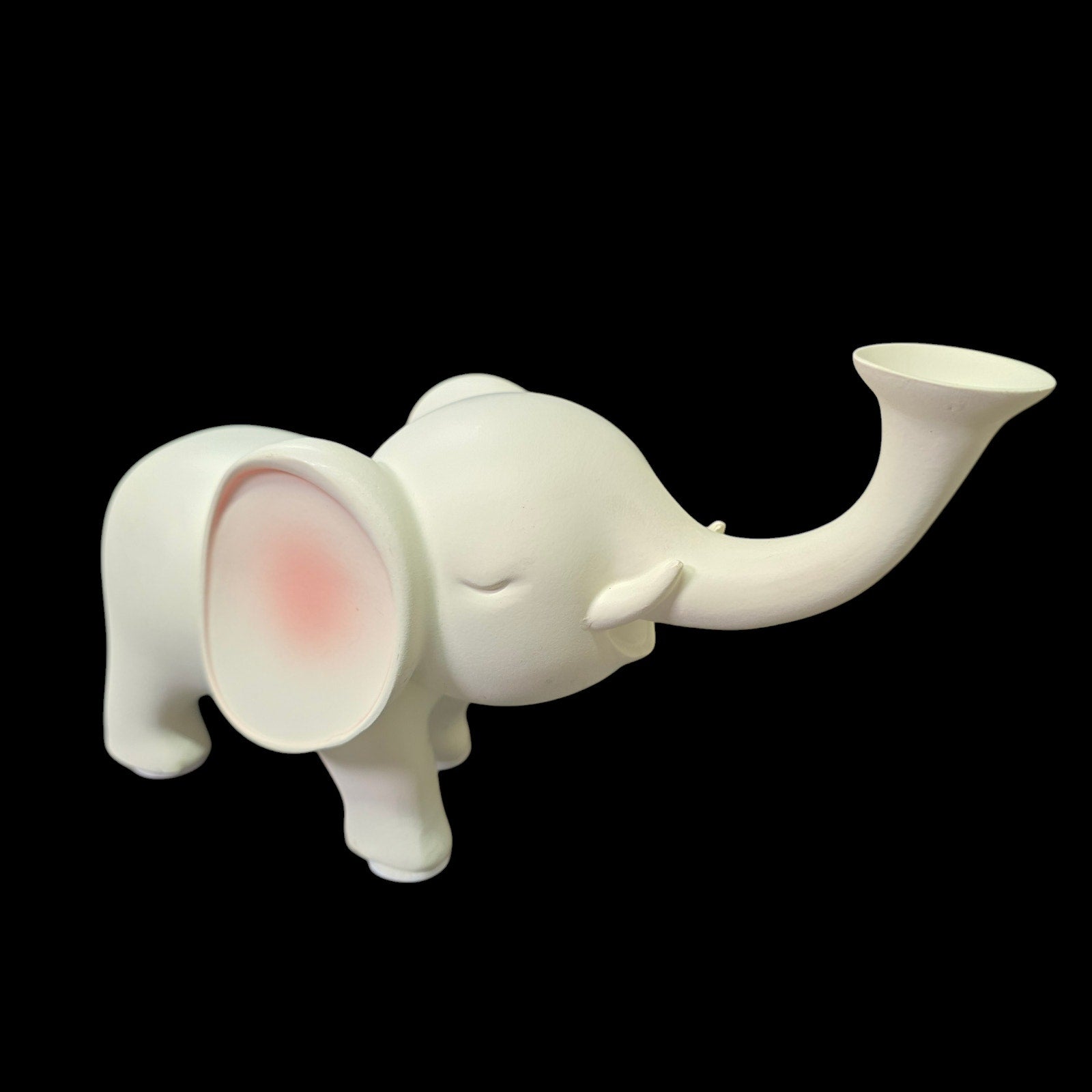 Smooth Satin Ceramic Elephant Figurine, Trunk Up White and Pink Elephant