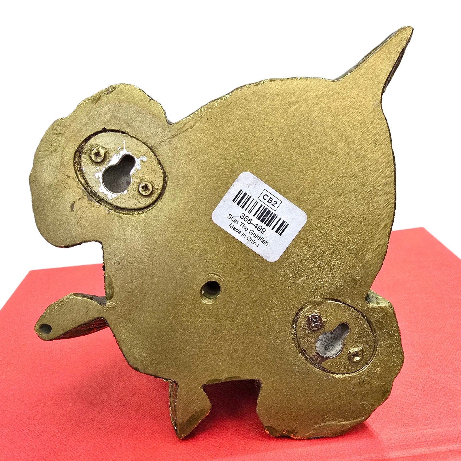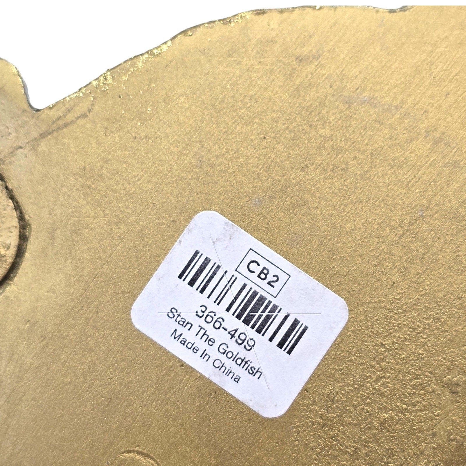 CB2 “Stan the Goldfish” metallic gold resin wall sculpture. Features a bold textured finish and whimsical design that blends glam style with CB2’s signature quirk. Made in China; approx. 5.5″ tall with built-in keyhole mounts for easy wall display. Sold-out design, perfect for eclectic or Hollywood Regency decor.