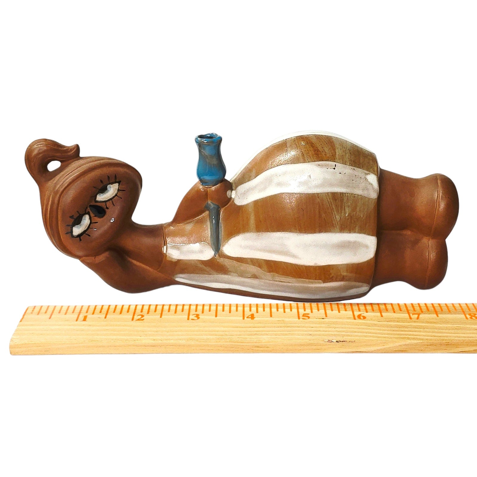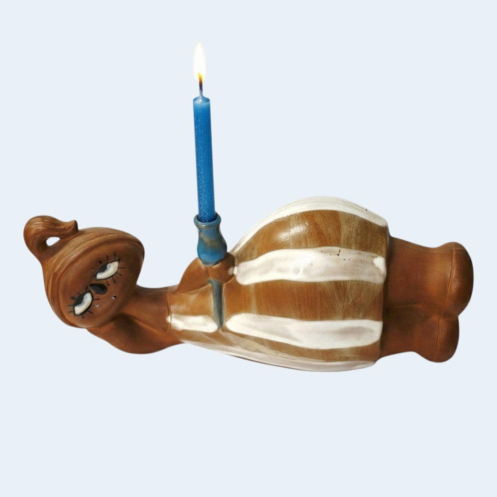Vintage 1960s Japan Ceramic Big Eye Girl Reclining Figurine Candle Holder Kitsch